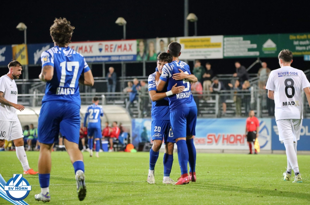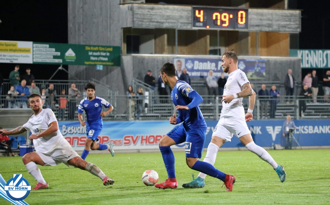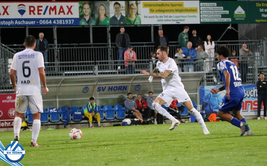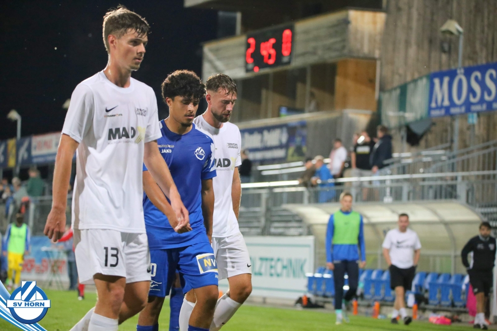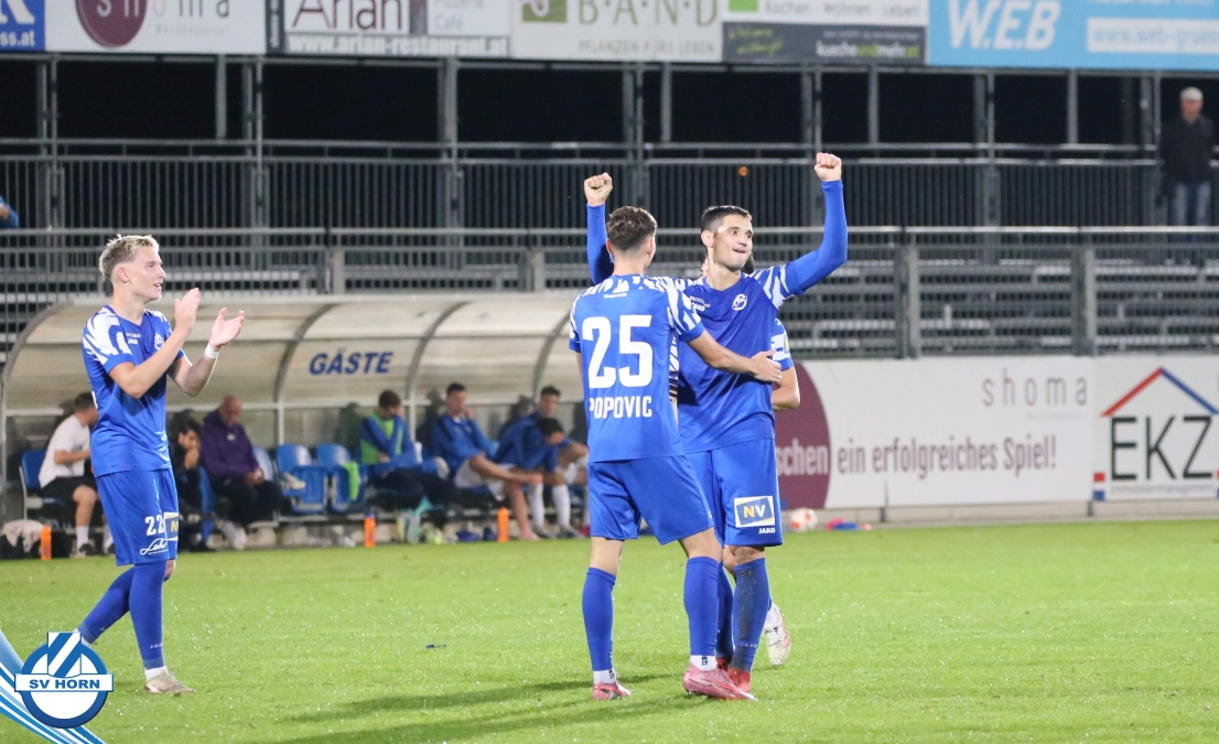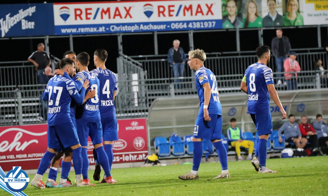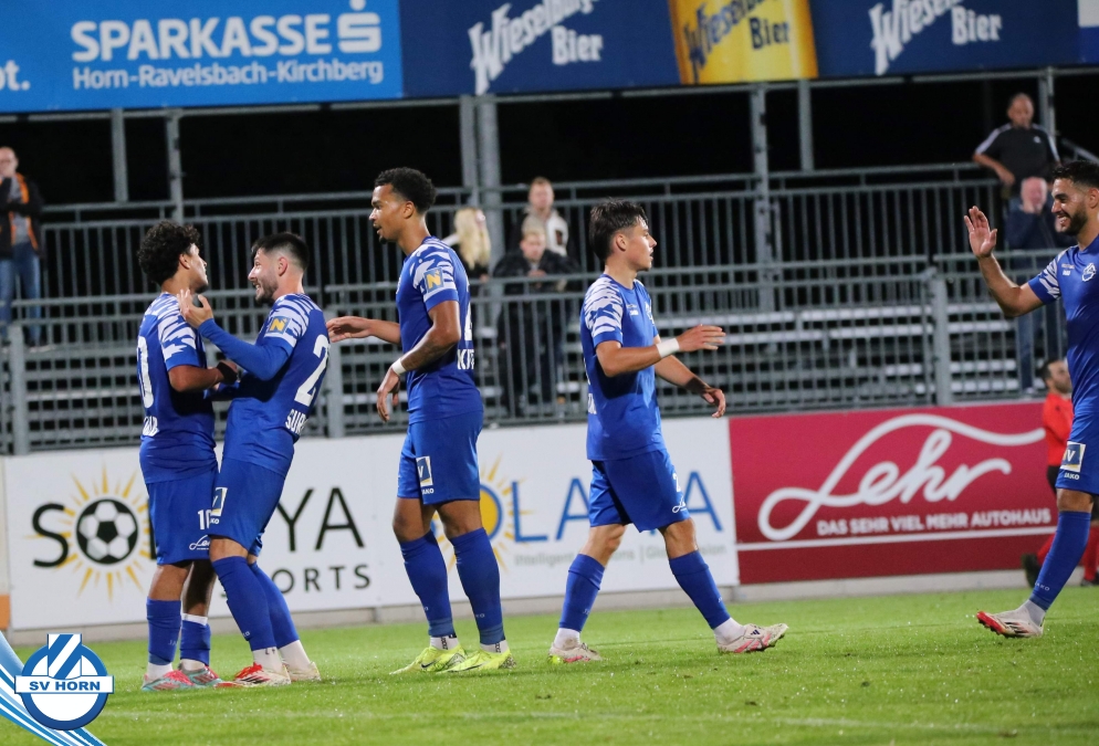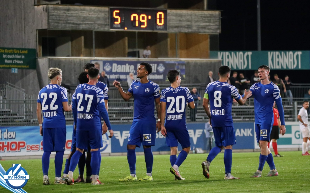 Auch in Halbzeit 2 dasselbe Bild. Horn ist spielerisch überlegen und hat gleich wieder gute Gelegenheiten, trifft aber zunächst nur den Pfosten. Die Gäste wollen jeden Ball von hinten herausspielen und schlagen keinen Ball ab - daraus resultiert das 3:0 - Karim Dhouip erkämpft sich den Ball von der gegnerischen Abwehr und versenkt mit einem Schuss ins lange Eck zum 3:0. Das 4. Tor ist fast ein Spiegelbild des 4. Treffers mit einem Ballgewinn im Strafraum der Gäste von eienem Verteidiger - wieder holt sich Karim Dhouip den Ball vom Gegner - umspielt diesmal noch den Torhüter und schießt ein. Das 5:0 ist dann wieder eine richtig schön heraus gespielte Aktion, wo sich Zoran Mihajlovic im Strafraum der Gegner durchsetzt und zu Dhouip zurücklegt, der den Ball zum lupenreinen Hattrick versenkt. Den Abschluss des Torreigens macht schließlich wieder Zoran Mihajlovic: er versetzt den herauslaufenden Torhüter außerhalb des Strafraums, kann auch am Leibchen nicht mehr gehalten werden von einem Verteidiger und schießt unwiderstehlich zum 6:0 ein.