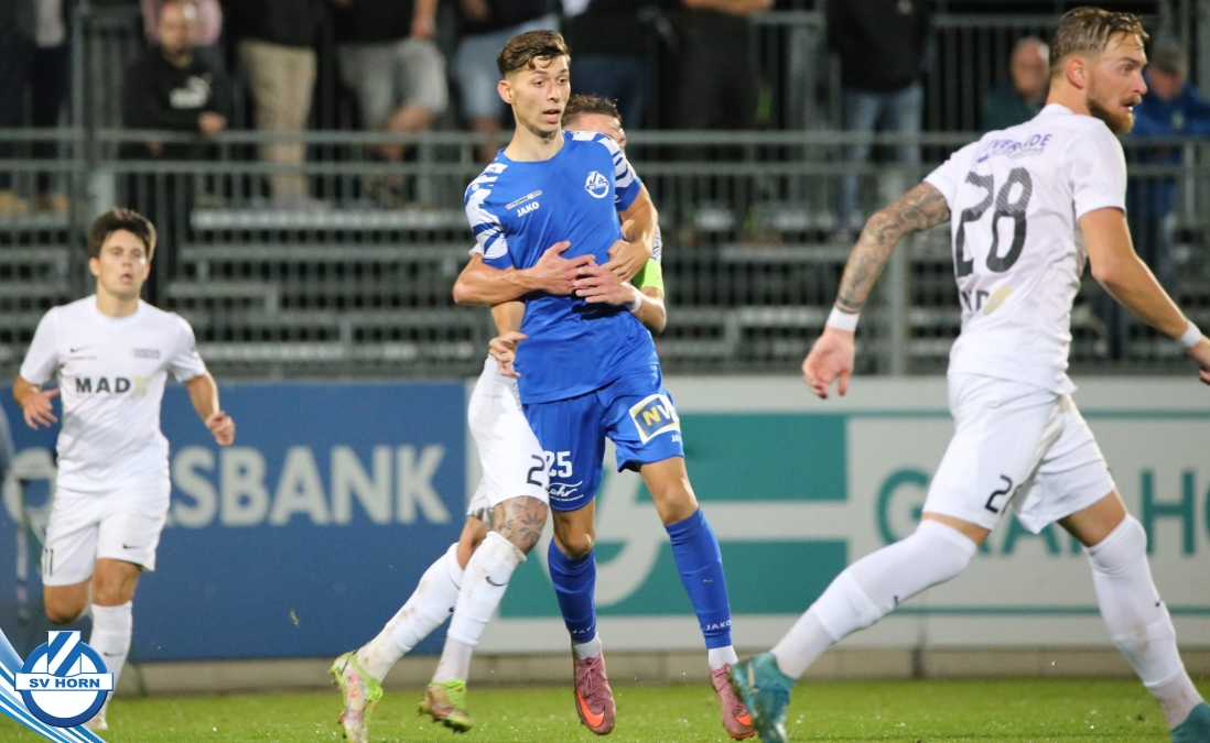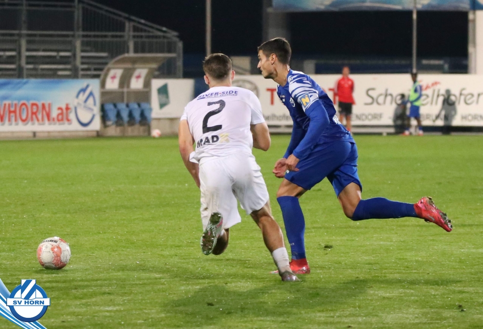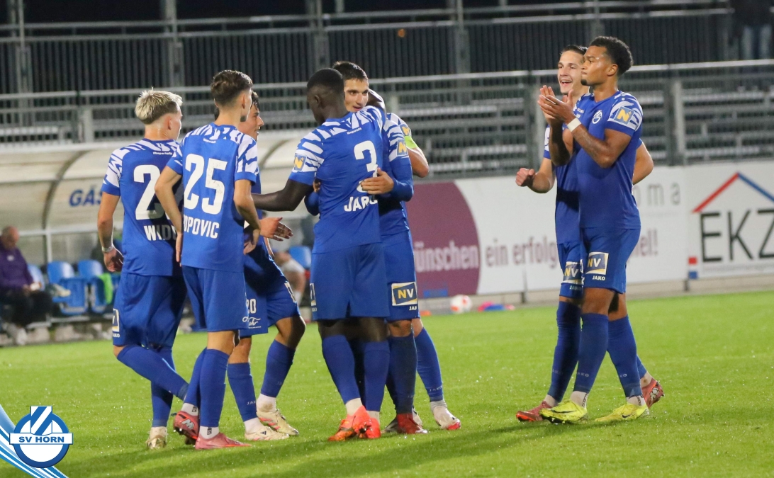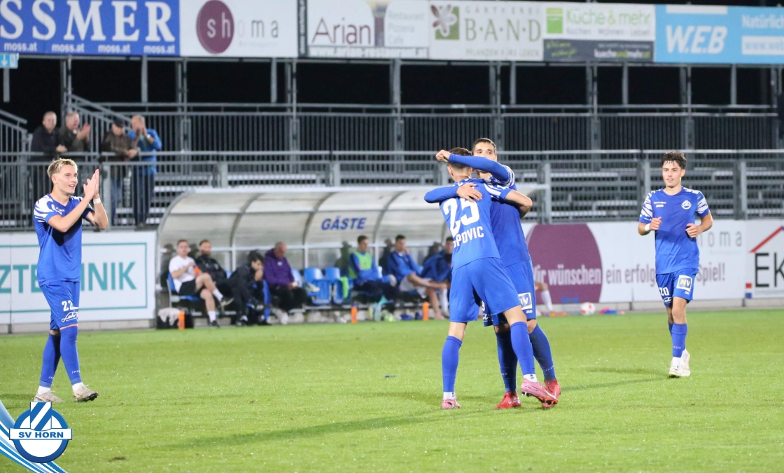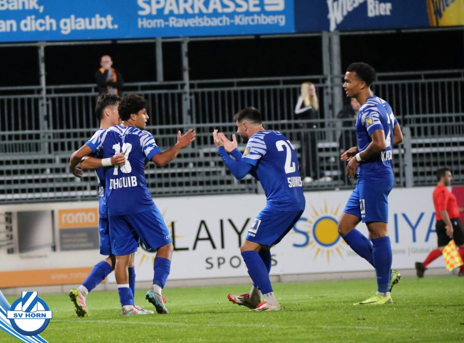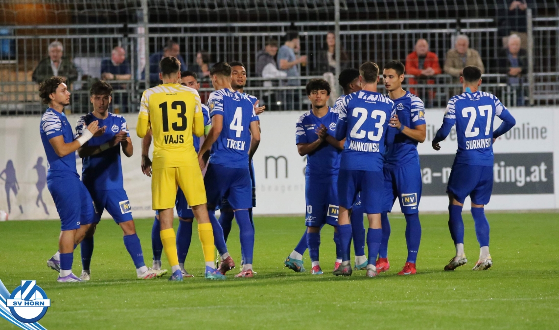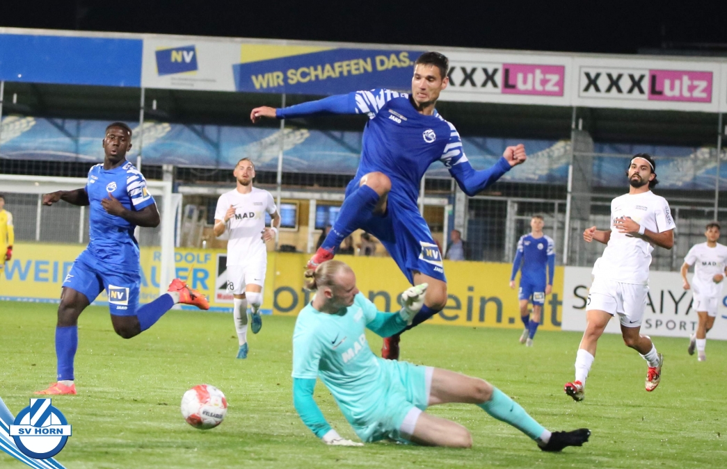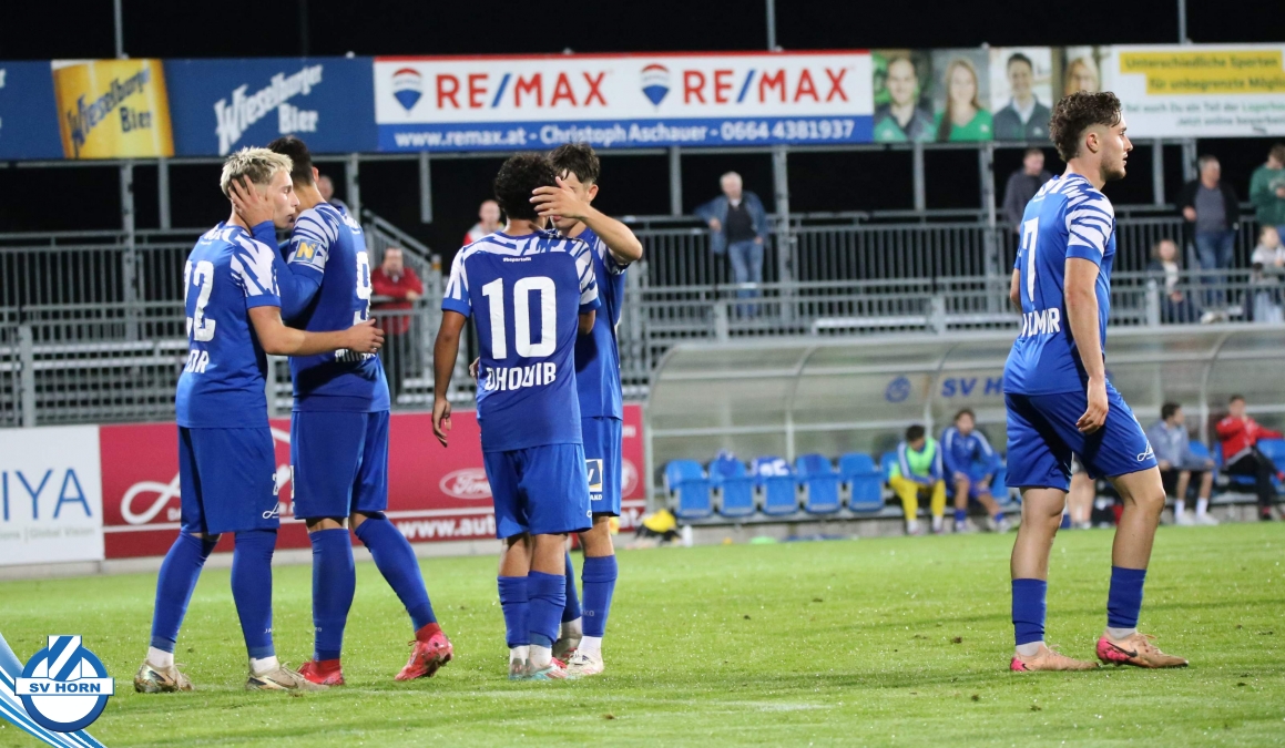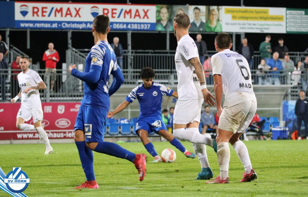 Auch in Halbzeit 2 dasselbe Bild. Horn ist spielerisch überlegen und hat gleich wieder gute Gelegenheiten, trifft aber zunächst nur den Pfosten. Die Gäste wollen jeden Ball von hinten herausspielen und schlagen keinen Ball ab - daraus resultiert das 3:0 - Karim Dhouip erkämpft sich den Ball von der gegnerischen Abwehr und versenkt mit einem Schuss ins lange Eck zum 3:0. Das 4. Tor ist fast ein Spiegelbild des 4. Treffers mit einem Ballgewinn im Strafraum der Gäste von eienem Verteidiger - wieder holt sich Karim Dhouip den Ball vom Gegner - umspielt diesmal noch den Torhüter und schießt ein. Das 5:0 ist dann wieder eine richtig schön heraus gespielte Aktion, wo sich Zoran Mihajlovic im Strafraum der Gegner durchsetzt und zu Dhouip zurücklegt, der den Ball zum lupenreinen Hattrick versenkt. Den Abschluss des Torreigens macht schließlich wieder Zoran Mihajlovic: er versetzt den herauslaufenden Torhüter außerhalb des Strafraums, kann auch am Leibchen nicht mehr gehalten werden von einem Verteidiger und schießt unwiderstehlich zum 6:0 ein.