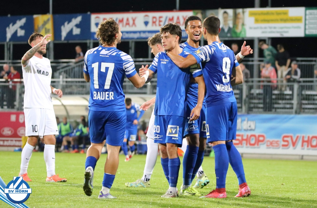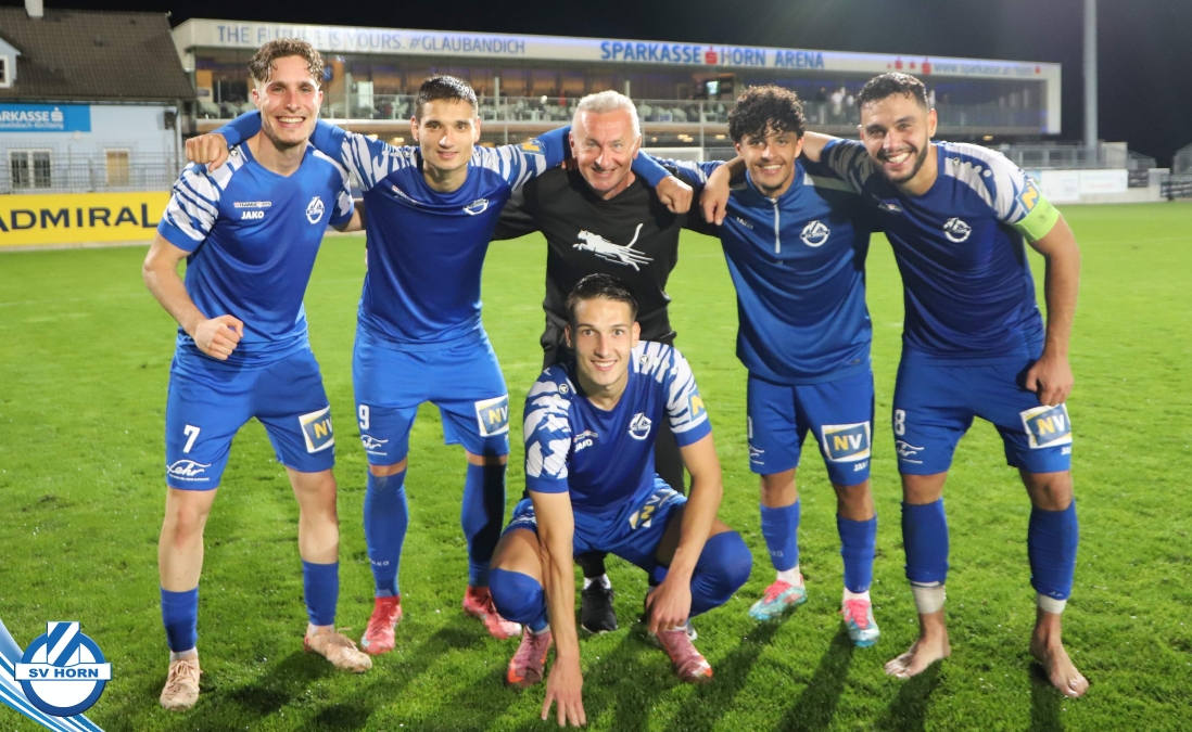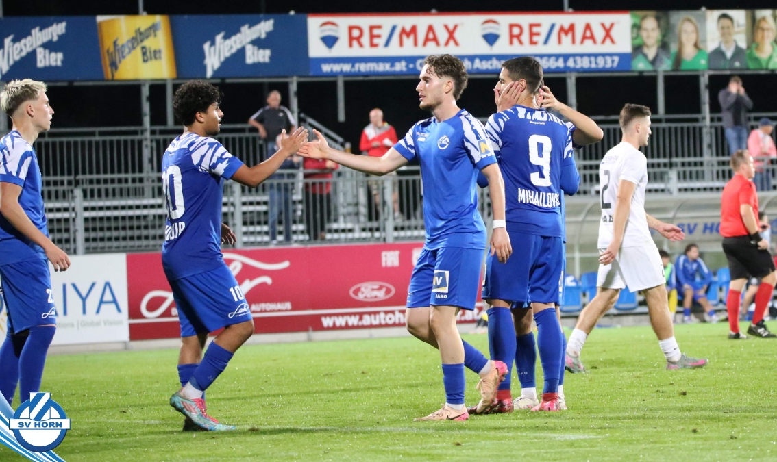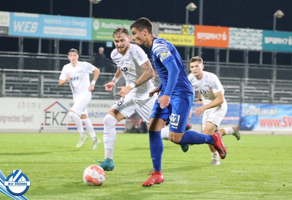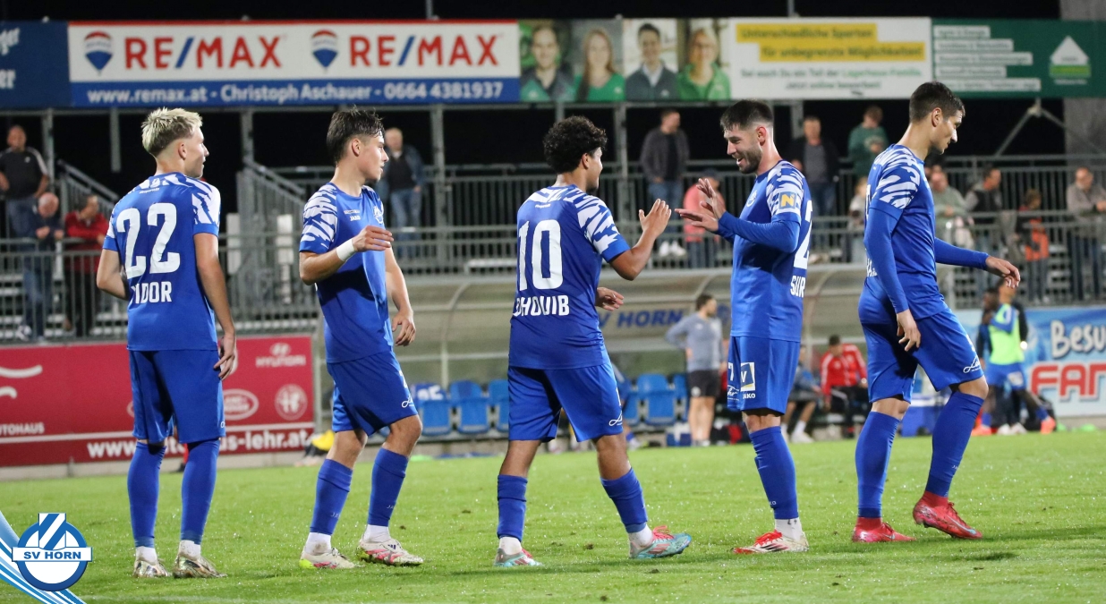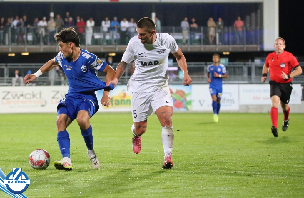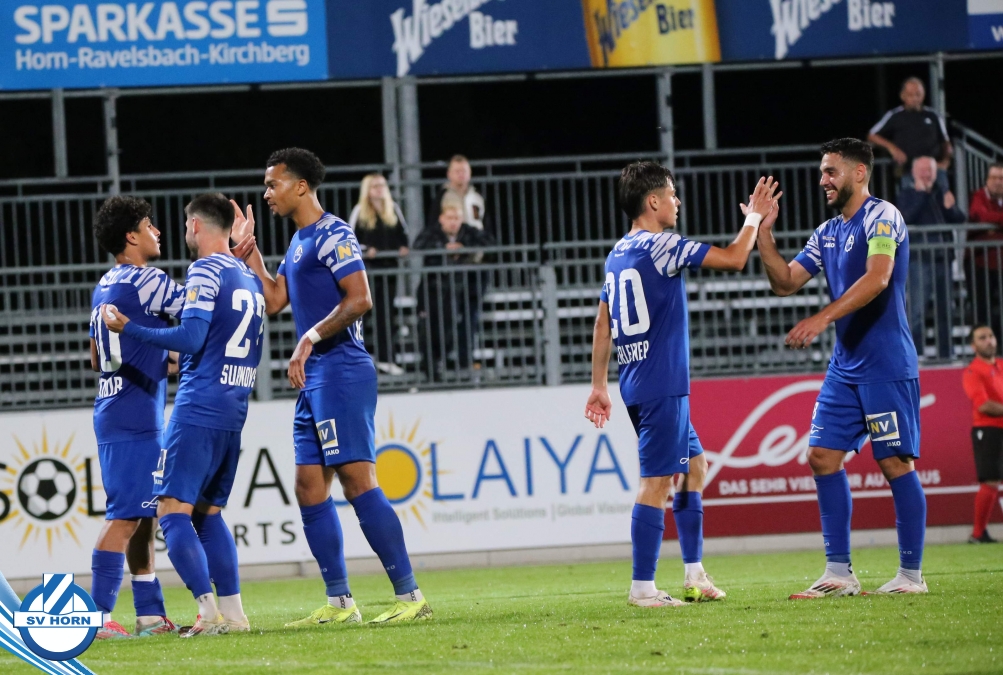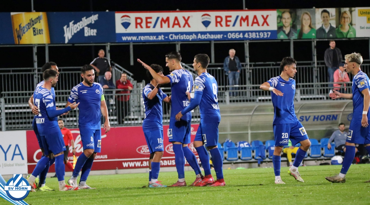 Auch in Halbzeit 2 dasselbe Bild. Horn ist spielerisch überlegen und hat gleich wieder gute Gelegenheiten, trifft aber zunächst nur den Pfosten. Die Gäste wollen jeden Ball von hinten herausspielen und schlagen keinen Ball ab - daraus resultiert das 3:0 - Karim Dhouip erkämpft sich den Ball von der gegnerischen Abwehr und versenkt mit einem Schuss ins lange Eck zum 3:0. Das 4. Tor ist fast ein Spiegelbild des 4. Treffers mit einem Ballgewinn im Strafraum der Gäste von eienem Verteidiger - wieder holt sich Karim Dhouip den Ball vom Gegner - umspielt diesmal noch den Torhüter und schießt ein. Das 5:0 ist dann wieder eine richtig schön heraus gespielte Aktion, wo sich Zoran Mihajlovic im Strafraum der Gegner durchsetzt und zu Dhouip zurücklegt, der den Ball zum lupenreinen Hattrick versenkt. Den Abschluss des Torreigens macht schließlich wieder Zoran Mihajlovic: er versetzt den herauslaufenden Torhüter außerhalb des Strafraums, kann auch am Leibchen nicht mehr gehalten werden von einem Verteidiger und schießt unwiderstehlich zum 6:0 ein.