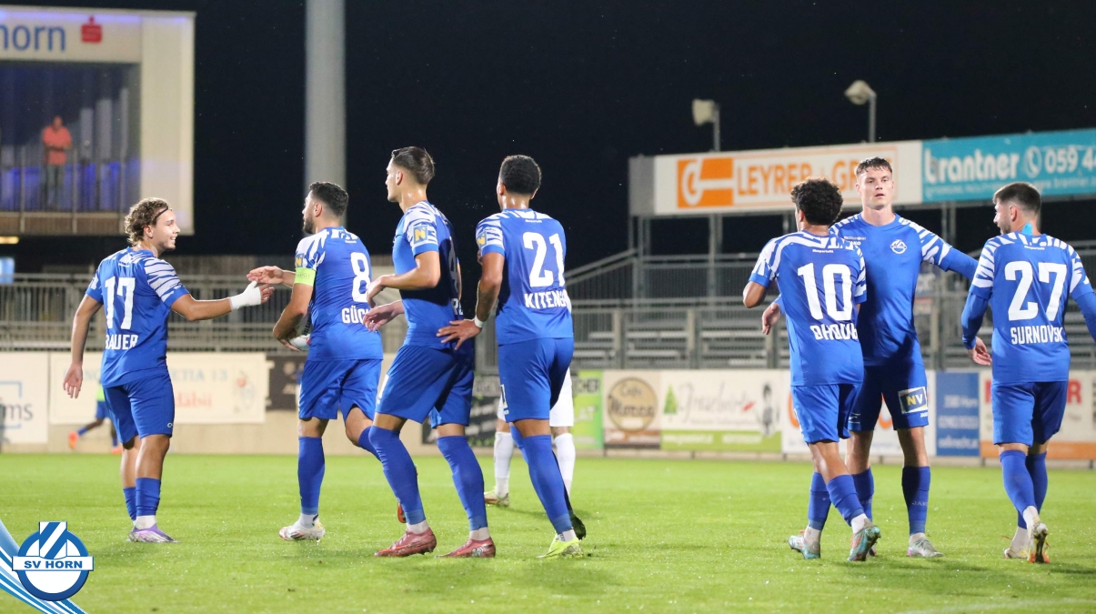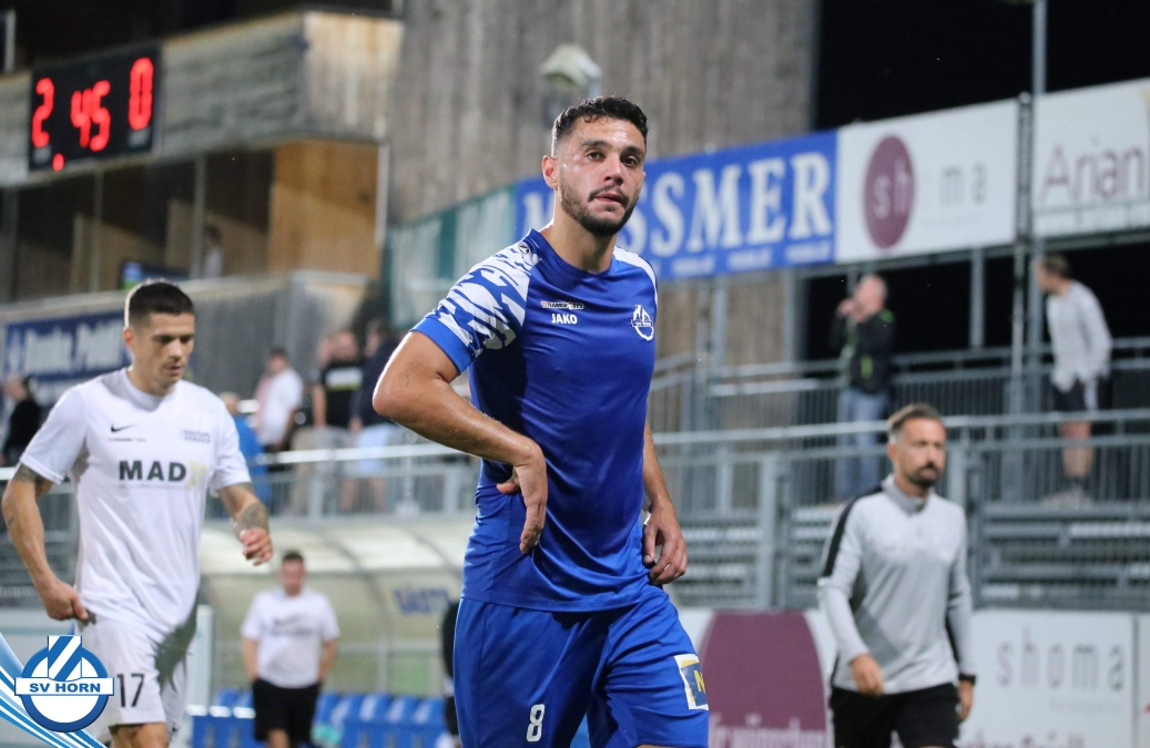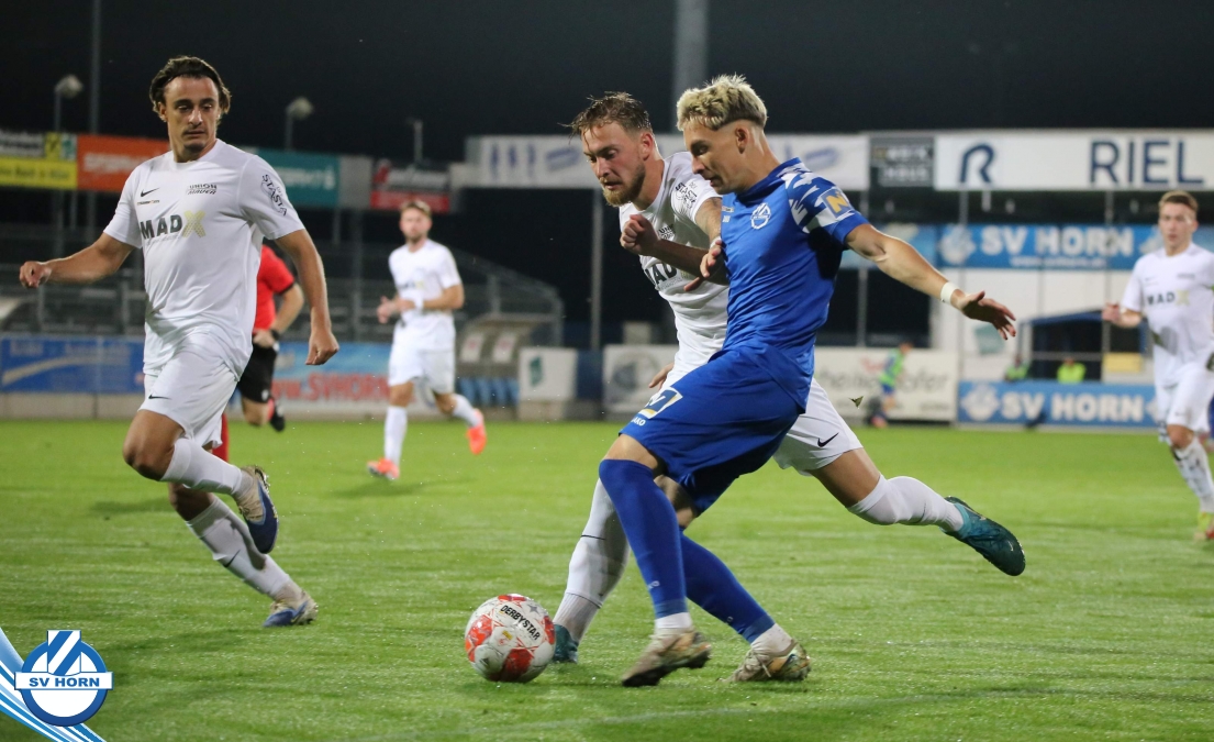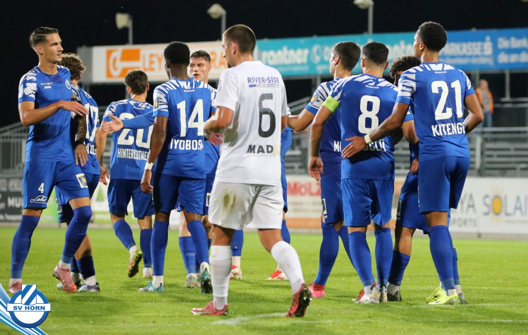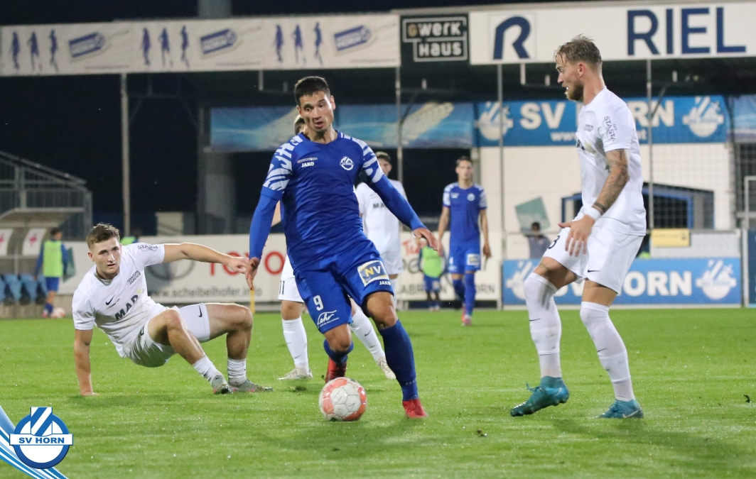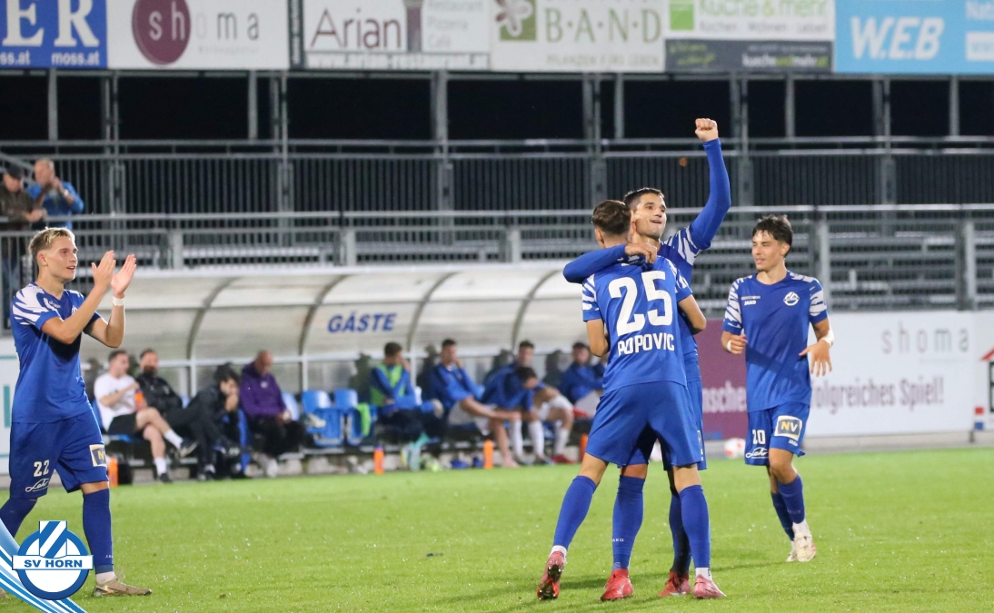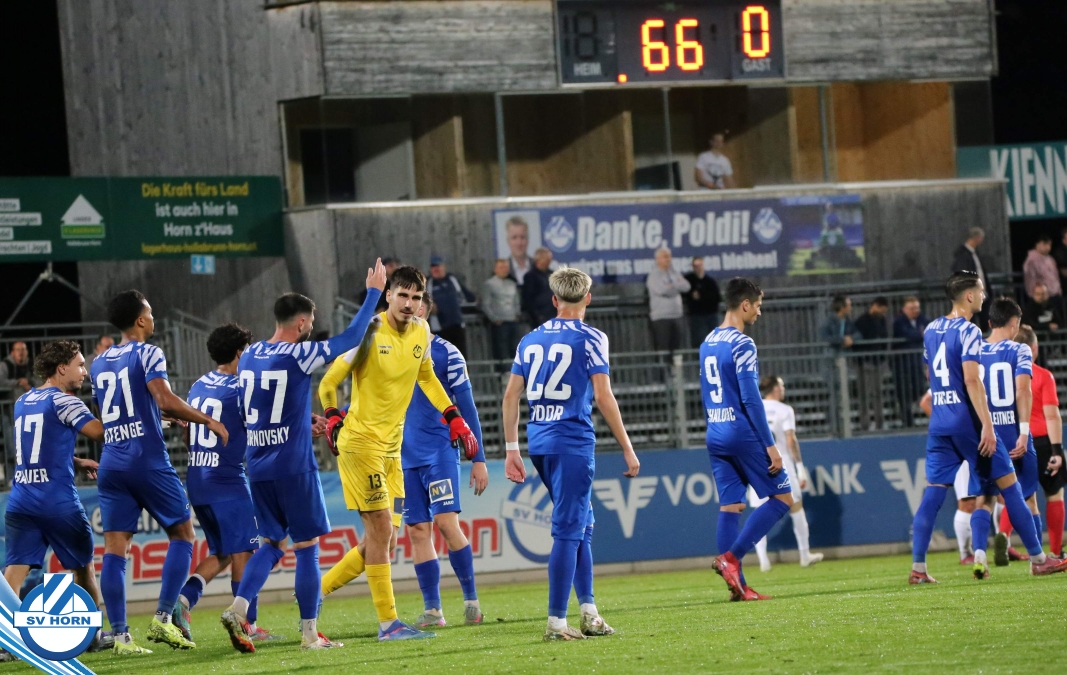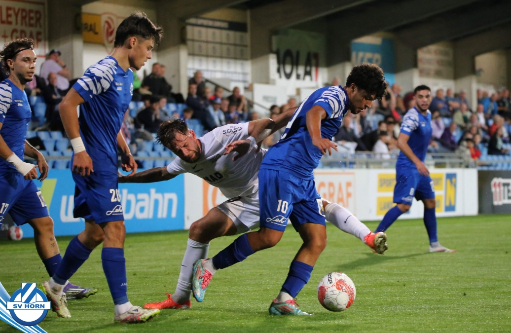 Auch in Halbzeit 2 dasselbe Bild. Horn ist spielerisch überlegen und hat gleich wieder gute Gelegenheiten, trifft aber zunächst nur den Pfosten. Die Gäste wollen jeden Ball von hinten herausspielen und schlagen keinen Ball ab - daraus resultiert das 3:0 - Karim Dhouip erkämpft sich den Ball von der gegnerischen Abwehr und versenkt mit einem Schuss ins lange Eck zum 3:0. Das 4. Tor ist fast ein Spiegelbild des 4. Treffers mit einem Ballgewinn im Strafraum der Gäste von eienem Verteidiger - wieder holt sich Karim Dhouip den Ball vom Gegner - umspielt diesmal noch den Torhüter und schießt ein. Das 5:0 ist dann wieder eine richtig schön heraus gespielte Aktion, wo sich Zoran Mihajlovic im Strafraum der Gegner durchsetzt und zu Dhouip zurücklegt, der den Ball zum lupenreinen Hattrick versenkt. Den Abschluss des Torreigens macht schließlich wieder Zoran Mihajlovic: er versetzt den herauslaufenden Torhüter außerhalb des Strafraums, kann auch am Leibchen nicht mehr gehalten werden von einem Verteidiger und schießt unwiderstehlich zum 6:0 ein.