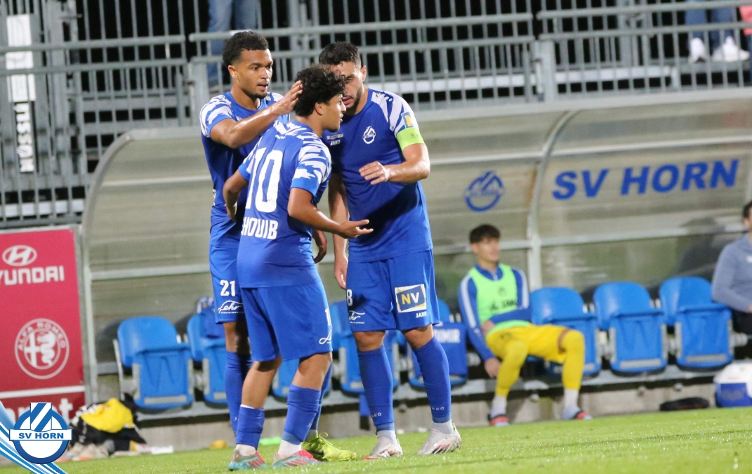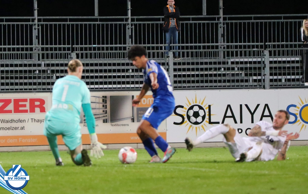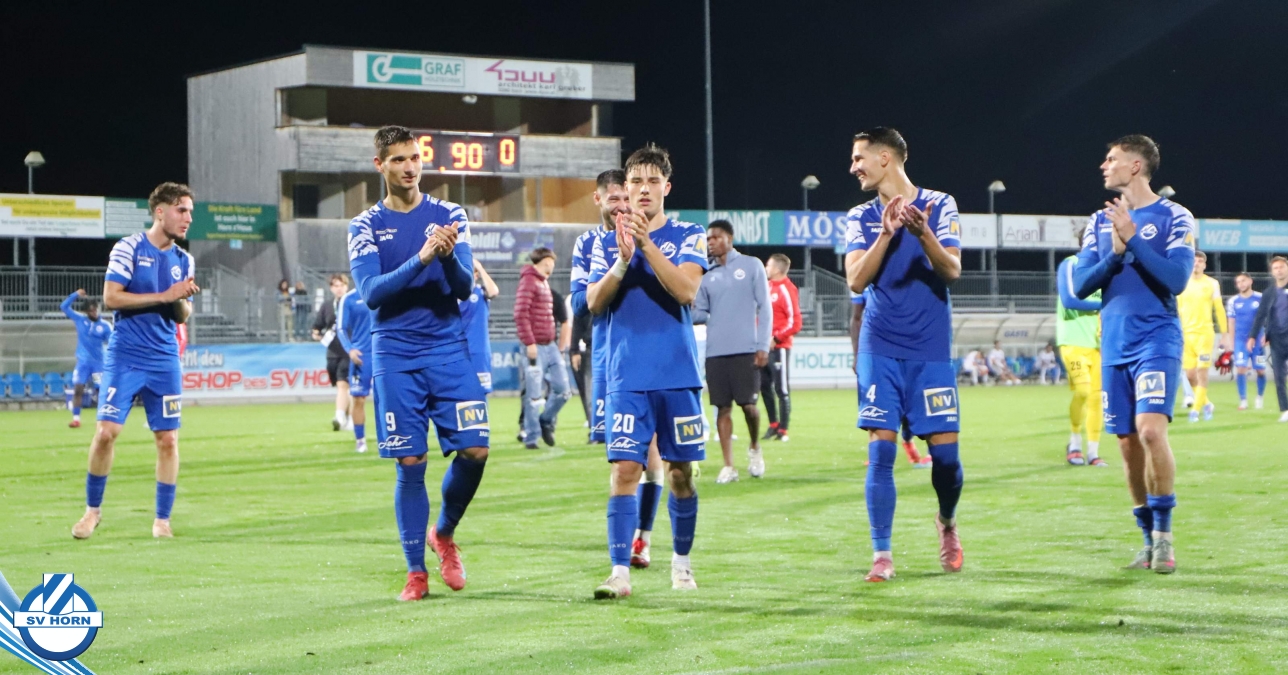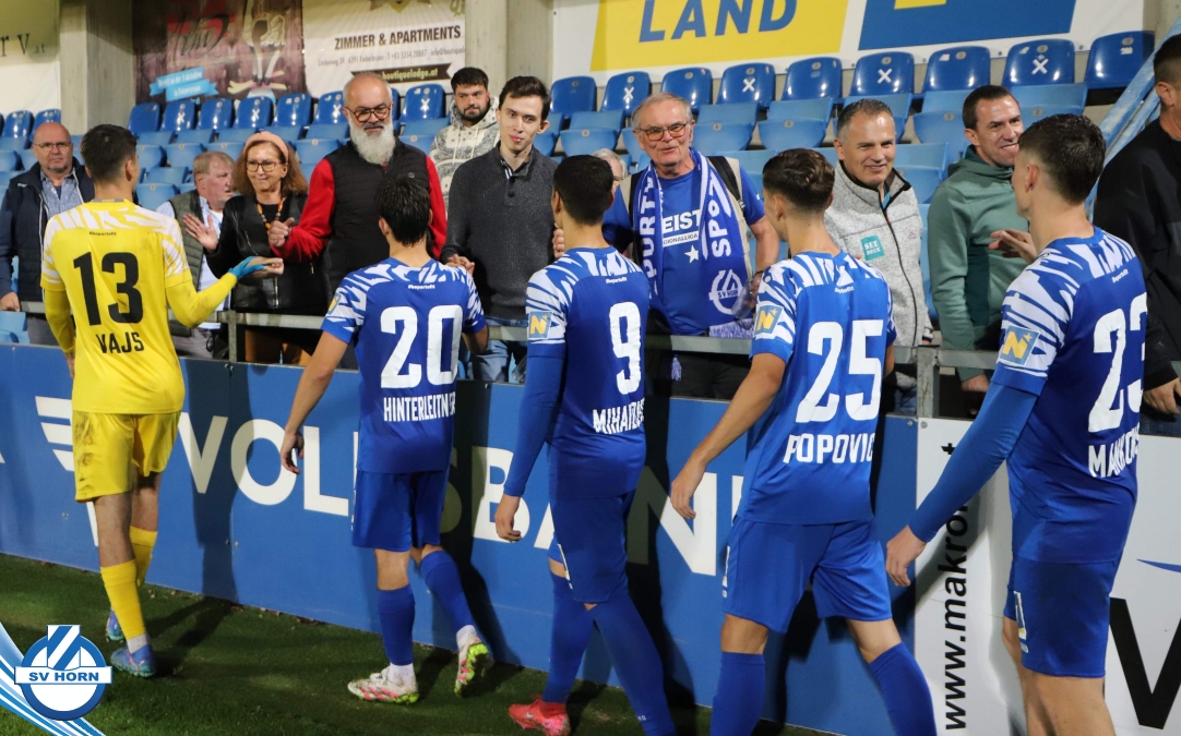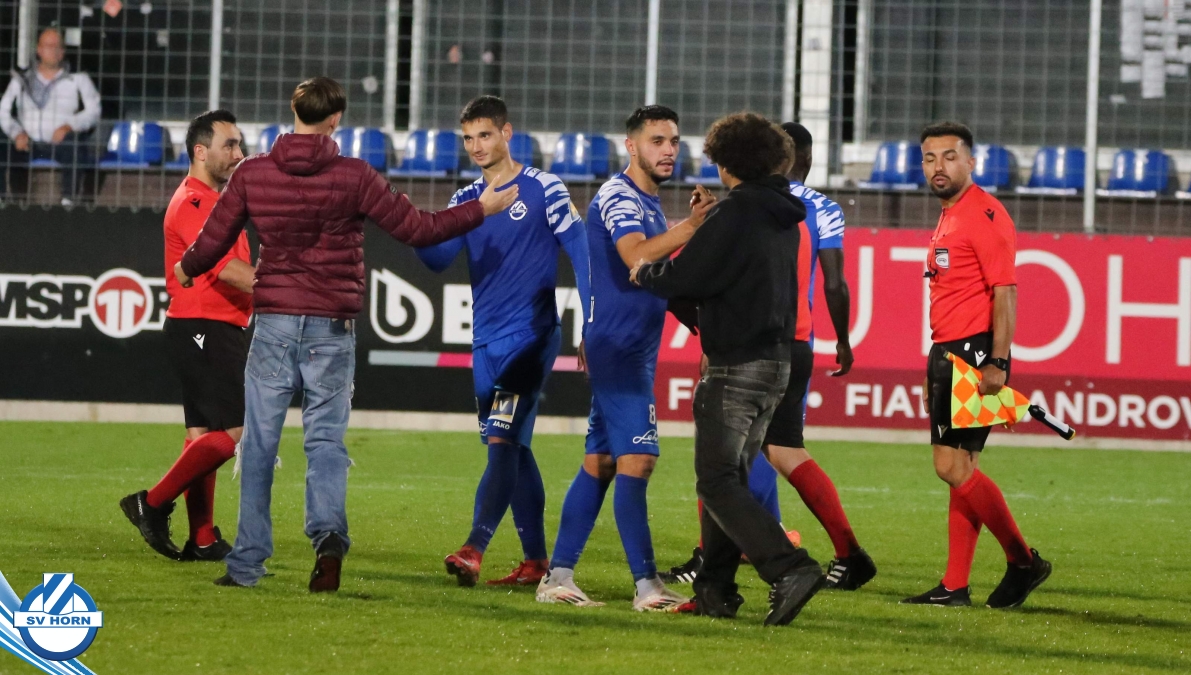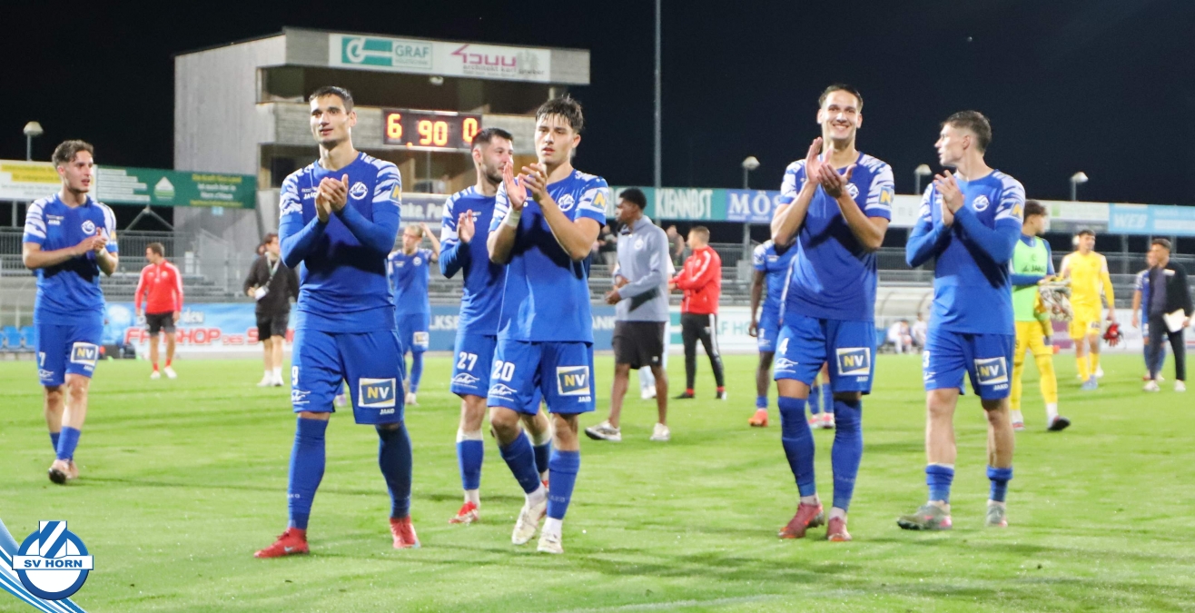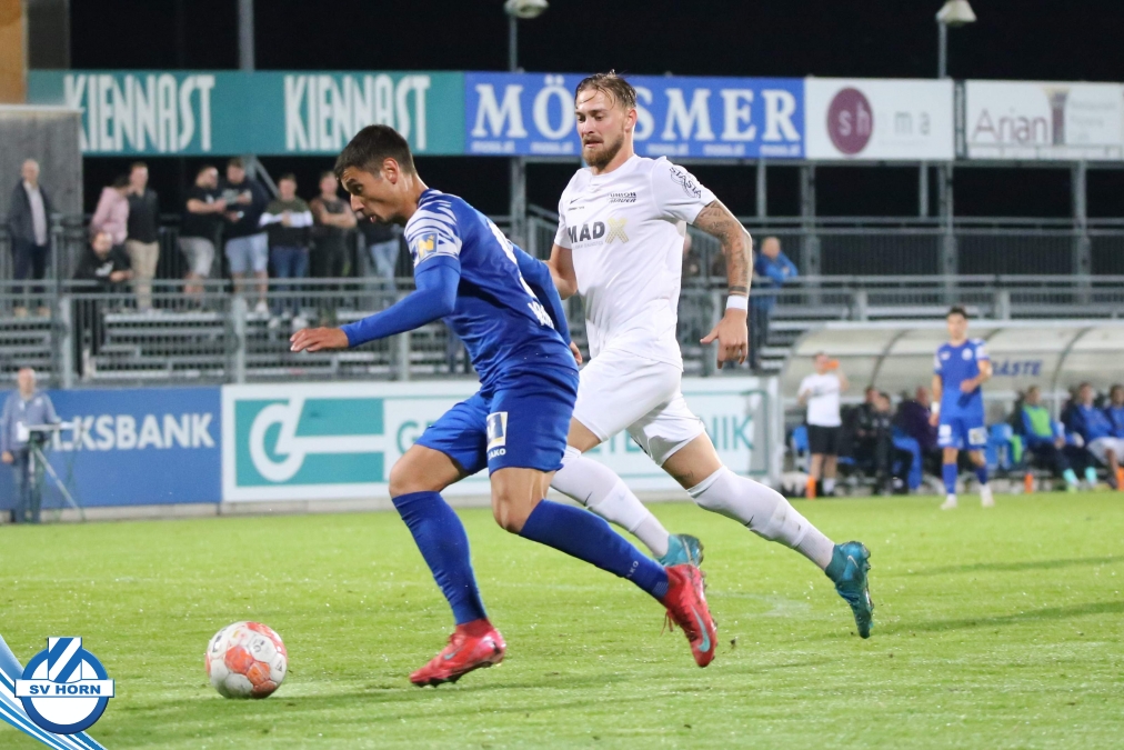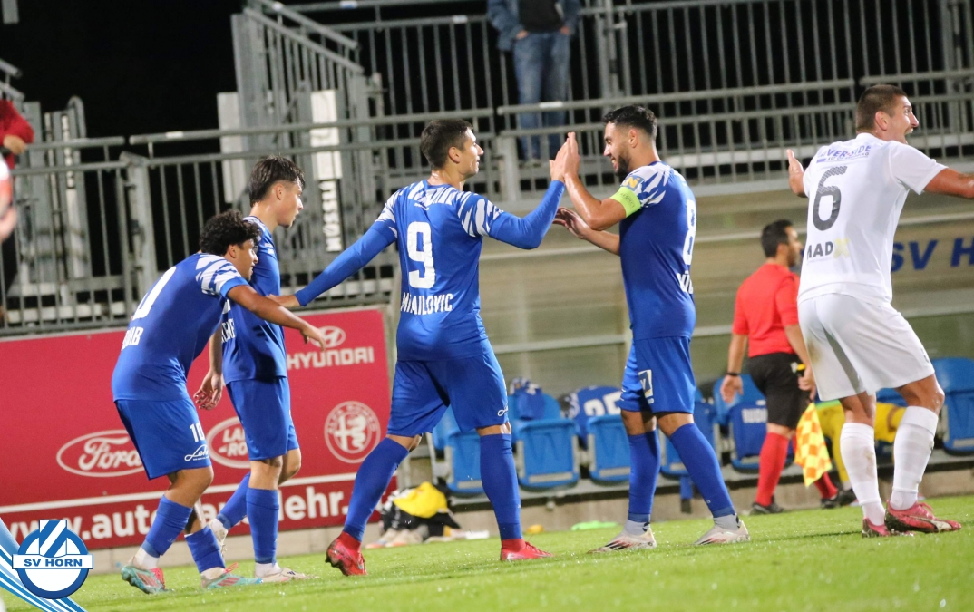 Auch in Halbzeit 2 dasselbe Bild. Horn ist spielerisch überlegen und hat gleich wieder gute Gelegenheiten, trifft aber zunächst nur den Pfosten. Die Gäste wollen jeden Ball von hinten herausspielen und schlagen keinen Ball ab - daraus resultiert das 3:0 - Karim Dhouip erkämpft sich den Ball von der gegnerischen Abwehr und versenkt mit einem Schuss ins lange Eck zum 3:0. Das 4. Tor ist fast ein Spiegelbild des 4. Treffers mit einem Ballgewinn im Strafraum der Gäste von eienem Verteidiger - wieder holt sich Karim Dhouip den Ball vom Gegner - umspielt diesmal noch den Torhüter und schießt ein. Das 5:0 ist dann wieder eine richtig schön heraus gespielte Aktion, wo sich Zoran Mihajlovic im Strafraum der Gegner durchsetzt und zu Dhouip zurücklegt, der den Ball zum lupenreinen Hattrick versenkt. Den Abschluss des Torreigens macht schließlich wieder Zoran Mihajlovic: er versetzt den herauslaufenden Torhüter außerhalb des Strafraums, kann auch am Leibchen nicht mehr gehalten werden von einem Verteidiger und schießt unwiderstehlich zum 6:0 ein.
