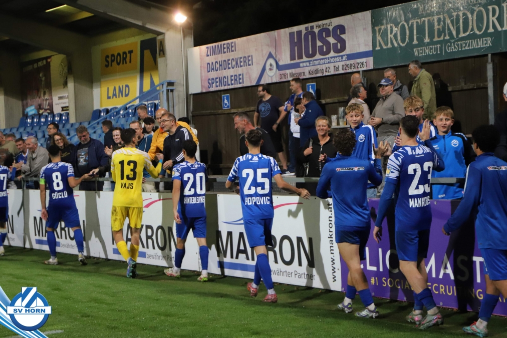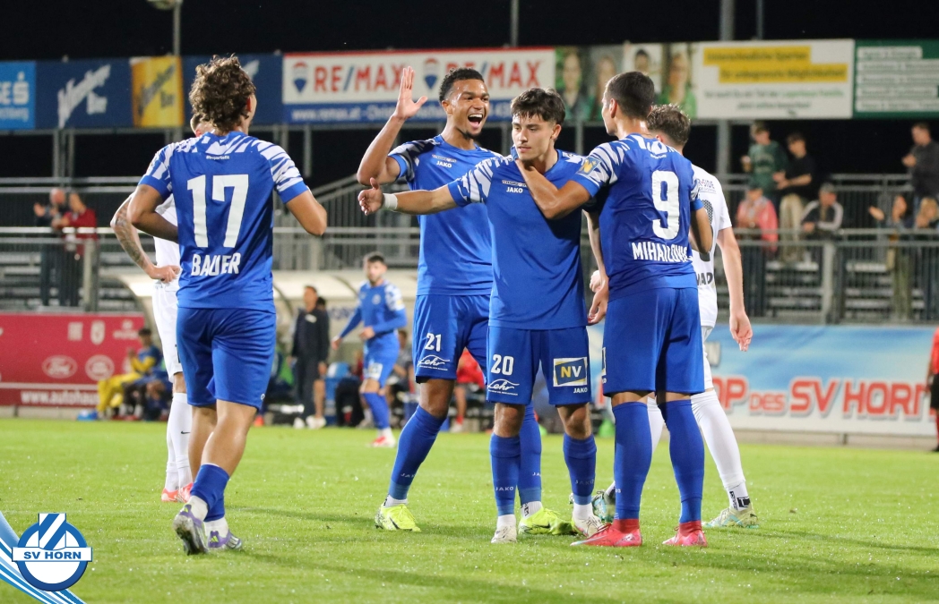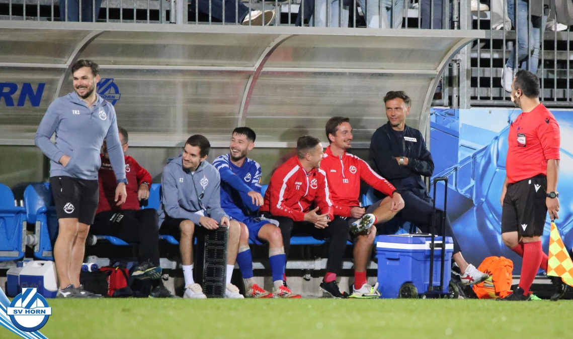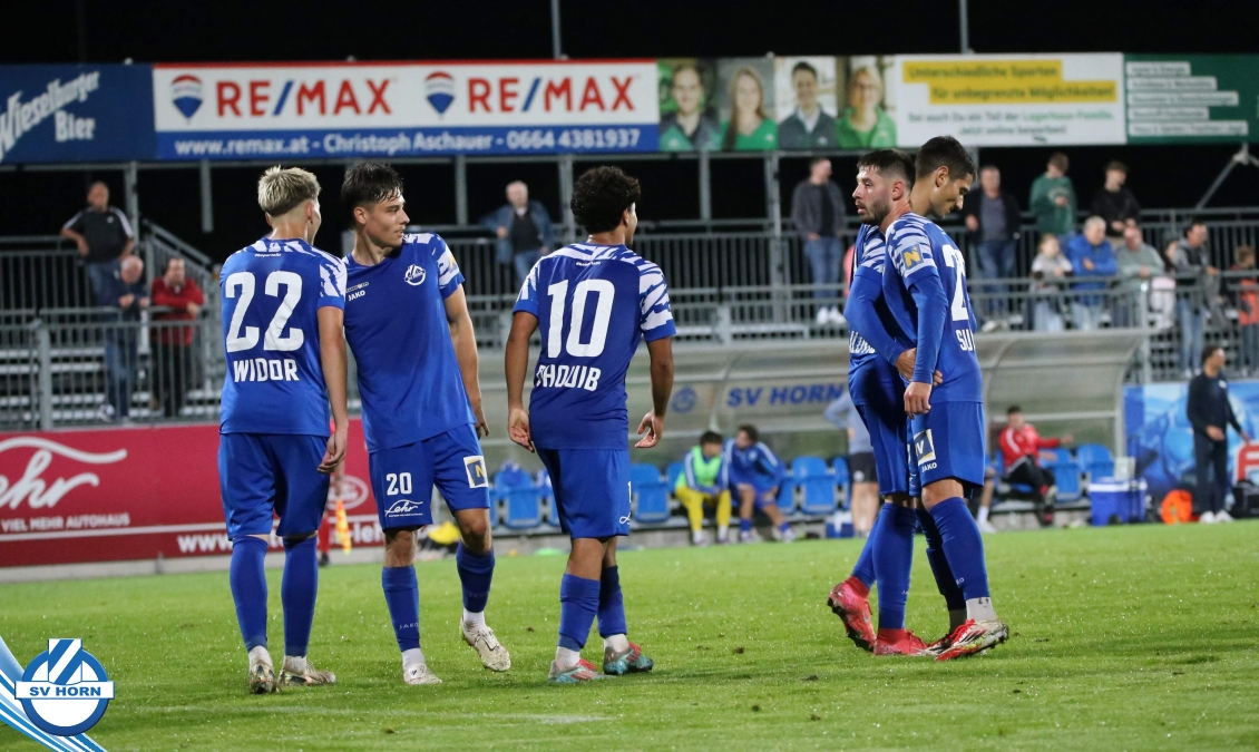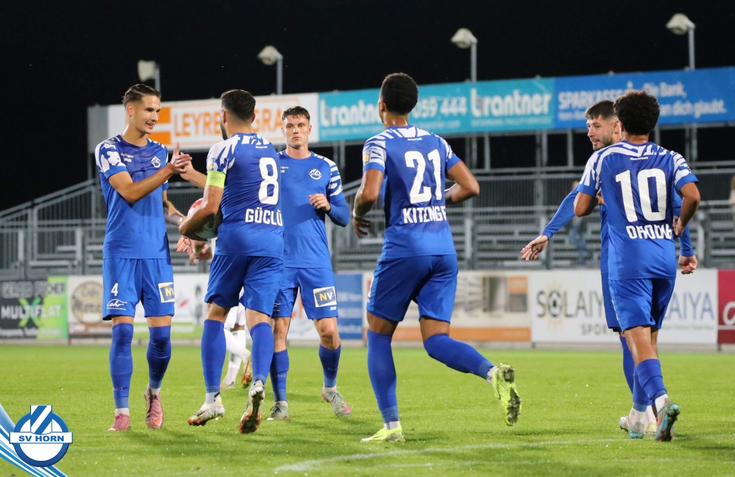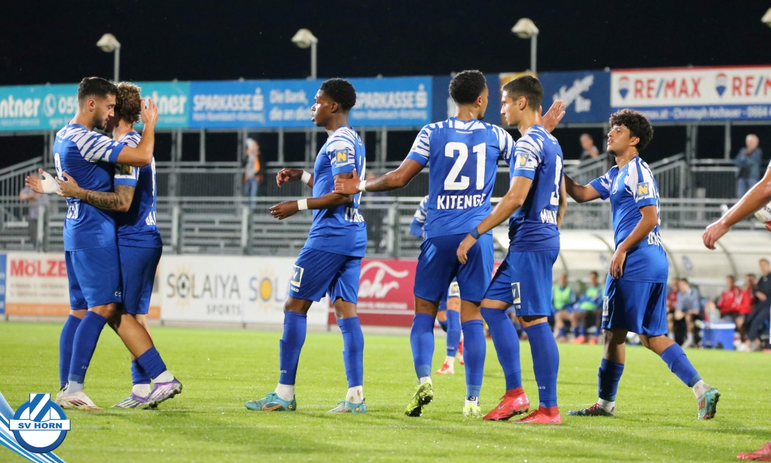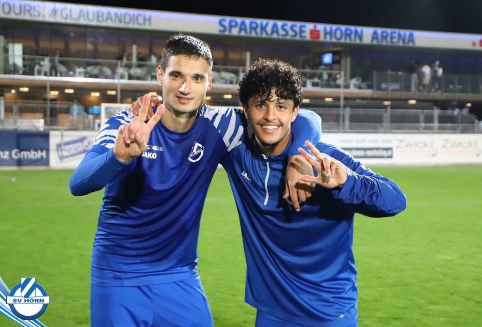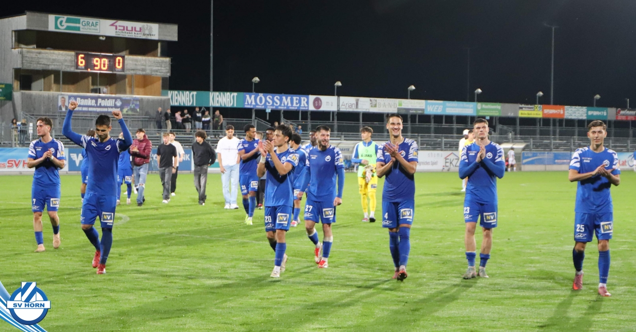 Auch in Halbzeit 2 dasselbe Bild. Horn ist spielerisch überlegen und hat gleich wieder gute Gelegenheiten, trifft aber zunächst nur den Pfosten. Die Gäste wollen jeden Ball von hinten herausspielen und schlagen keinen Ball ab - daraus resultiert das 3:0 - Karim Dhouip erkämpft sich den Ball von der gegnerischen Abwehr und versenkt mit einem Schuss ins lange Eck zum 3:0. Das 4. Tor ist fast ein Spiegelbild des 4. Treffers mit einem Ballgewinn im Strafraum der Gäste von eienem Verteidiger - wieder holt sich Karim Dhouip den Ball vom Gegner - umspielt diesmal noch den Torhüter und schießt ein. Das 5:0 ist dann wieder eine richtig schön heraus gespielte Aktion, wo sich Zoran Mihajlovic im Strafraum der Gegner durchsetzt und zu Dhouip zurücklegt, der den Ball zum lupenreinen Hattrick versenkt. Den Abschluss des Torreigens macht schließlich wieder Zoran Mihajlovic: er versetzt den herauslaufenden Torhüter außerhalb des Strafraums, kann auch am Leibchen nicht mehr gehalten werden von einem Verteidiger und schießt unwiderstehlich zum 6:0 ein.