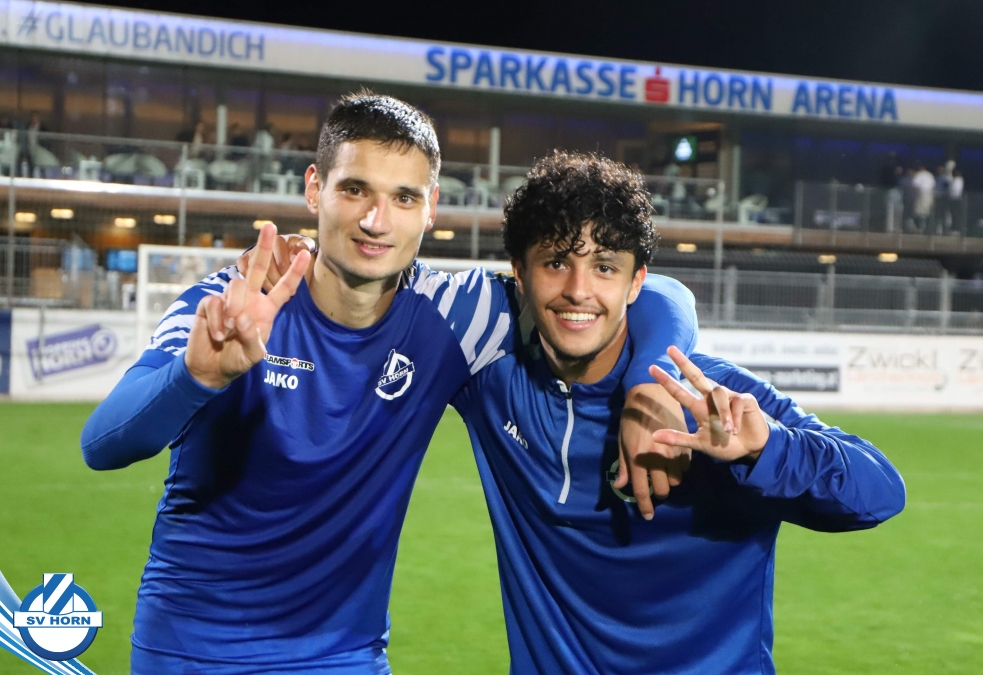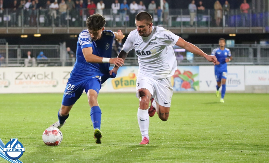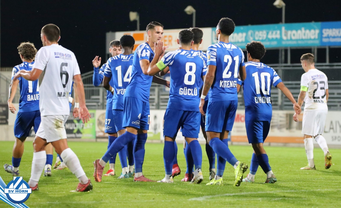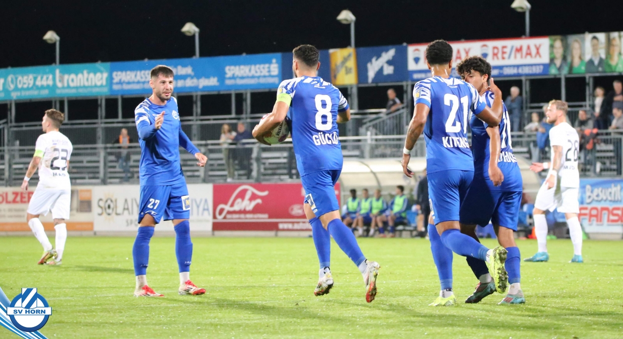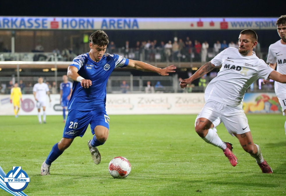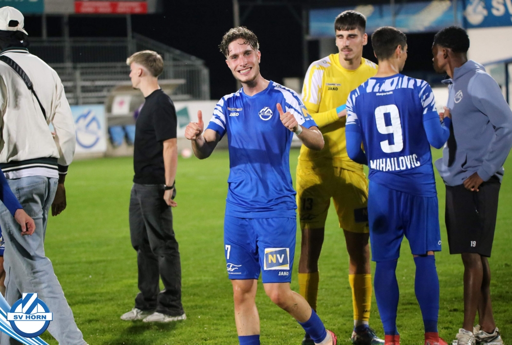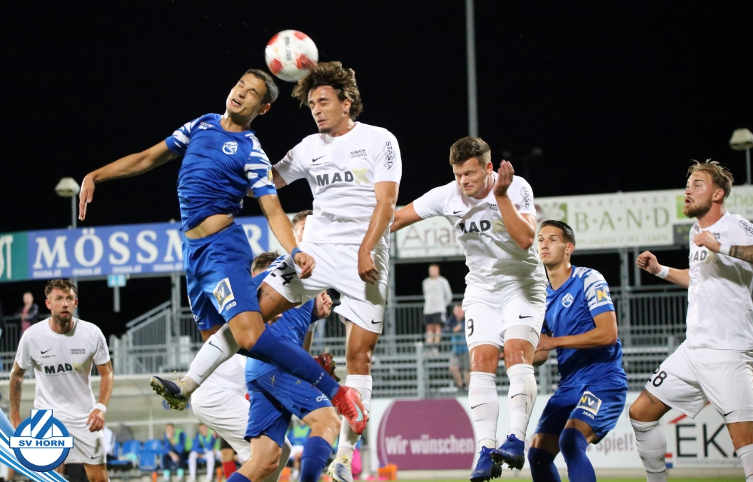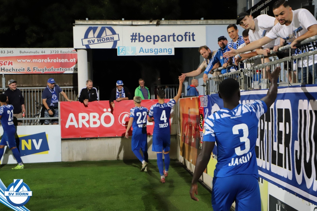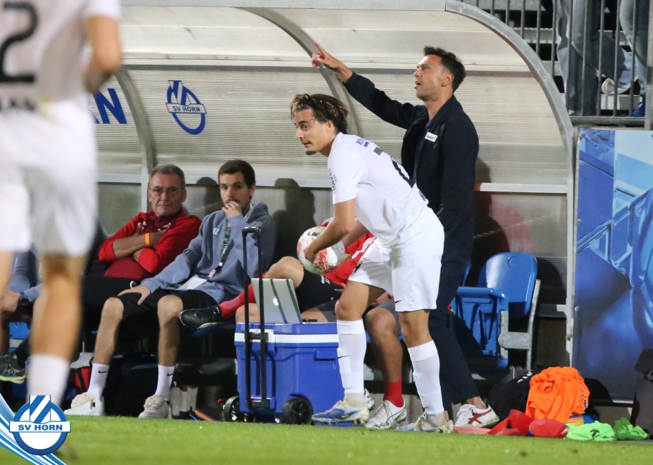Auch in Halbzeit 2 dasselbe Bild. Horn ist spielerisch überlegen und hat gleich wieder gute Gelegenheiten, trifft aber zunächst nur den Pfosten. Die Gäste wollen jeden Ball von hinten herausspielen und schlagen keinen Ball ab - daraus resultiert das 3:0 - Karim Dhouip erkämpft sich den Ball von der gegnerischen Abwehr und versenkt mit einem Schuss ins lange Eck zum 3:0. Das 4. Tor ist fast ein Spiegelbild des 4. Treffers mit einem Ballgewinn im Strafraum der Gäste von eienem Verteidiger - wieder holt sich Karim Dhouip den Ball vom Gegner - umspielt diesmal noch den Torhüter und schießt ein. Das 5:0 ist dann wieder eine richtig schön heraus gespielte Aktion, wo sich Zoran Mihajlovic im Strafraum der Gegner durchsetzt und zu Dhouip zurücklegt, der den Ball zum lupenreinen Hattrick versenkt. Den Abschluss des Torreigens macht schließlich wieder Zoran Mihajlovic: er versetzt den herauslaufenden Torhüter außerhalb des Strafraums, kann auch am Leibchen nicht mehr gehalten werden von einem Verteidiger und schießt unwiderstehlich zum 6:0 ein.