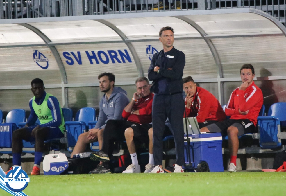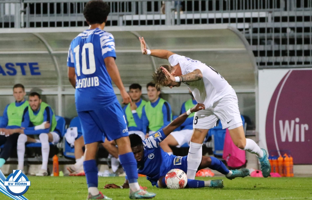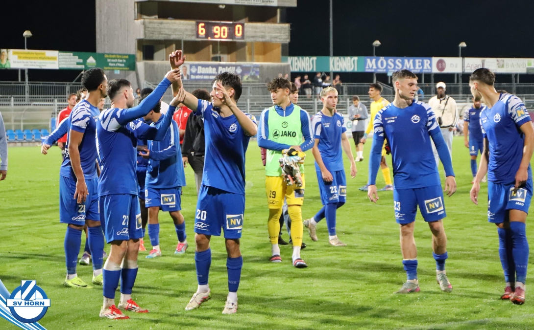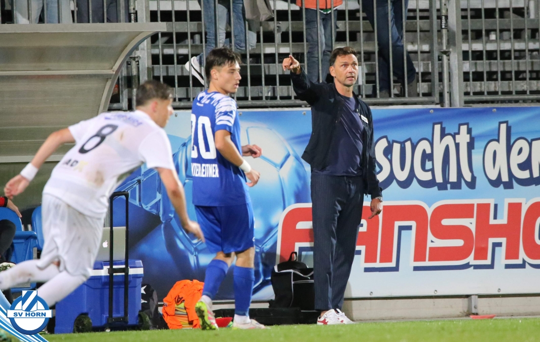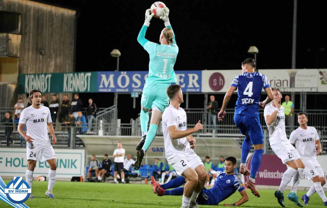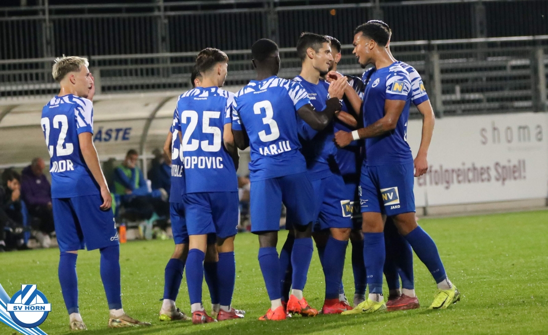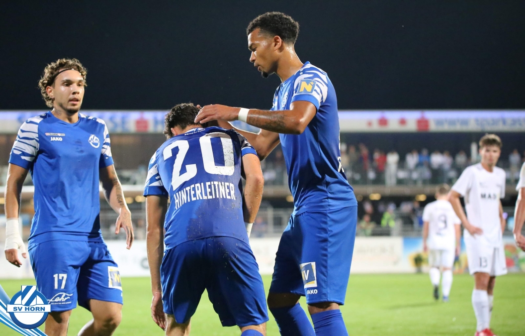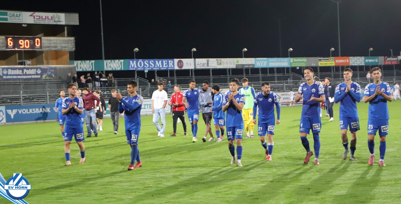 Auch in Halbzeit 2 dasselbe Bild. Horn ist spielerisch überlegen und hat gleich wieder gute Gelegenheiten, trifft aber zunächst nur den Pfosten. Die Gäste wollen jeden Ball von hinten herausspielen und schlagen keinen Ball ab - daraus resultiert das 3:0 - Karim Dhouip erkämpft sich den Ball von der gegnerischen Abwehr und versenkt mit einem Schuss ins lange Eck zum 3:0. Das 4. Tor ist fast ein Spiegelbild des 4. Treffers mit einem Ballgewinn im Strafraum der Gäste von eienem Verteidiger - wieder holt sich Karim Dhouip den Ball vom Gegner - umspielt diesmal noch den Torhüter und schießt ein. Das 5:0 ist dann wieder eine richtig schön heraus gespielte Aktion, wo sich Zoran Mihajlovic im Strafraum der Gegner durchsetzt und zu Dhouip zurücklegt, der den Ball zum lupenreinen Hattrick versenkt. Den Abschluss des Torreigens macht schließlich wieder Zoran Mihajlovic: er versetzt den herauslaufenden Torhüter außerhalb des Strafraums, kann auch am Leibchen nicht mehr gehalten werden von einem Verteidiger und schießt unwiderstehlich zum 6:0 ein.
