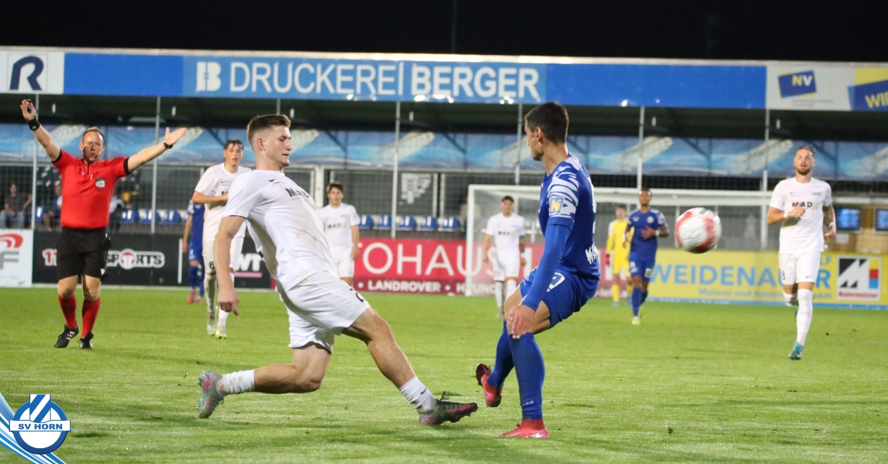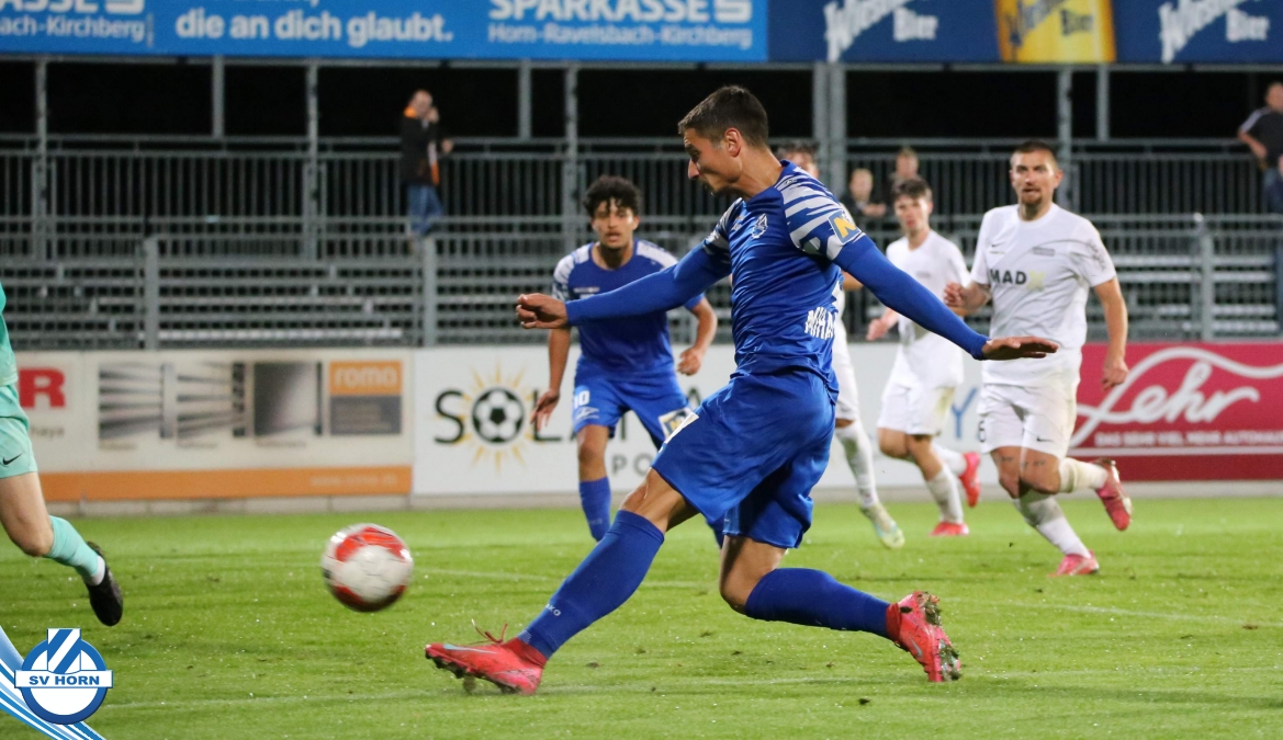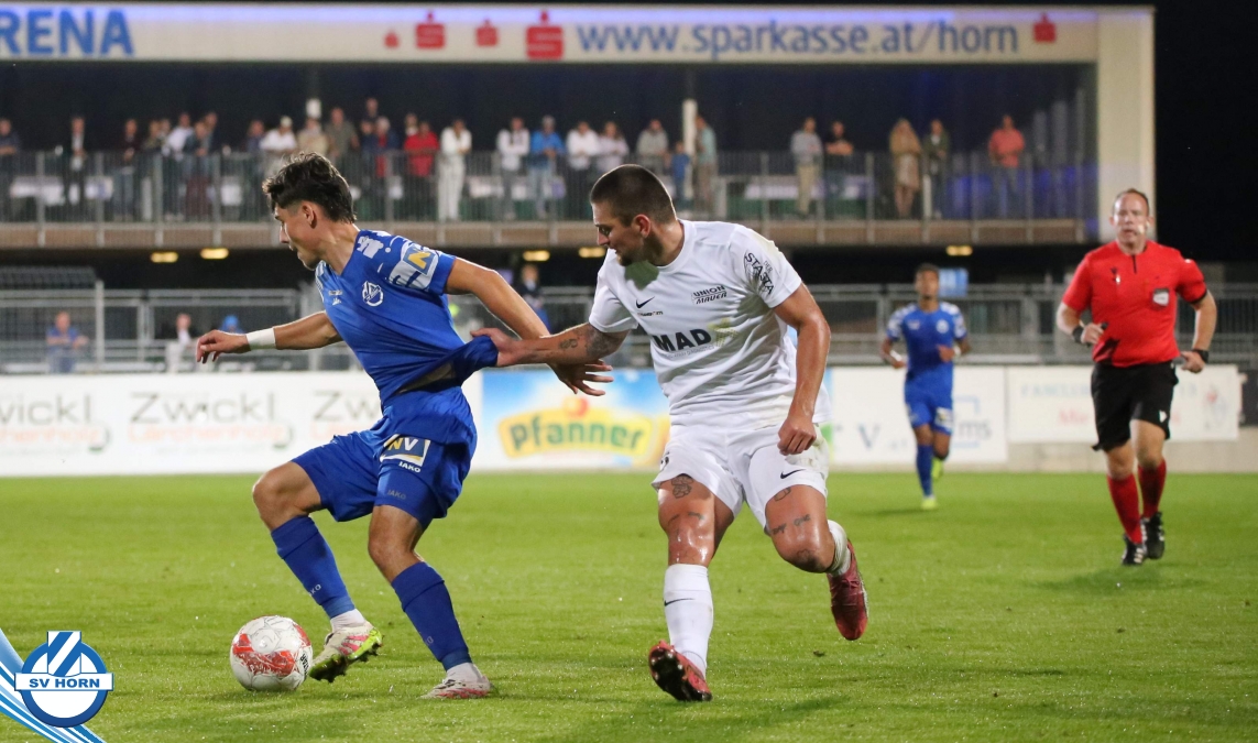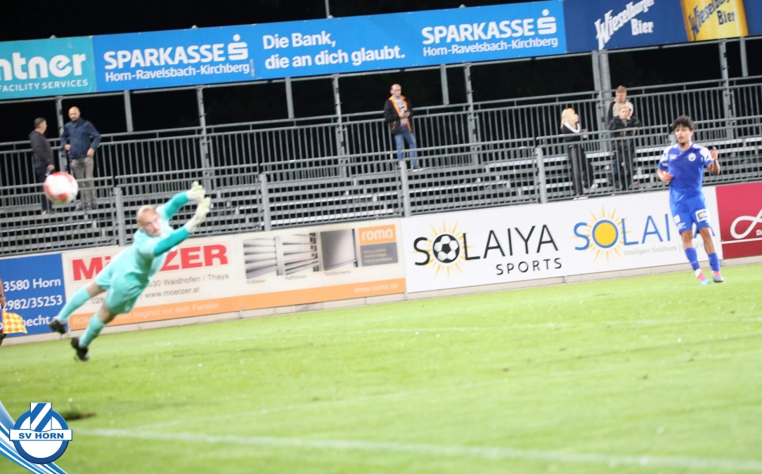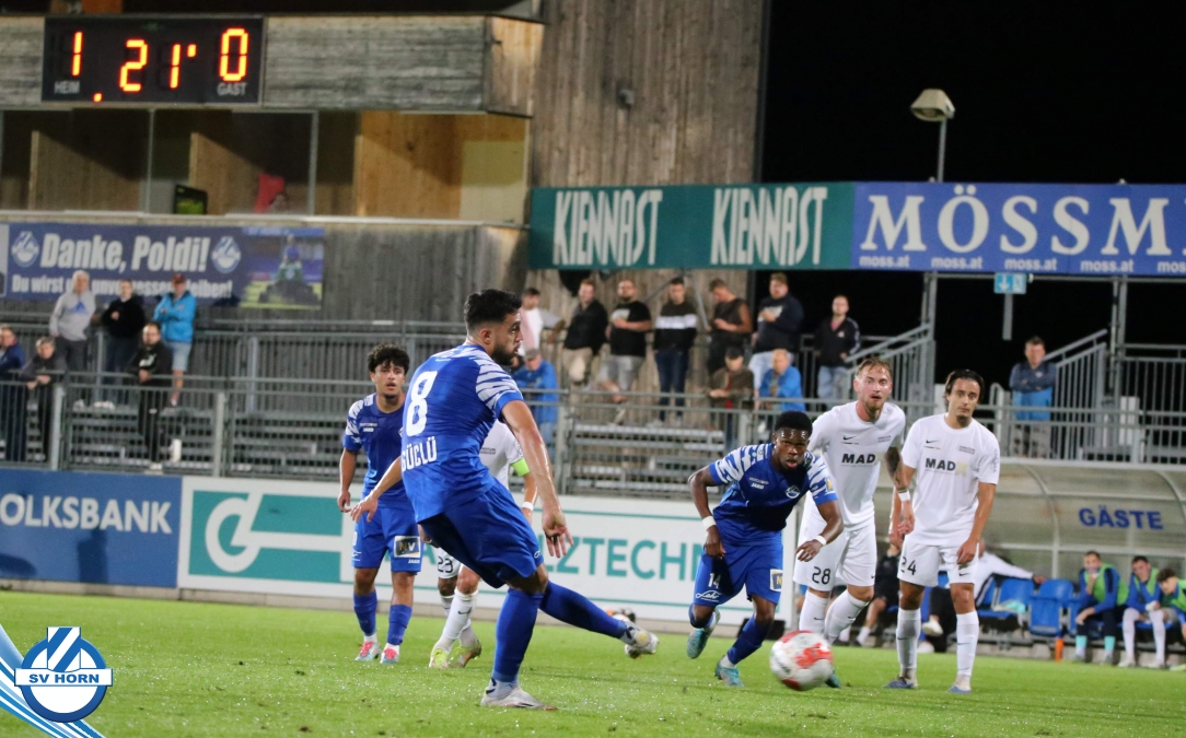 Nach 13 Minuten steht es dann aber 1:0, nachdem Raffael Bauer sich den Ball an der Linie erkämpft hat und in den Strafraum zieht und nach hinten ablegt. Dort dreht sich Torjäger Zoran Mihaljlovic und versenkt den Ball zum Führungstreffer. In einer hochklassigen Partie versucht Mauer spielerisch mitzuhalten, aber Horn macht immer wieder hohe Ballgewinne und daraus resultiert auch das 2:0, das nach einem Ballgewinn von Julian Hinterleitner durch einen Elfmeter von Kapitän Güclü entsteht. Julian Hinterleitner zieht in den Strafraum und ein Verteidiger der Gäste will hochriskant von hinten in den Ball springen, trifft aber nur den Fuß des Horners. Den dafür absolut gerechtfertigten Elfer verwertet unser Kapitän dann souverän zum 2:0 schon nach 21 Minuten. Mauer will sich keinesfalls verstecken und will spielerisch dagegen halten, kann aber die Halbchancen nicht nutzen.