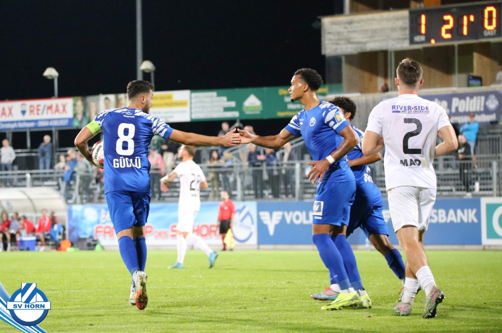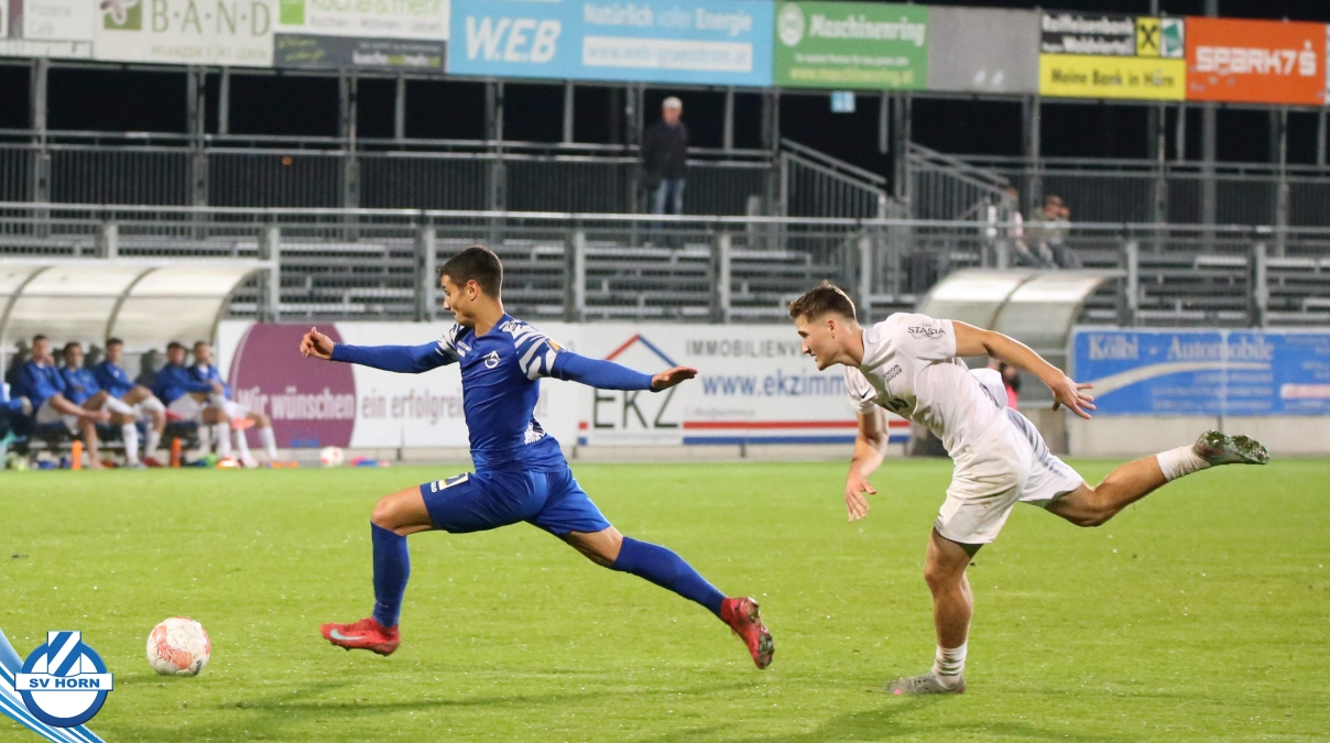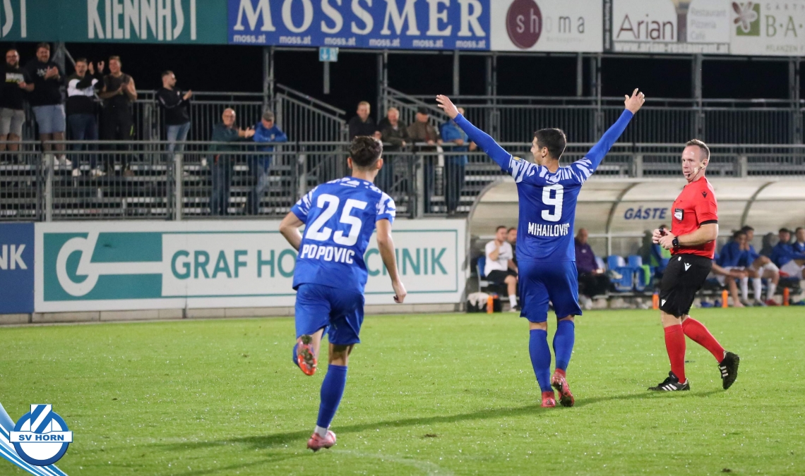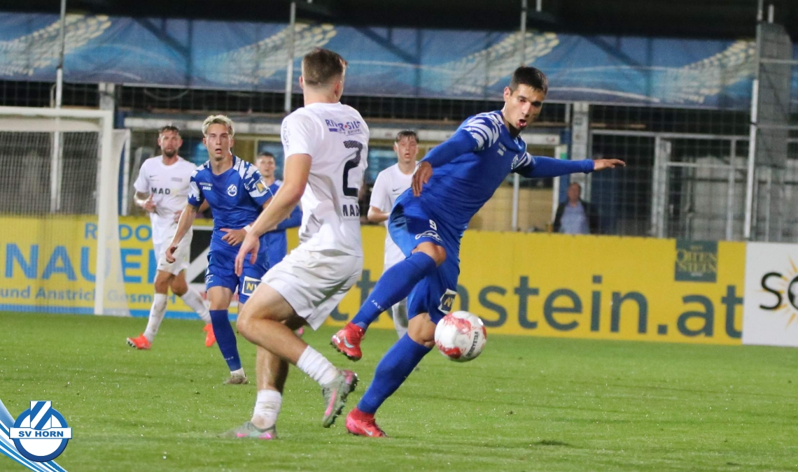 Nach 13 Minuten steht es dann aber 1:0, nachdem Raffael Bauer sich den Ball an der Linie erkämpft hat und in den Strafraum zieht und nach hinten ablegt. Dort dreht sich Torjäger Zoran Mihaljlovic und versenkt den Ball zum Führungstreffer. In einer hochklassigen Partie versucht Mauer spielerisch mitzuhalten, aber Horn macht immer wieder hohe Ballgewinne und daraus resultiert auch das 2:0, das nach einem Ballgewinn von Julian Hinterleitner durch einen Elfmeter von Kapitän Güclü entsteht. Julian Hinterleitner zieht in den Strafraum und ein Verteidiger der Gäste will hochriskant von hinten in den Ball springen, trifft aber nur den Fuß des Horners. Den dafür absolut gerechtfertigten Elfer verwertet unser Kapitän dann souverän zum 2:0 schon nach 21 Minuten. Mauer will sich keinesfalls verstecken und will spielerisch dagegen halten, kann aber die Halbchancen nicht nutzen.