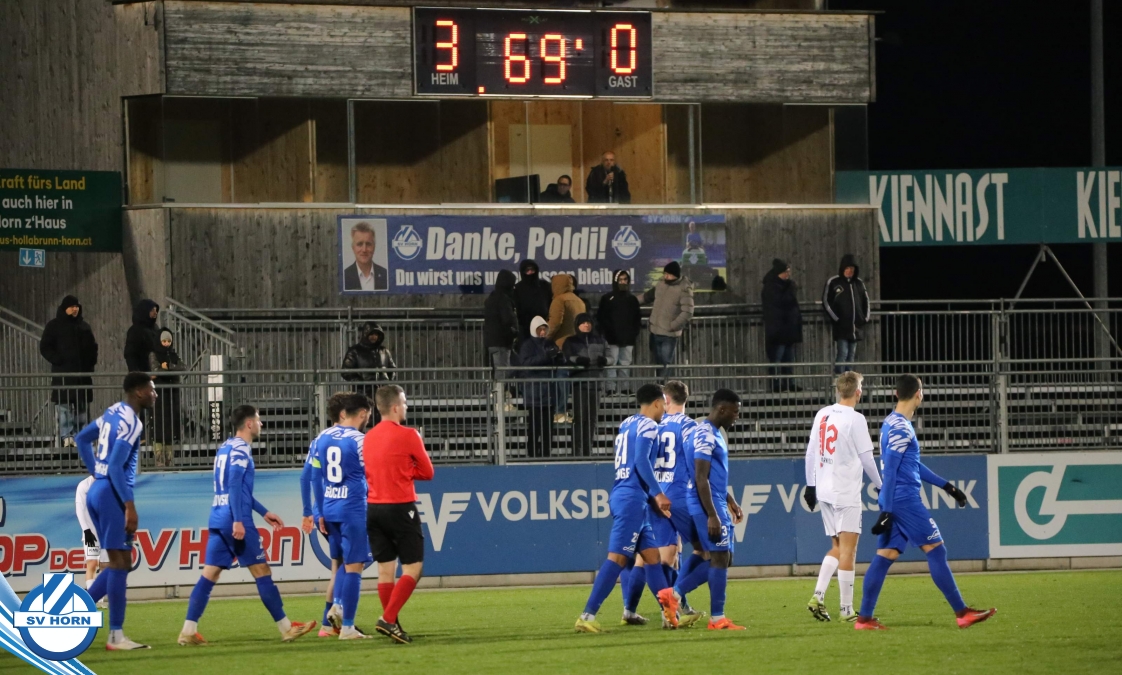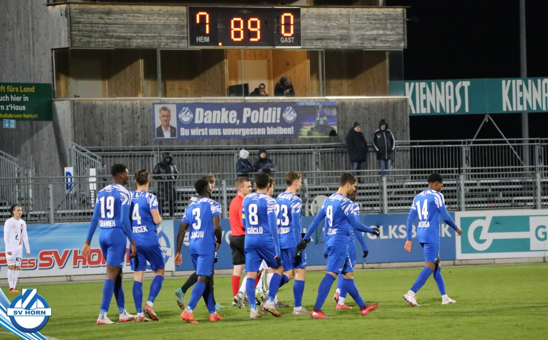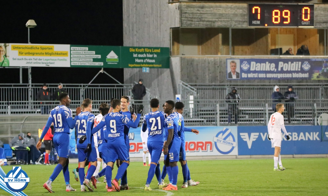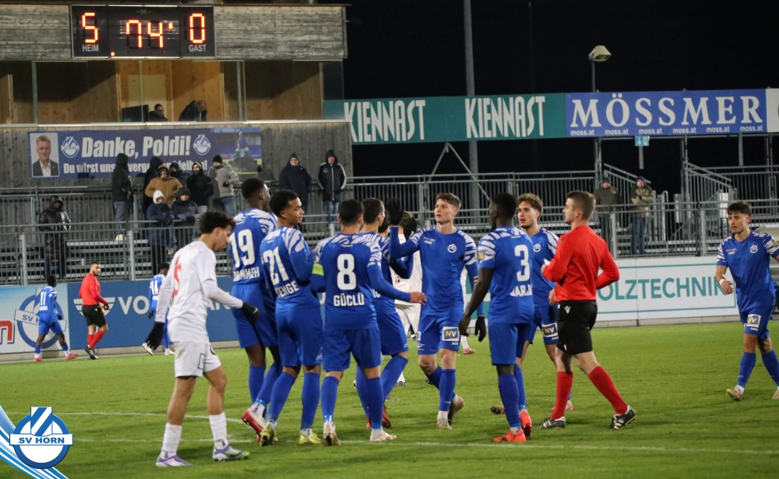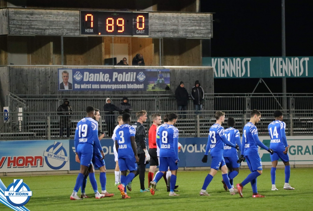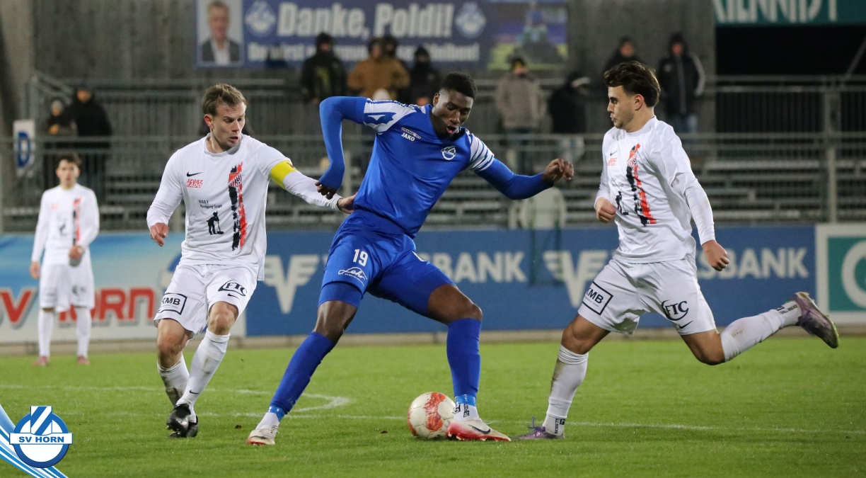 Der SV Horn spielte mit: Vajs (86. Michalak), Trcek, Budimir (75. Nsingi), Drammeh, Hinterleitner (75. Iyobosa), Jarju, Surnovsky, Güclü, Mihailovic, Kitenge (90+1. Linhart), Mankowski.