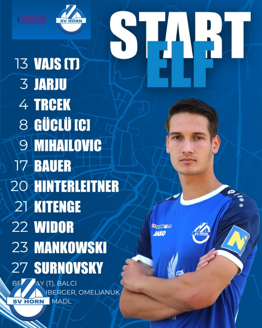 SV Horn spielte mit: Vajs; Hinterleitner (HZ. Schellenberger),Trcek, Bauer, Mankowski,   Güclü (K), Surnovsky, Kitenge, Jarju, Widor, Mihailovic;