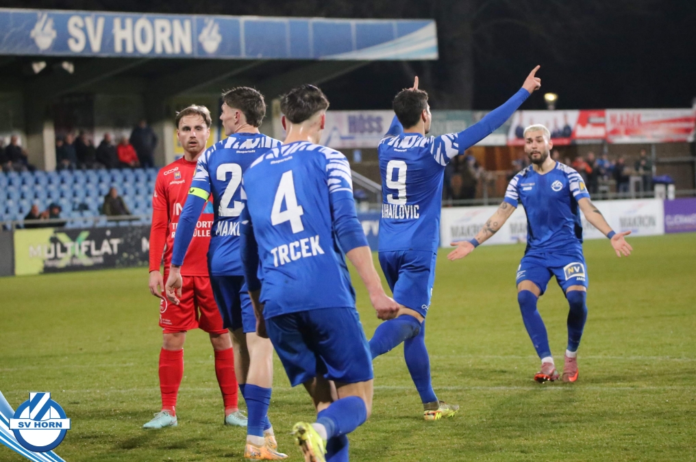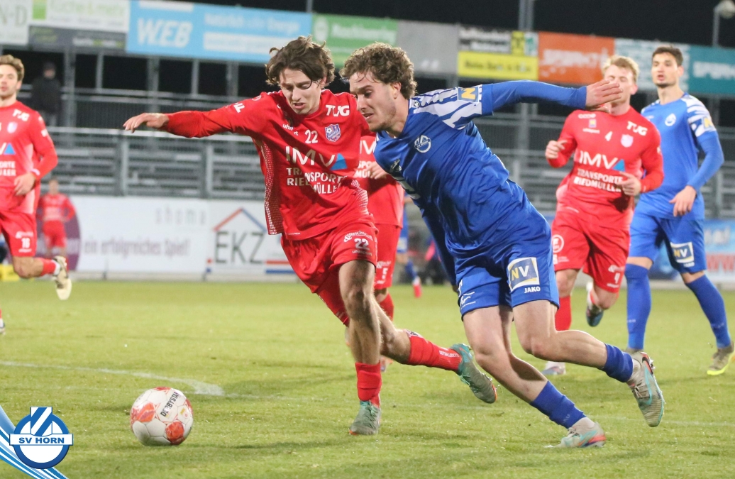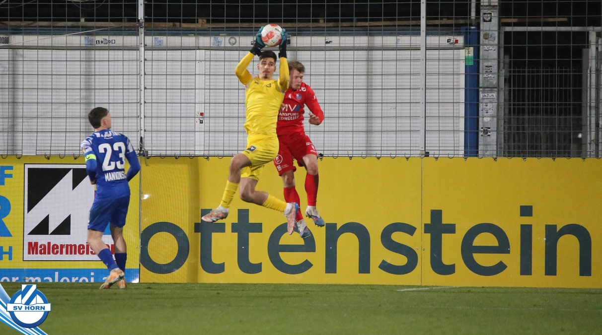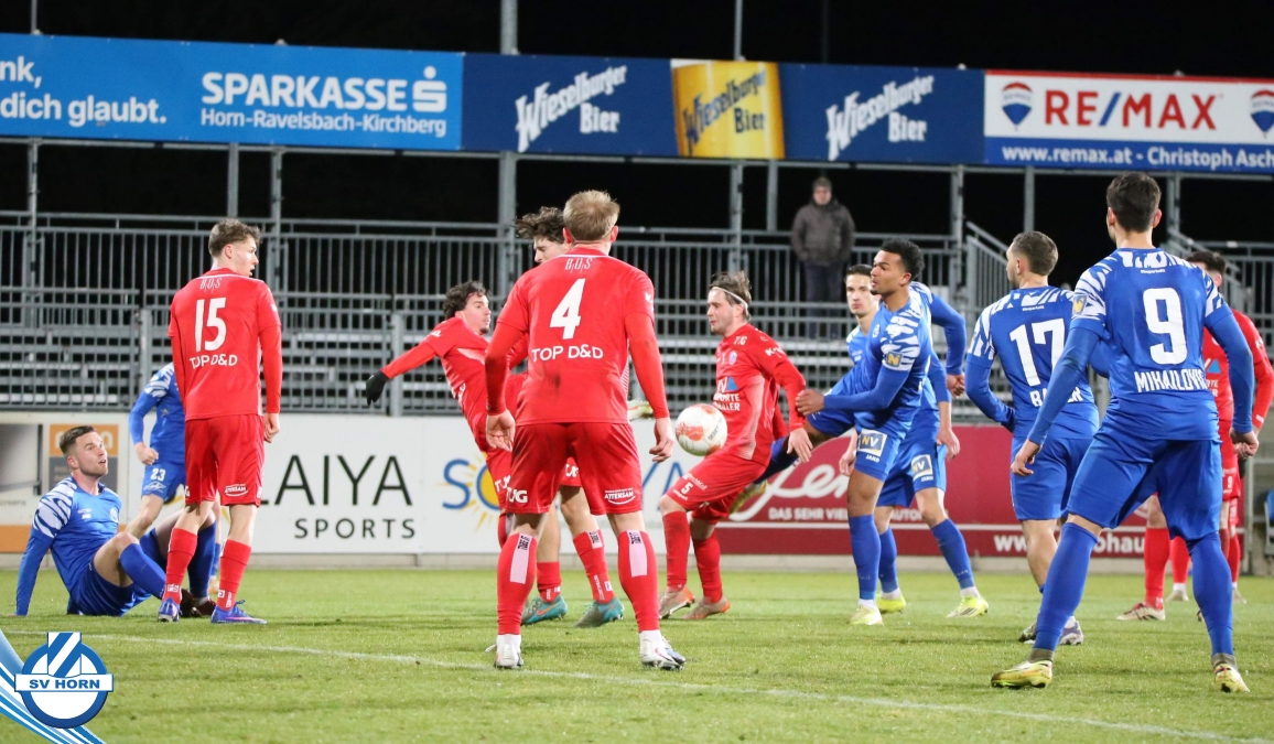 Die ersten 20 Minuten des Spieles sind geprägt von einem Abtasten, aber allmählich erhöhen wir den Druck und schließlich ist es Zoran Mihailovic, der per Kopf nach einem Freistoß von Karim Dhouib den verdienten Führungstreffer erzielt. Horn war in Halbzeit 1 klar spielbestimmend - die Gäste hatten eine einzige gefährliche Aktion, die Torhüter Matej Vajs entschärft.