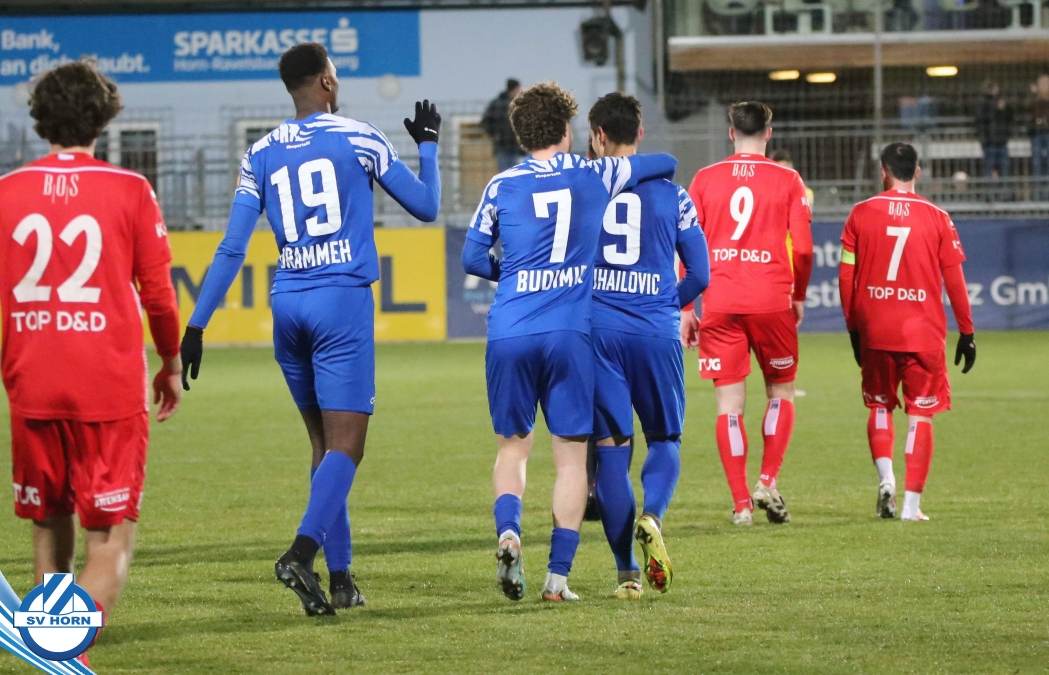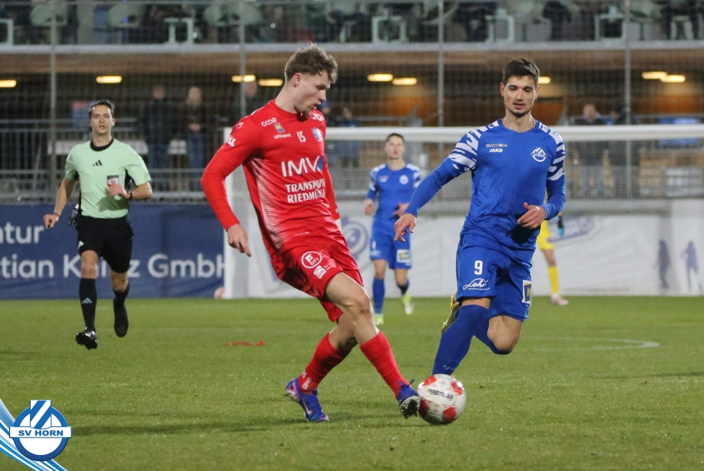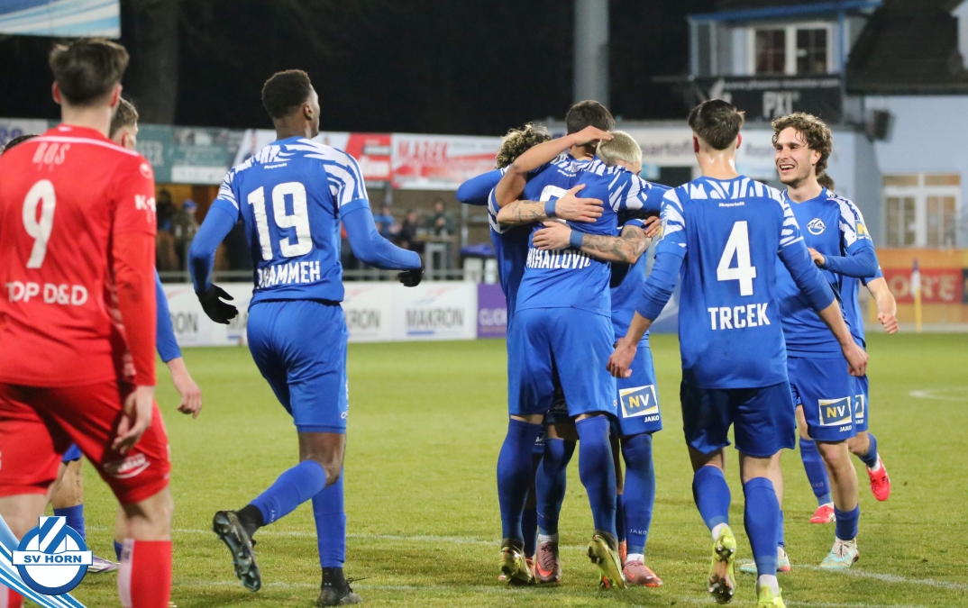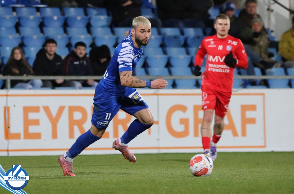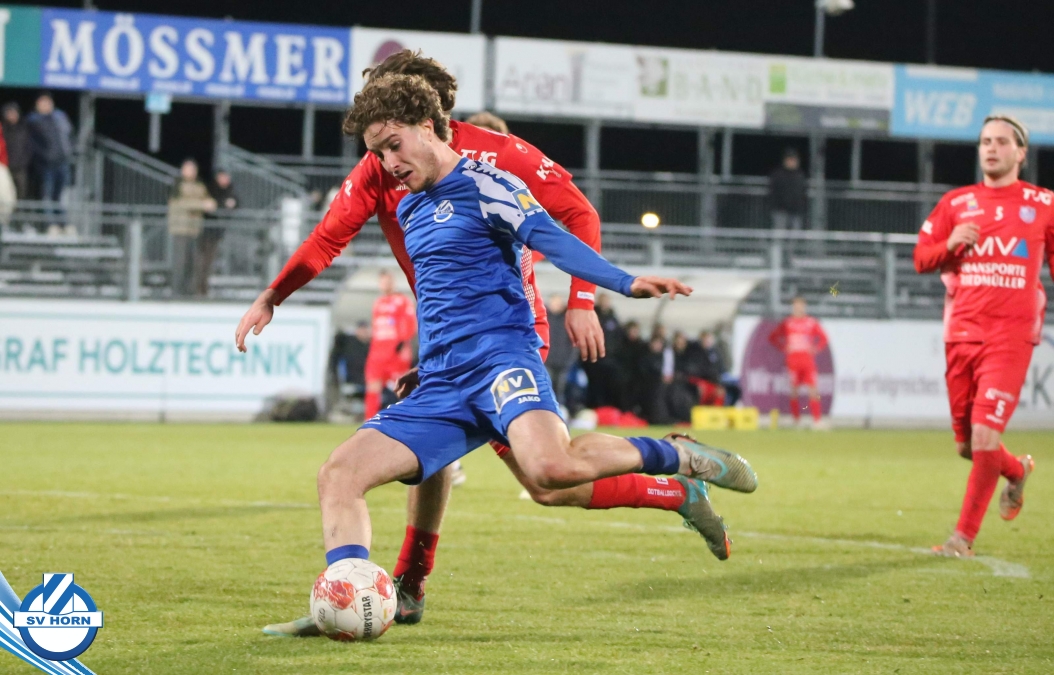 Die ersten 20 Minuten des Spieles sind geprägt von einem Abtasten, aber allmählich erhöhen wir den Druck und schließlich ist es Zoran Mihailovic, der per Kopf nach einem Freistoß von Karim Dhouib den verdienten Führungstreffer erzielt. Horn war in Halbzeit 1 klar spielbestimmend - die Gäste hatten eine einzige gefährliche Aktion, die Torhüter Matej Vajs entschärft.