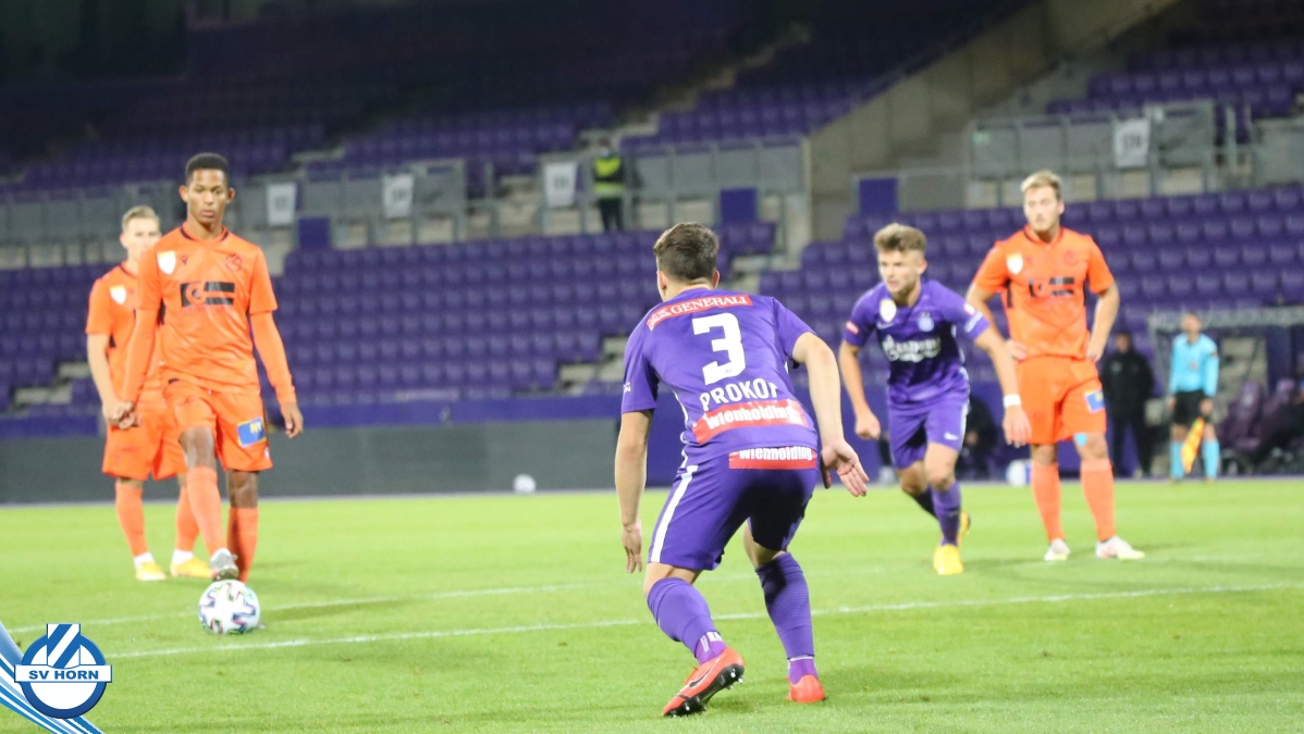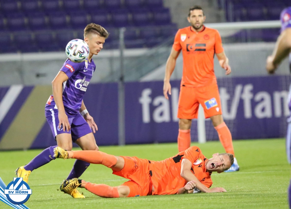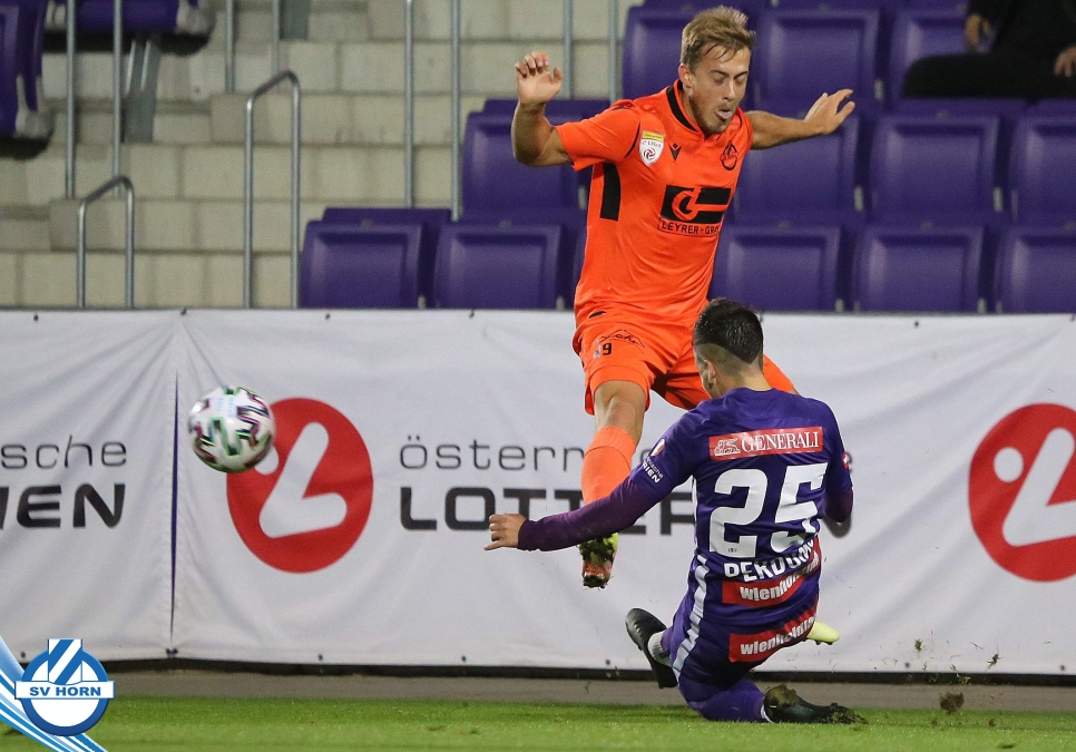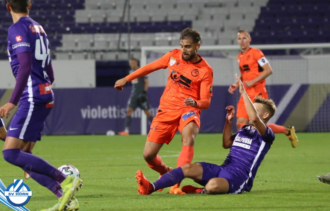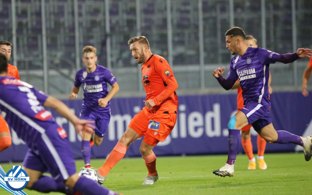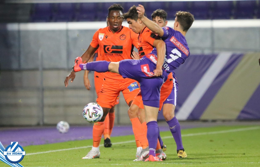 Im Auswärtsspiel in Favoriten gegen die Young Violets Austria Wien hat der SV Horn die ersten Chancen durch Stephan Schimandl, kann diese aber nicht nutzen und muss dann in der Nachspielzeit der ersten Hälfte den Führungstreffer nach einem Fehler in der Defensive hinnehmen.