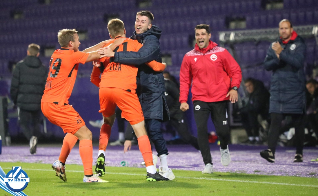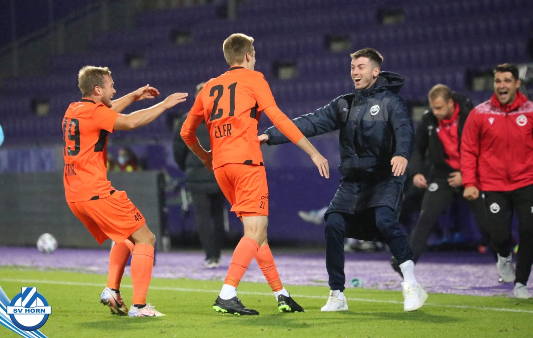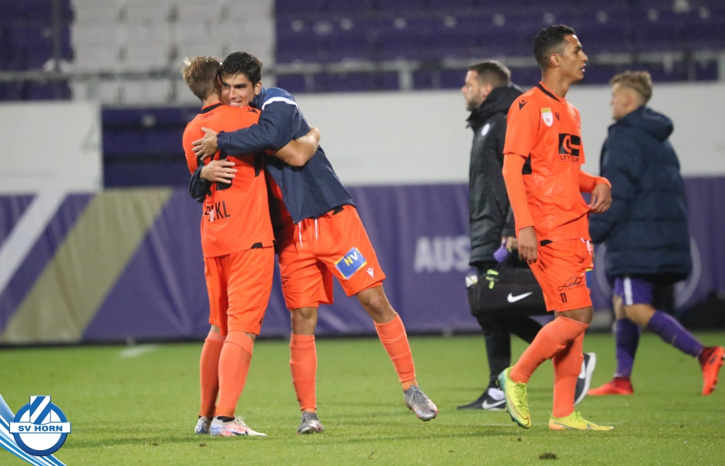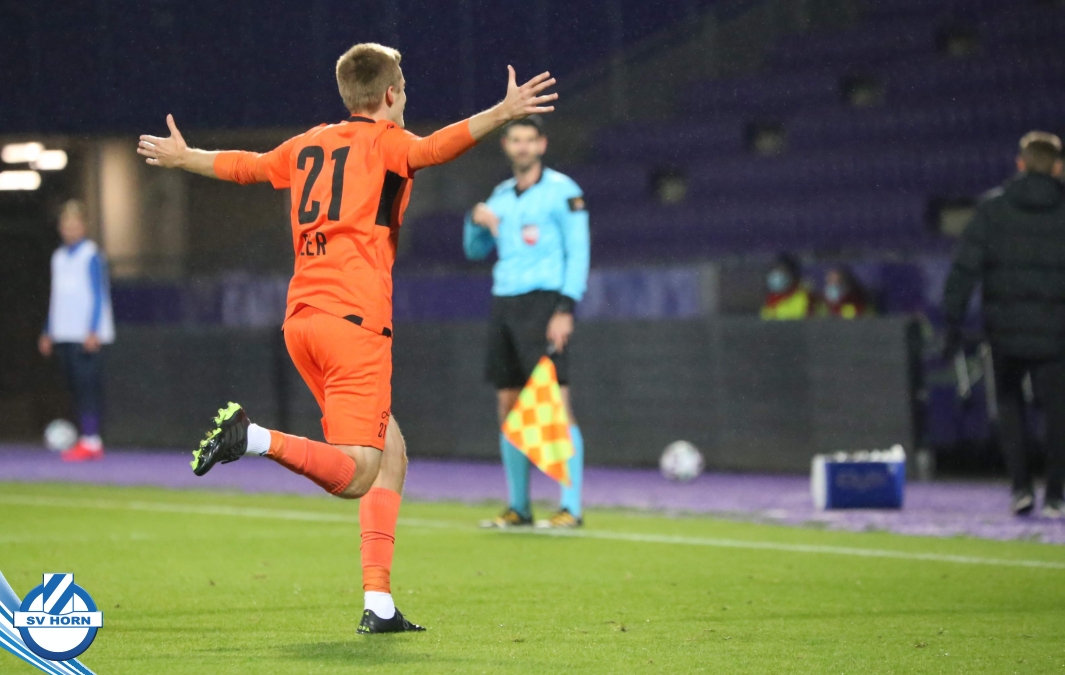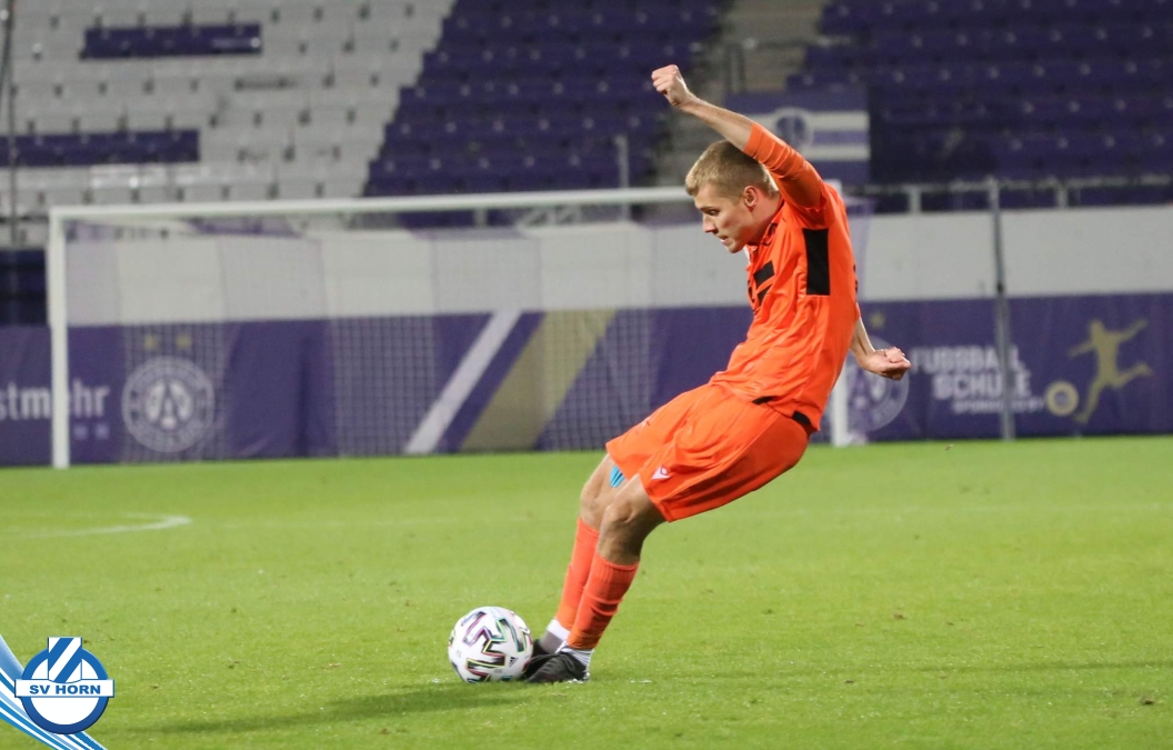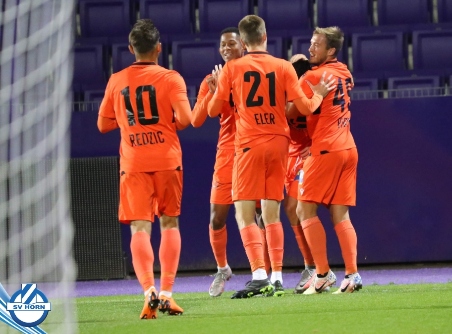 Wenige später erzielt der ebenfalls eingewechselte Patrik Eler per unhaltbaren Freistoßkracher unter die Latte den Führungstreffer für Horn. Der SV Horn kommt noch zu einigen weiteren Gelegenheiten gegen die dezimierten Wiener, aber spielt diese nicht präzise genug fertig und so muss man nach einer turbulenten Schlußphase, in der die Violetten immer wieder gefährlich mit weiten Bällen werden, bis zum Ende zittern, ehe der verdiente Auswärtssieg eingefahren werden kann!