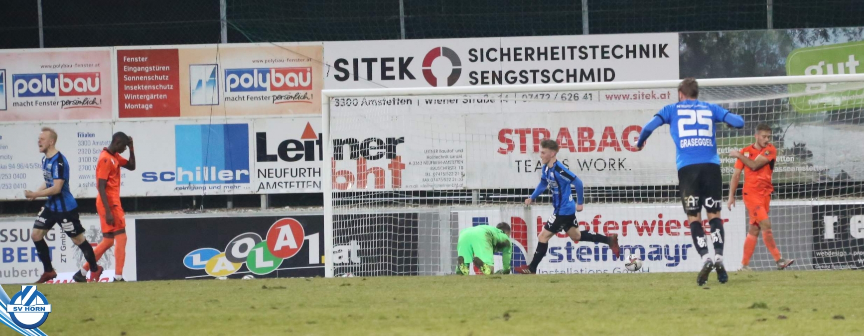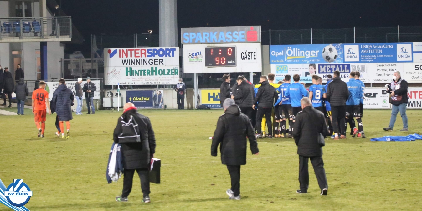 Als alle schon mit einem torlosen Remis rechneten, schlug der SKU Amstetten doch noch zu! Nach einer Ablage vom ehemaligen Admira-Stürmer Ouedraogo schlenzte SKU-Kapitän Wurm den Ball in der 88. Minute unhaltbar ins lange Eck! Die verzweifelten Angriffsbemühungen des SV Horn blieben danach wirkungslos und so setzte es zum Frühjahrs-Auftakt eine knappe und sehr bittere 0:1-Niederlage in Amstetten!