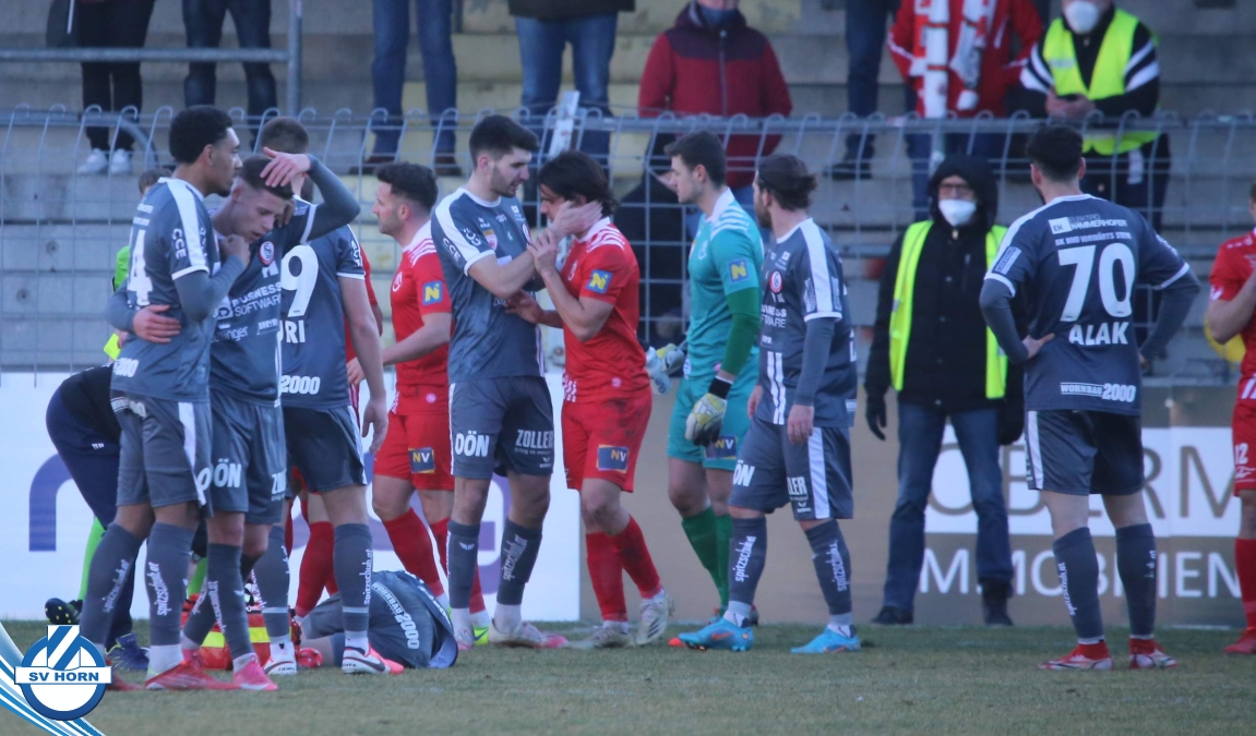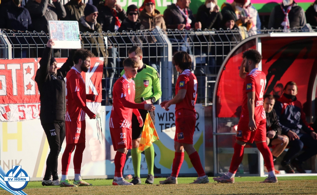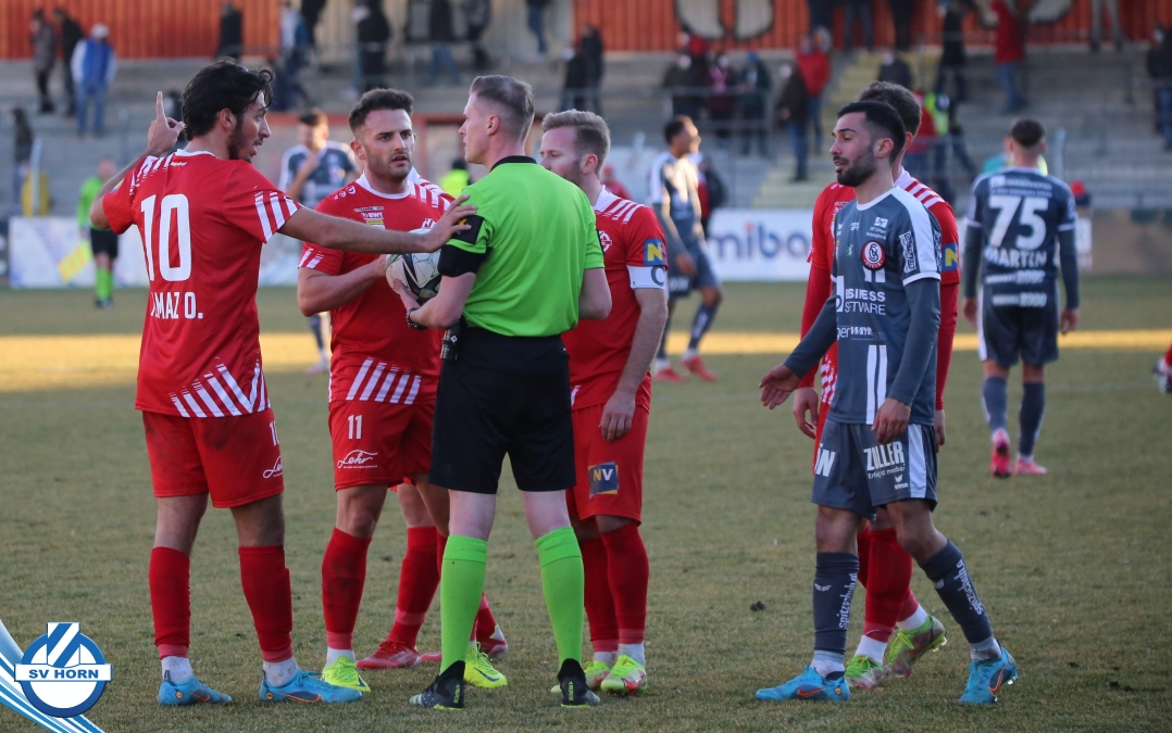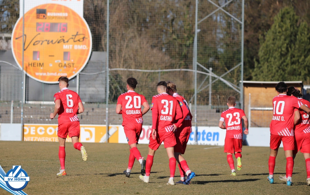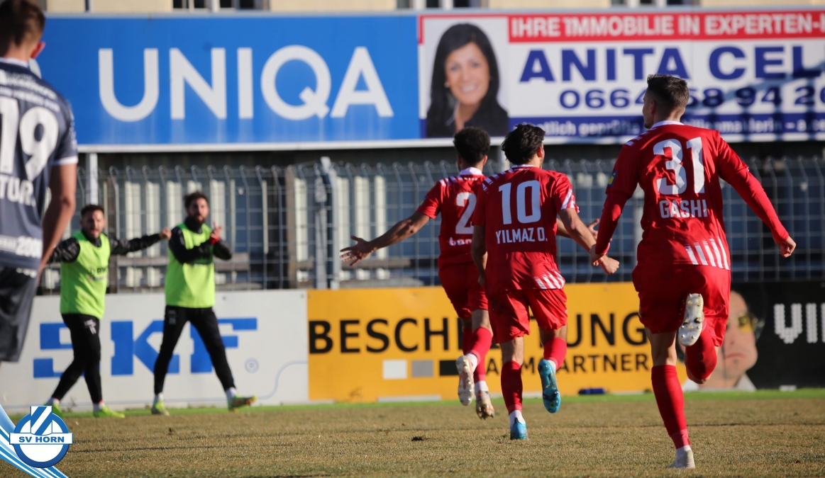 Aufstellung SV Horn: Kronsteiner, Bauer, Gobara (71. Marakis), Sturing, Biek, Schelle (60. Schmutz), Cosgun (80. Ayyildiz), Neumayer, Yilmaz O., Toro (80. Macher), Gashi (71. Majnovics)