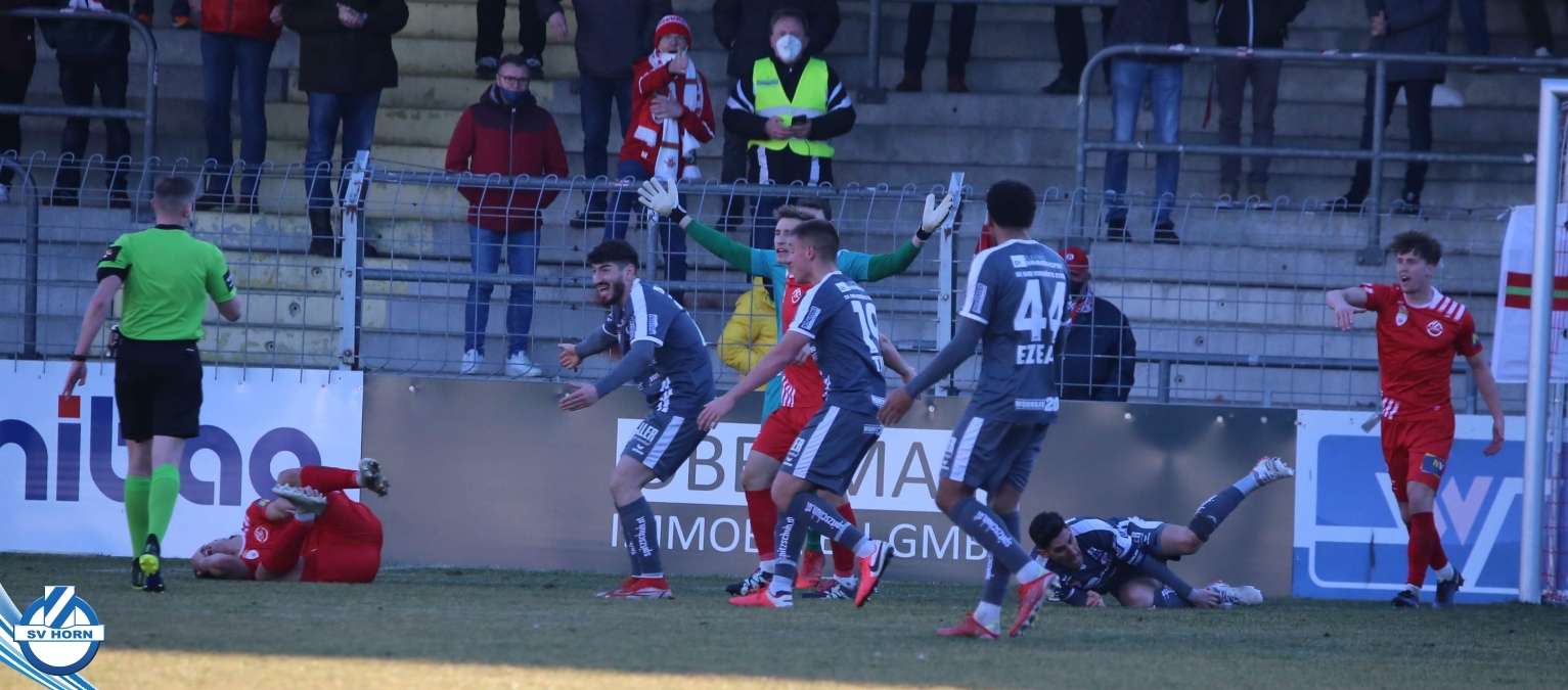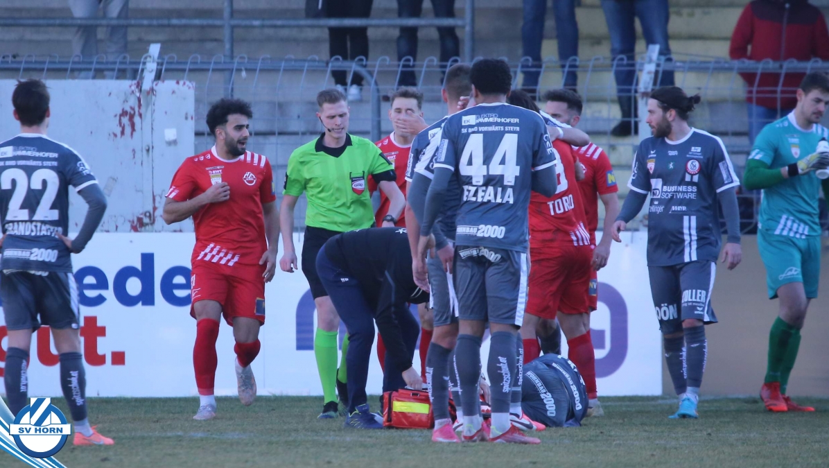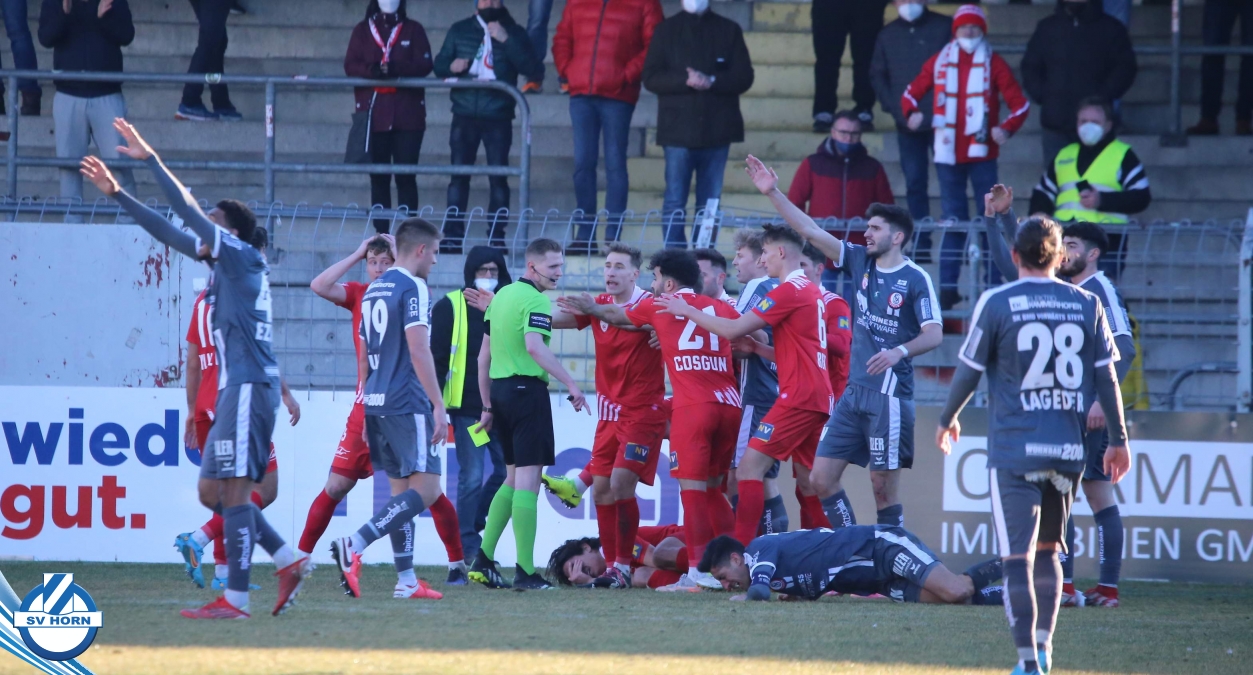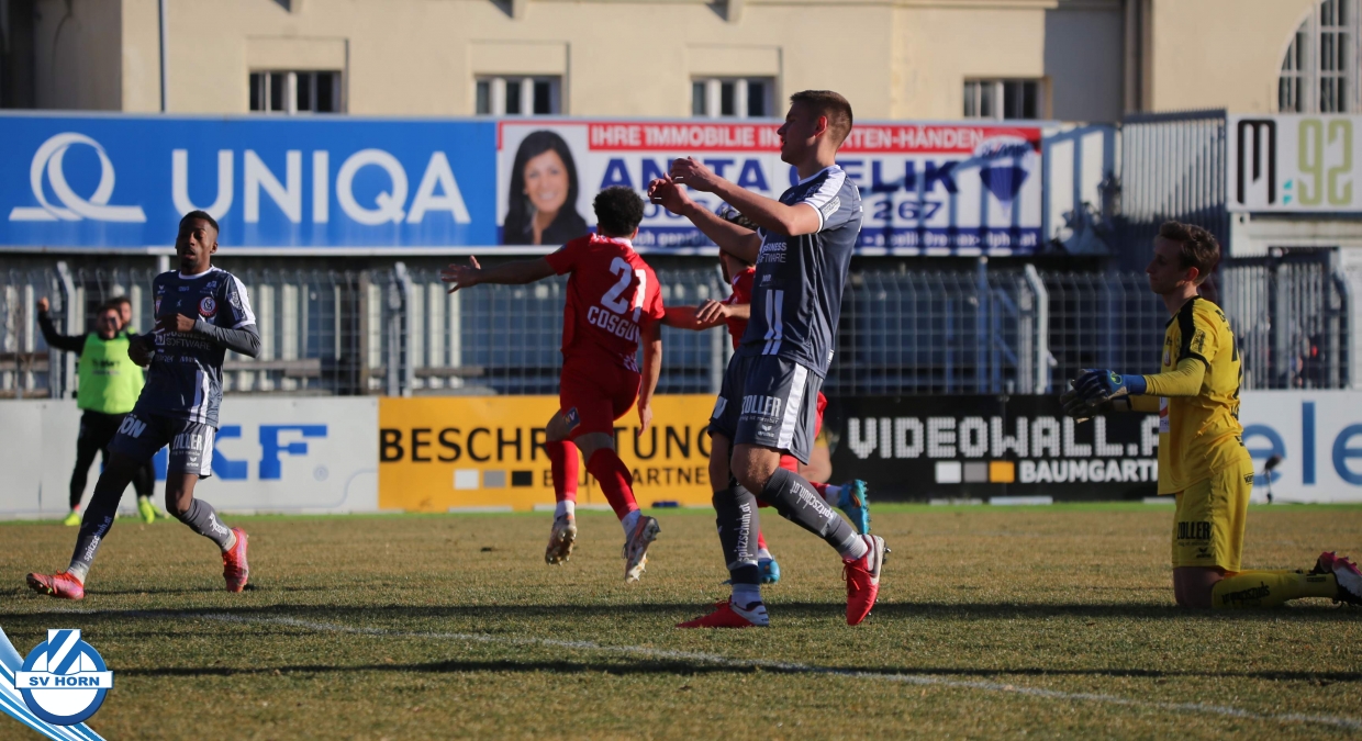 Aufstellung SV Horn: Kronsteiner, Bauer, Gobara (71. Marakis), Sturing, Biek, Schelle (60. Schmutz), Cosgun (80. Ayyildiz), Neumayer, Yilmaz O., Toro (80. Macher), Gashi (71. Majnovics)