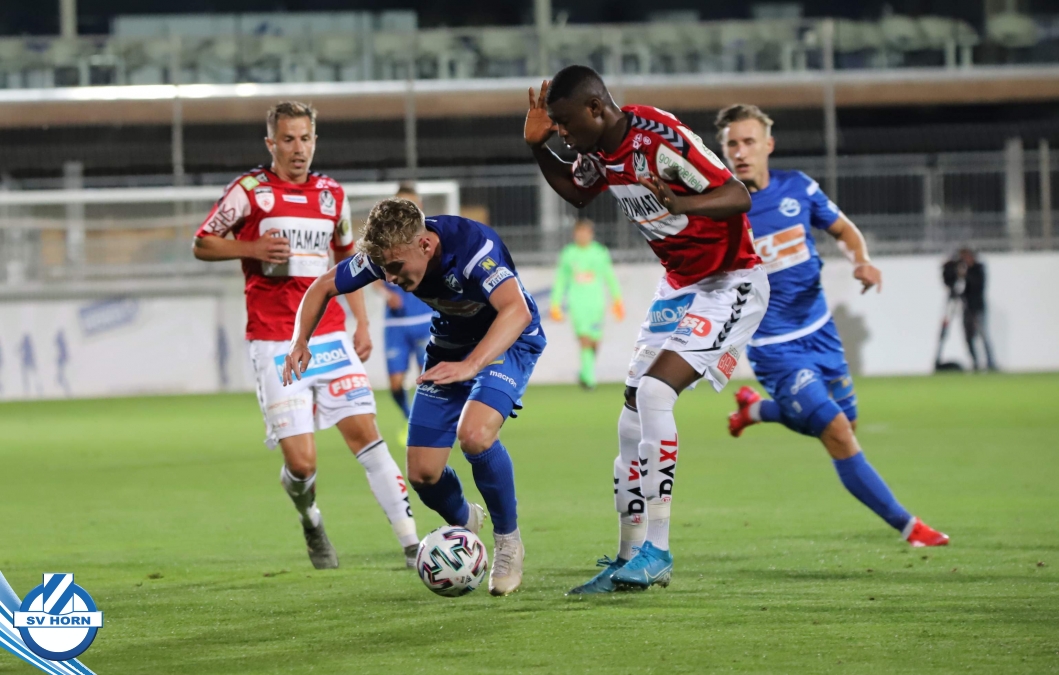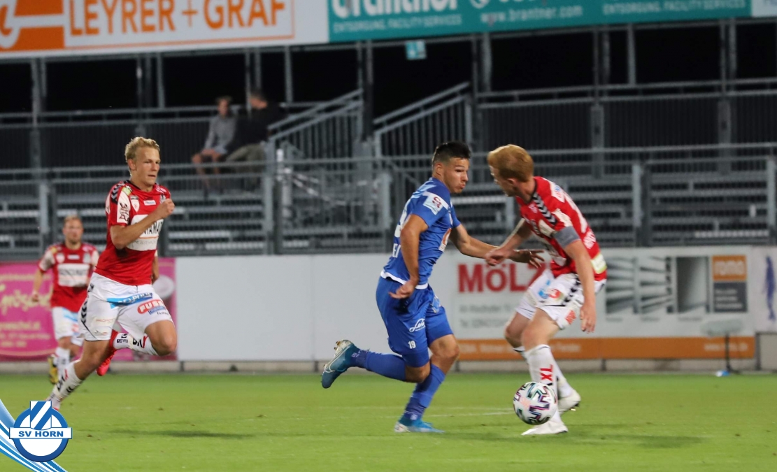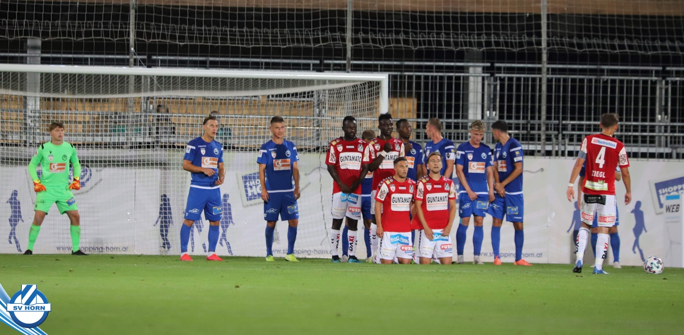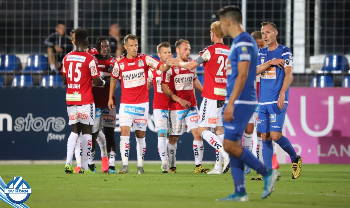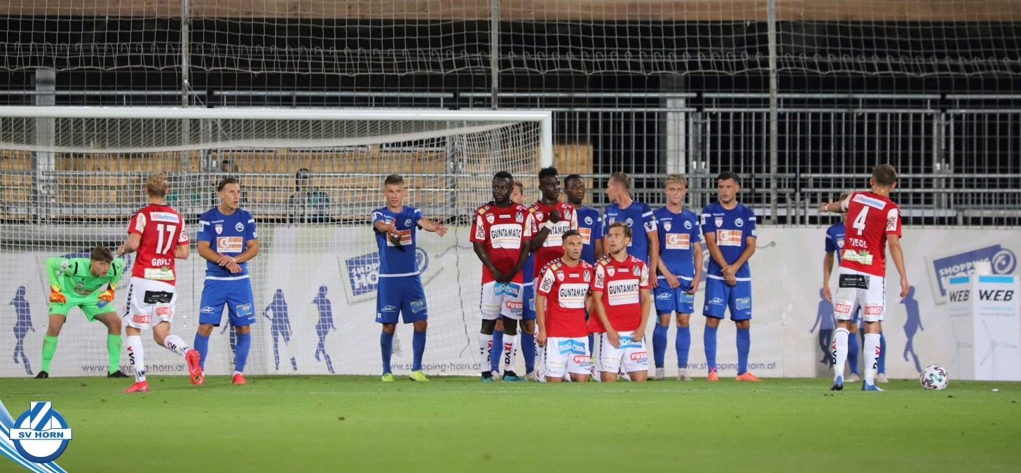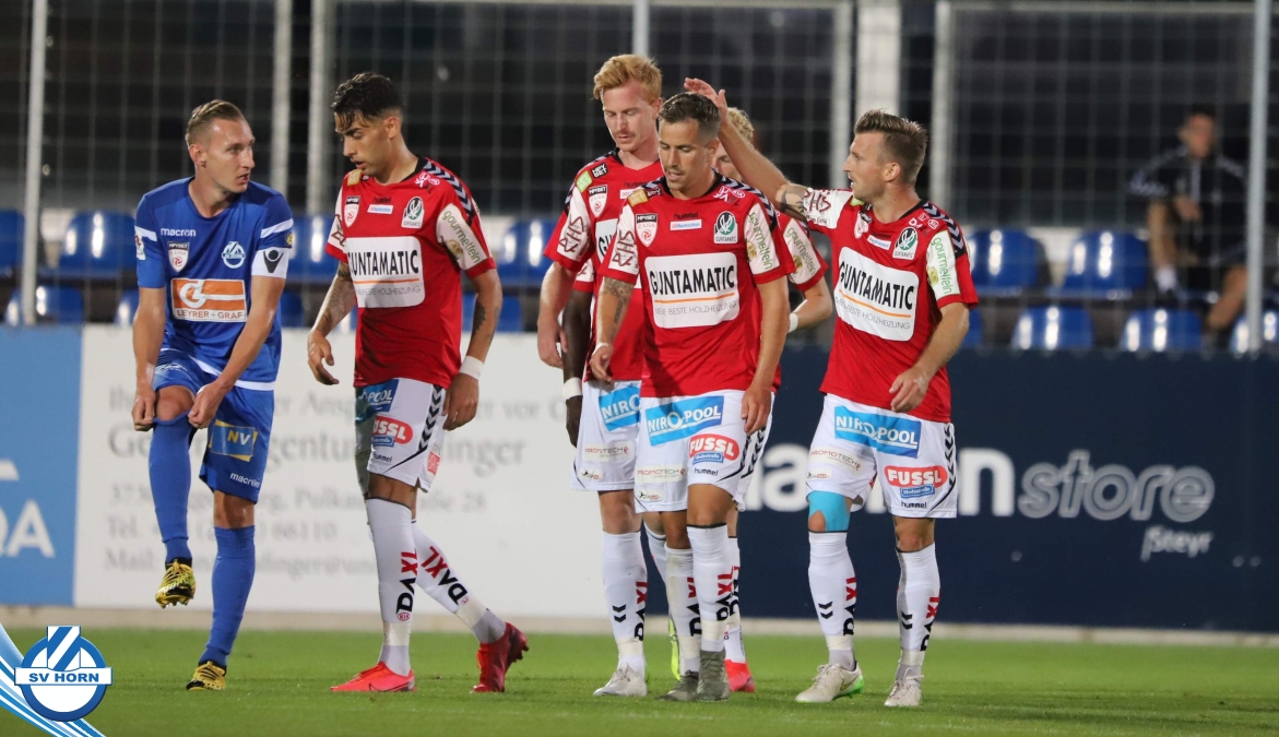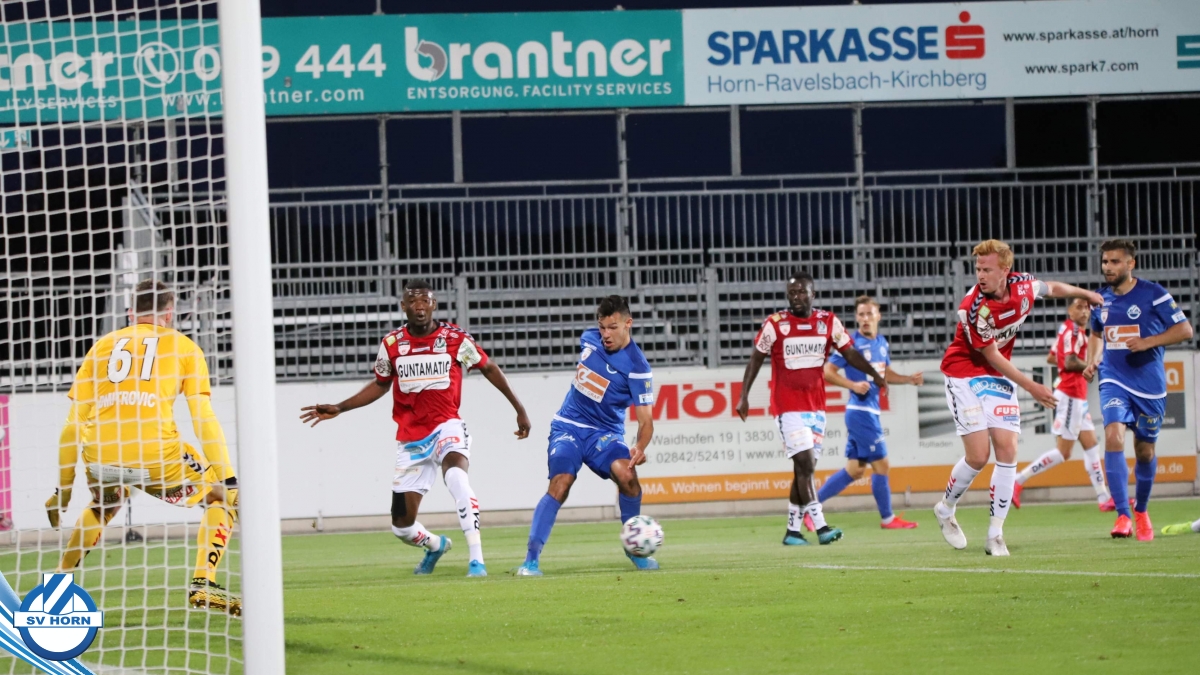 Horn spielt mit Pfaller; Bauer, Malicsek, Siegl und Pirkl in der Verteidigung, Kapitän Sittsam und Neumayer im defensiven sowie Benjamin Redzic im zentralen Mittelfeld, und den Offensivkräften Michael Cheukoua, Marco Hausjell und Patrick de Souza
