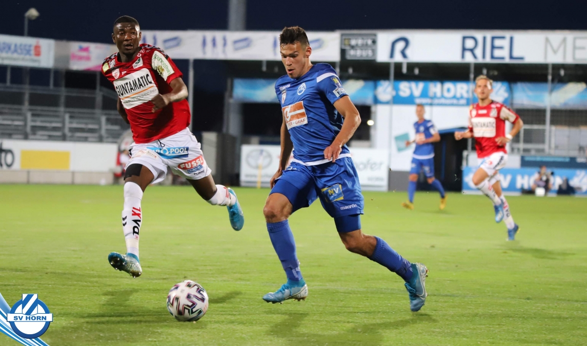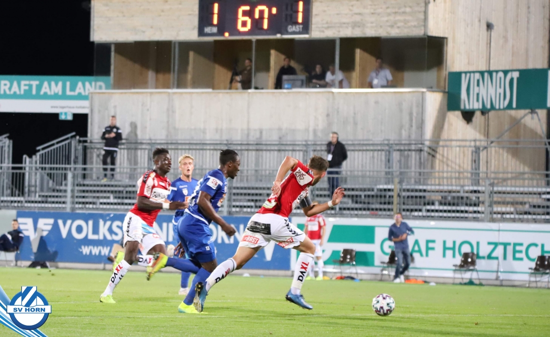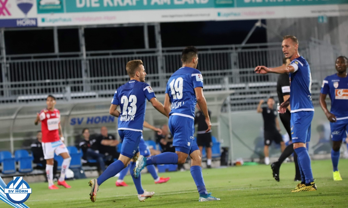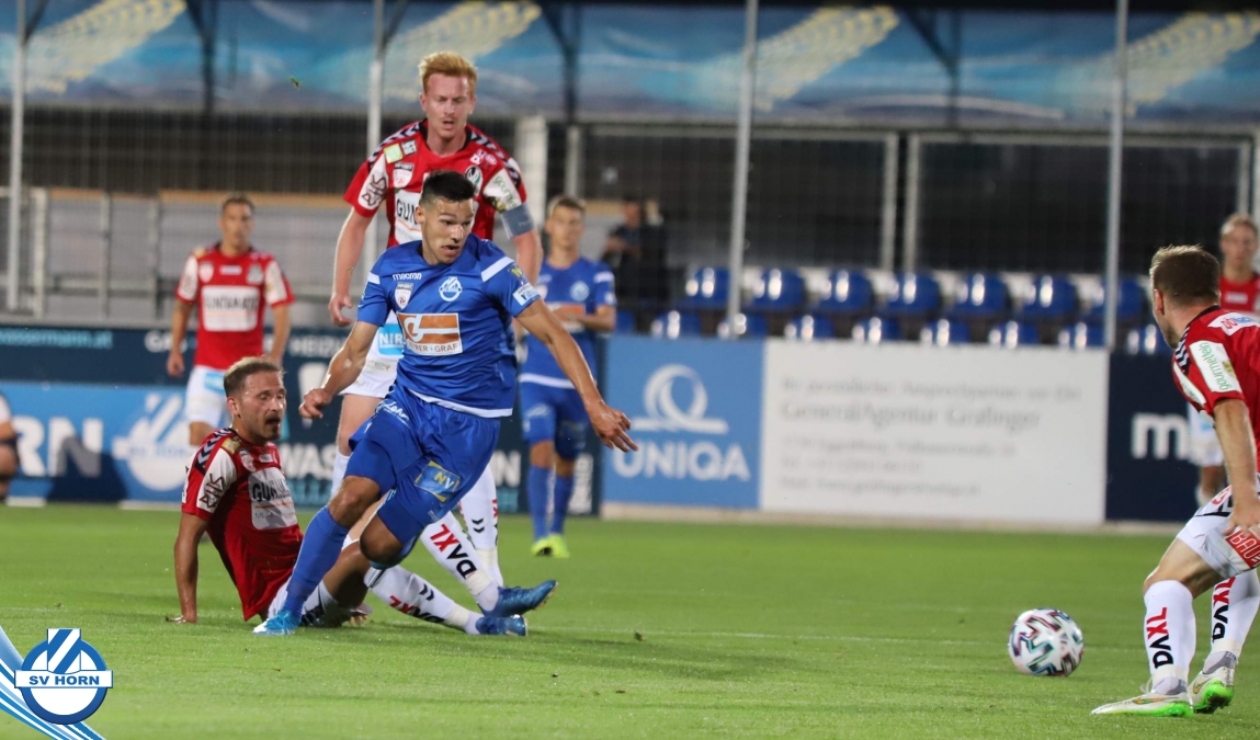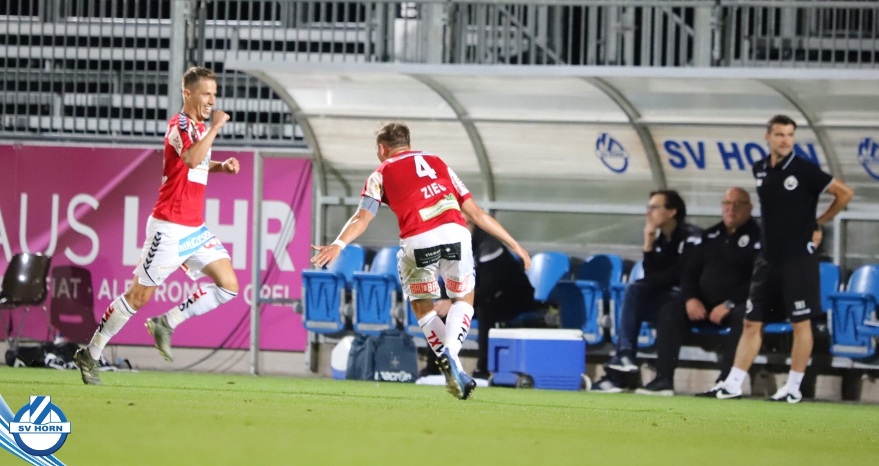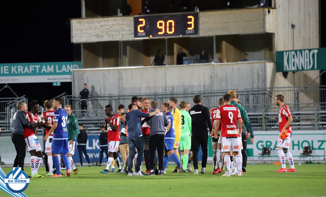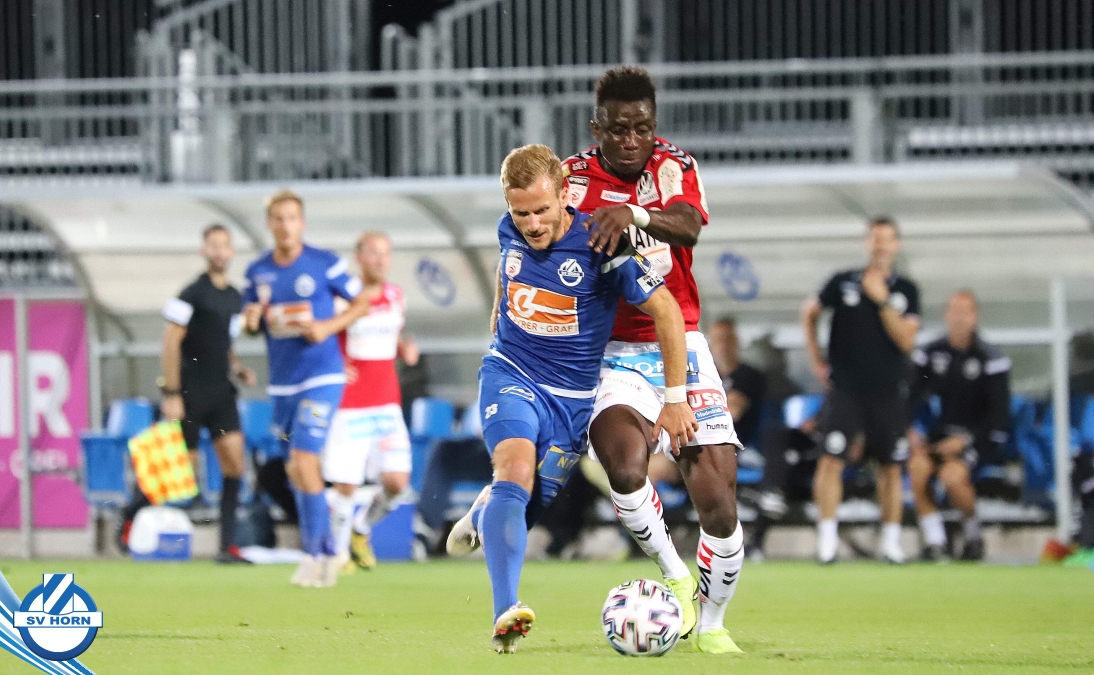 Horn spielt mit Pfaller; Bauer, Malicsek, Siegl und Pirkl in der Verteidigung, Kapitän Sittsam und Neumayer im defensiven sowie Benjamin Redzic im zentralen Mittelfeld, und den Offensivkräften Michael Cheukoua, Marco Hausjell und Patrick de Souza