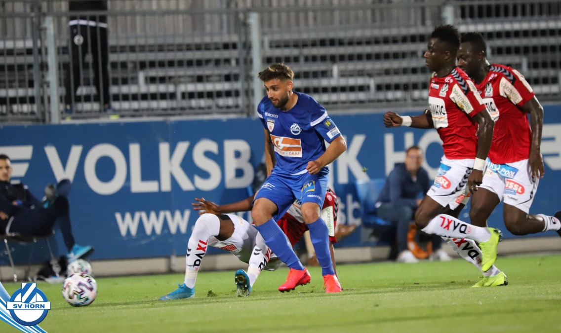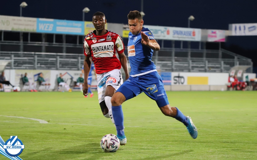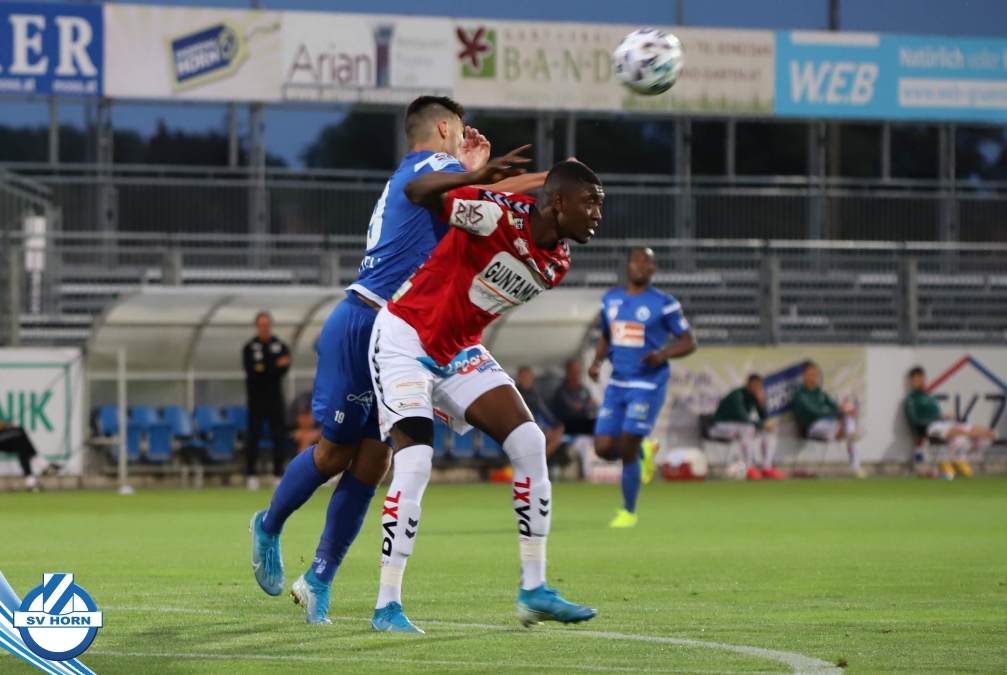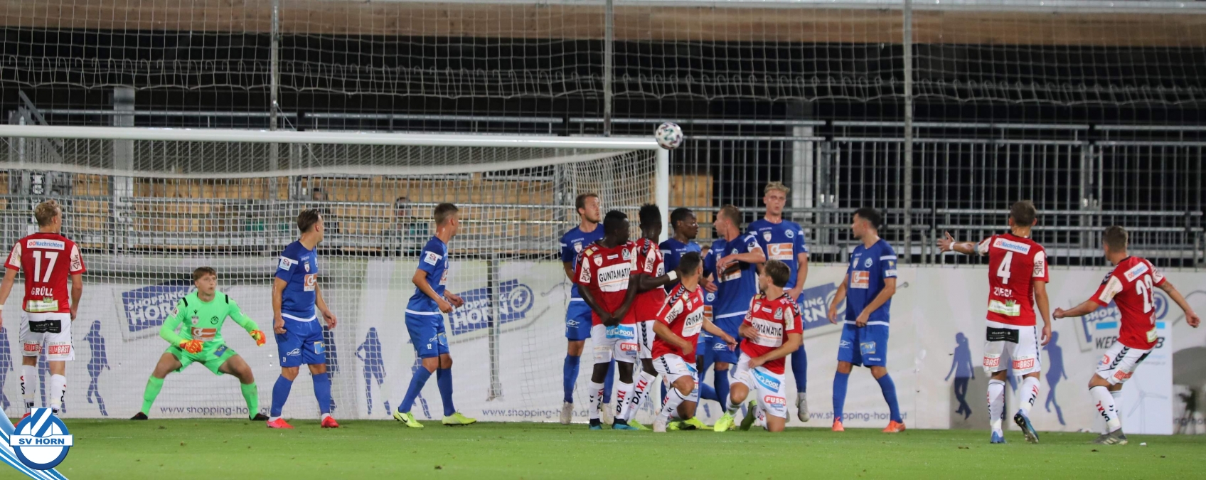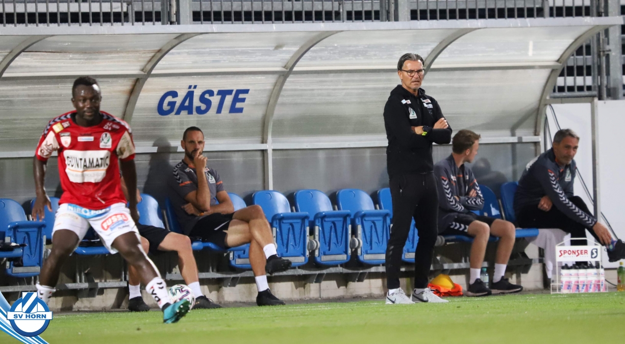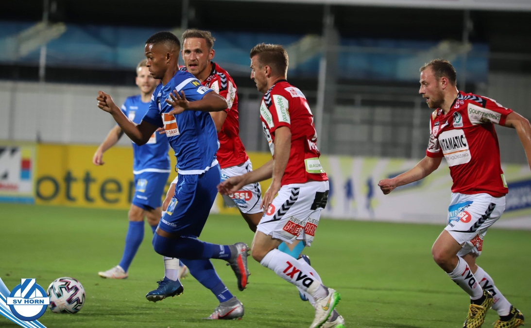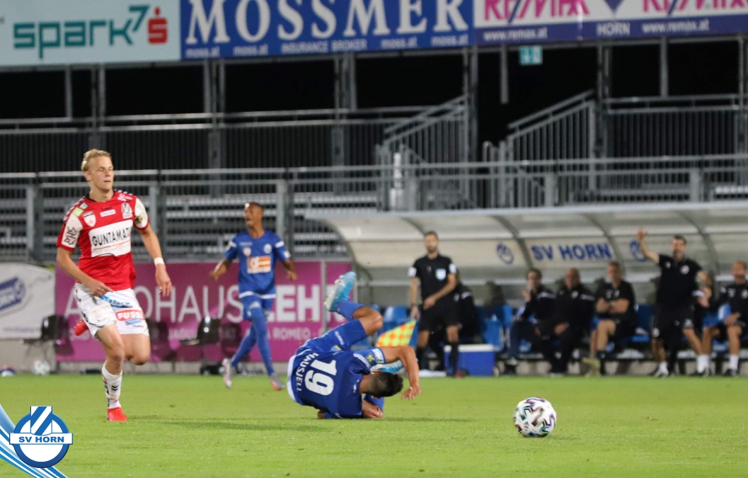 Horn spielt mit Pfaller; Bauer, Malicsek, Siegl und Pirkl in der Verteidigung, Kapitän Sittsam und Neumayer im defensiven sowie Benjamin Redzic im zentralen Mittelfeld, und den Offensivkräften Michael Cheukoua, Marco Hausjell und Patrick de Souza