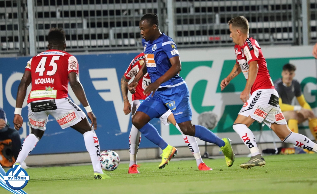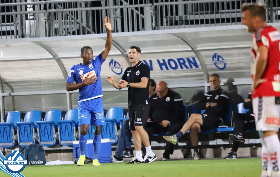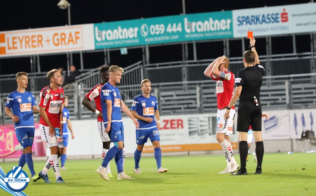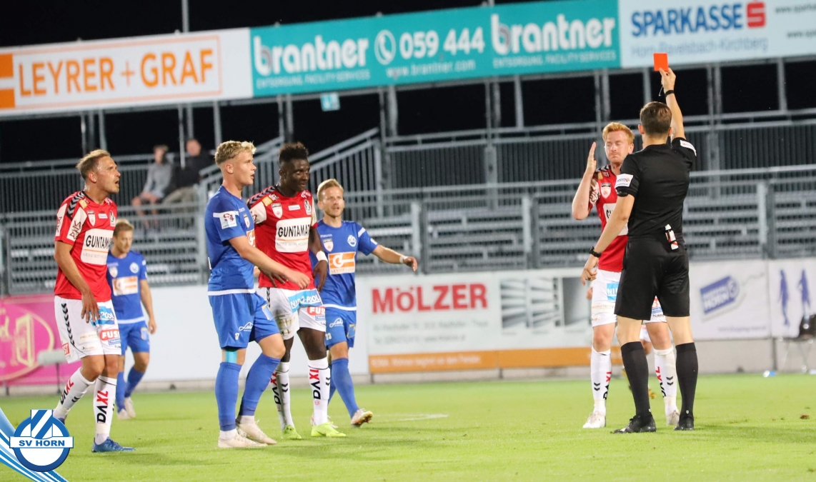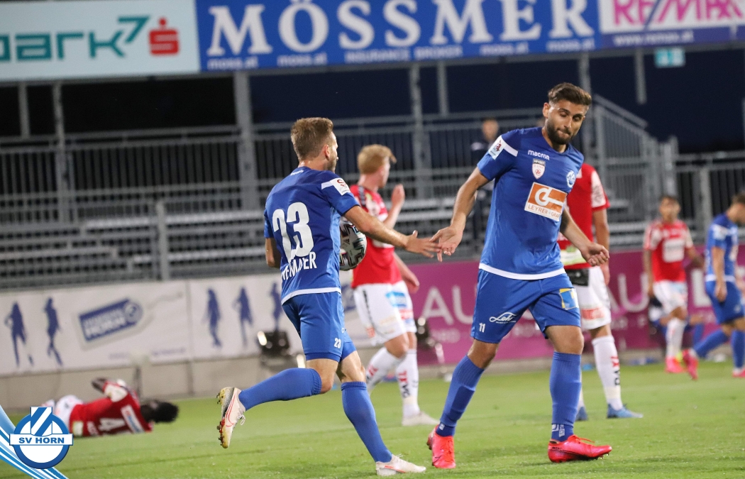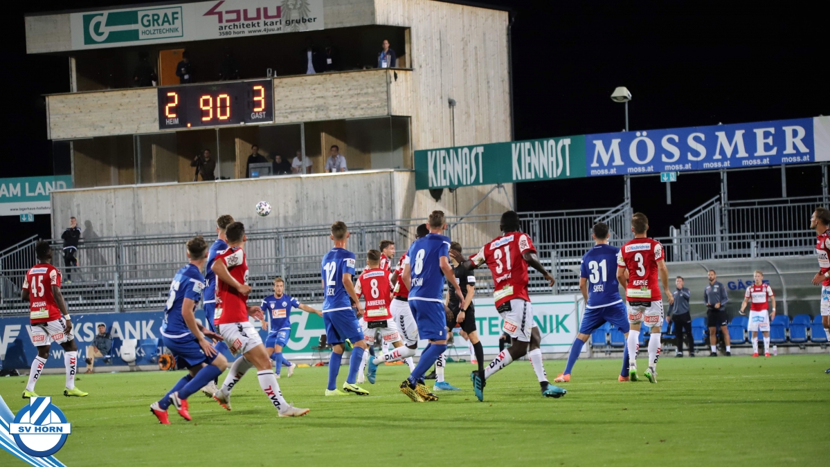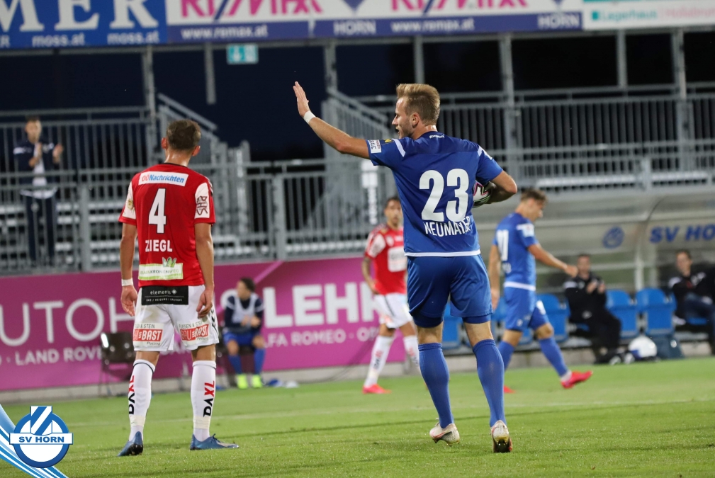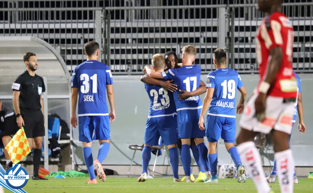 Horn spielt mit Pfaller; Bauer, Malicsek, Siegl und Pirkl in der Verteidigung, Kapitän Sittsam und Neumayer im defensiven sowie Benjamin Redzic im zentralen Mittelfeld, und den Offensivkräften Michael Cheukoua, Marco Hausjell und Patrick de Souza