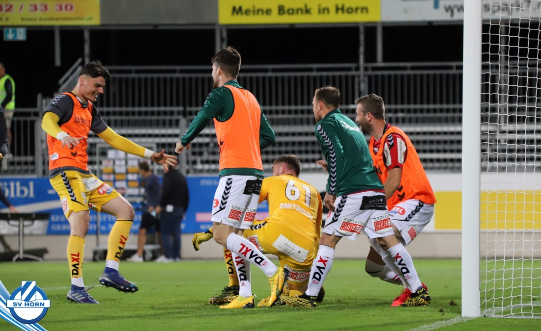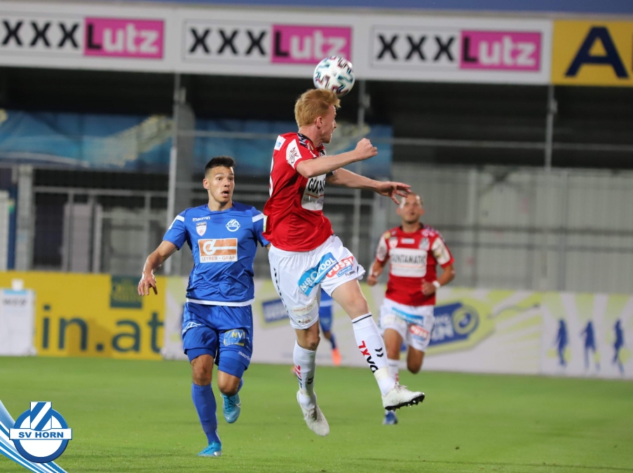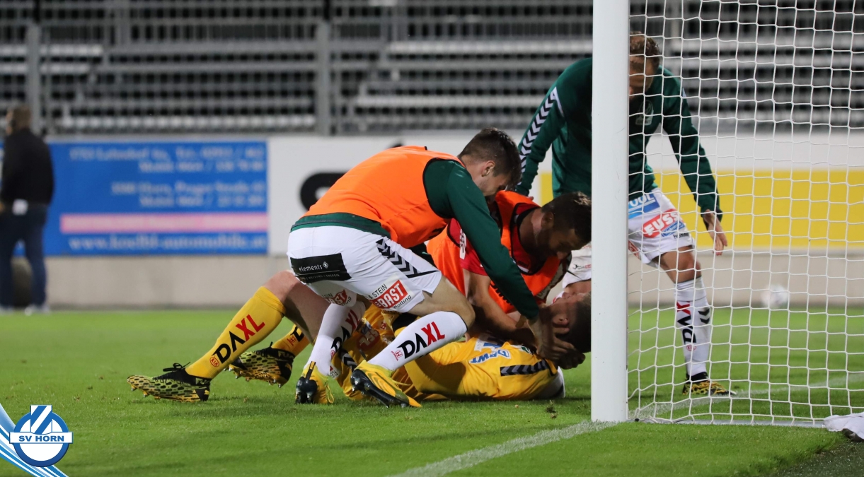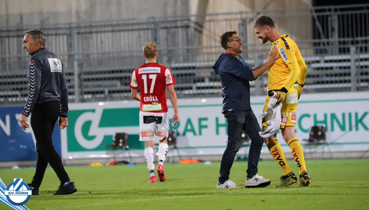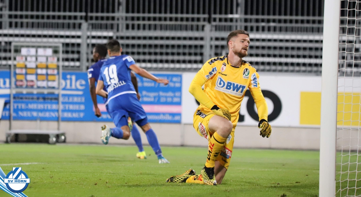 Ried jubelt über einen knappen Sieg in Horn und über die Tabellenführung. Der SV Horn hat die Partie zwar knapp verloren aber den Tabelleführer voll gefordert und der Rieder Torhüter hat letztlich für die Oberösterreicher einge male schließlich in der Schlußphase den Sieg festgehalten.