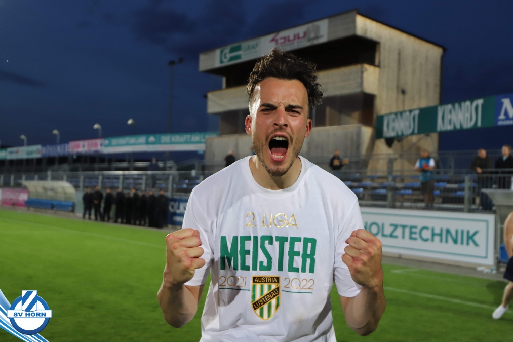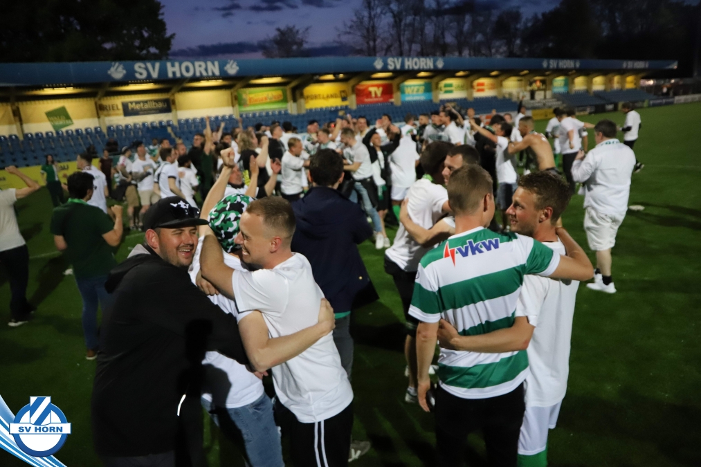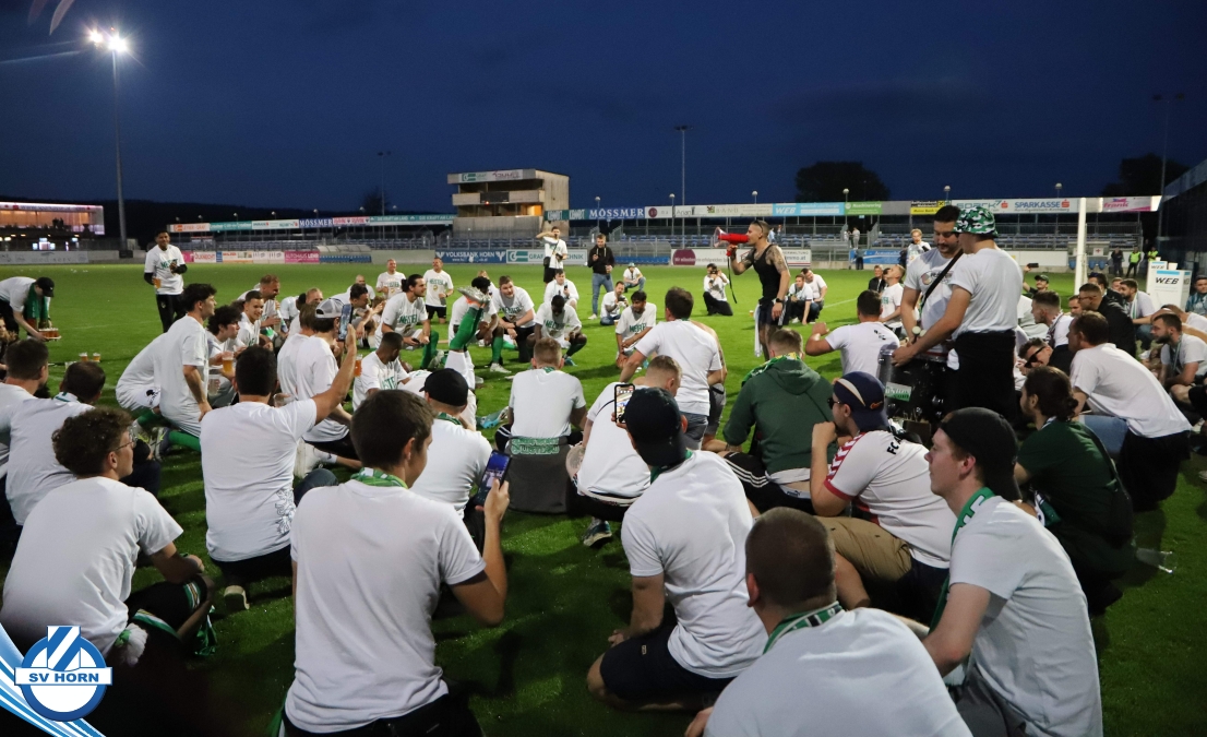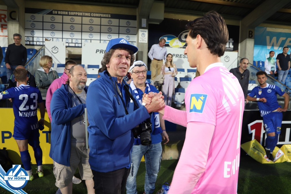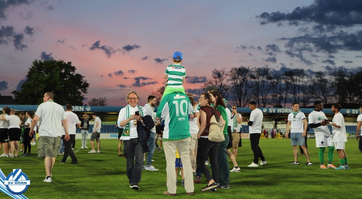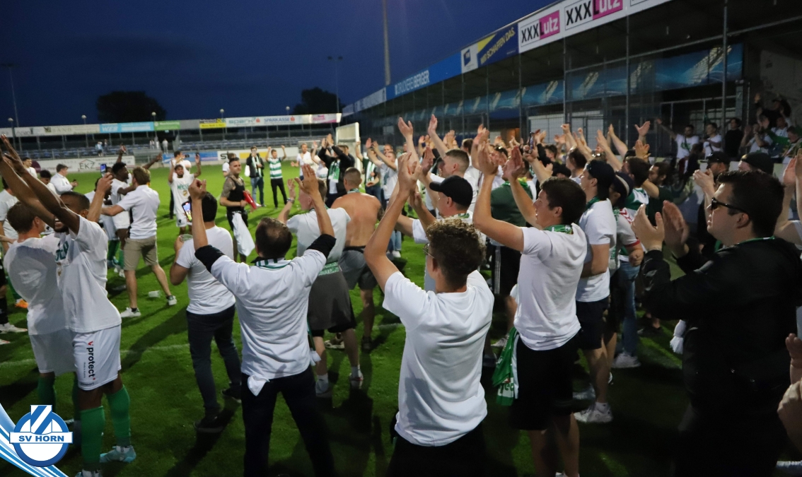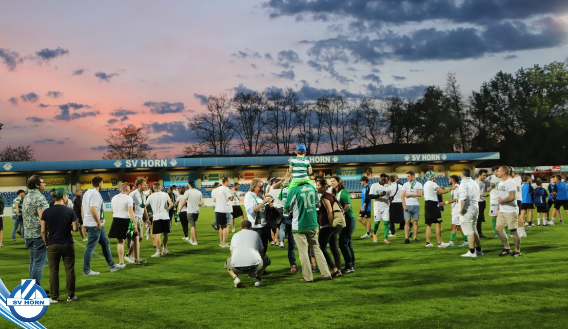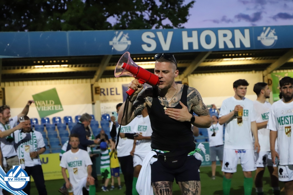 Nach Wiederanpfiff waren jedoch die Waldviertler am Drücker und kamen schnell zum Ausgleich. Burak Yilmaz versenkte einen Freistoß traumhaft und ließ die Fans jubeln. Plötzlich schwamm die Defensive des designierten Meisters und die Gastgeber hatten Chancen, um das Spiel komplett zu drehen. Jedoch scheiterten sowohl Okan Yilmaz als auch Albin Gashi am Austria-Keeper Schierl. Just in dieser starke Phase der Horner gingen die Lustenauer erneut in Führung. Der eingewechselte Teixeira setzte sich links gut durch und sein Stanglpass prallte vom Knie Gobaras ins Tor – zum zweiten Mal durften die Gäste nach einem Eigentor jubeln. In der Folge schwanden bei den Gastgebern zusehends die Kräfte und so gab es in der Schlussviertelstunde noch die eine oder andere Großchance für Austria Lustenau, die jedoch allesamt vergeben wurden. Weil auch die einzige nennenswerte Möglichkeit des SV Horn durch Albin Gashi vereitelt wurde, blieb es am Ende beim knappen Sieg der Vorarlberger. Durch die Niederlage des FAC in Lafnitz stand Austria Lustenau nach Schlusspfiff somit als Meister und Aufsteiger in die Bundesliga fest.