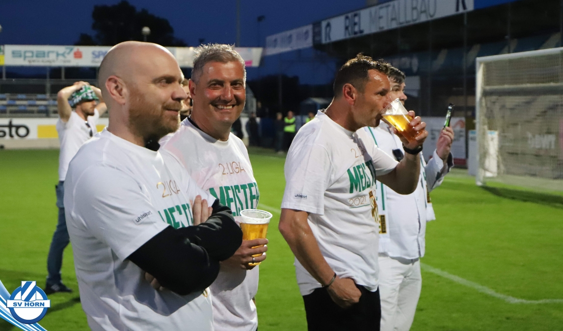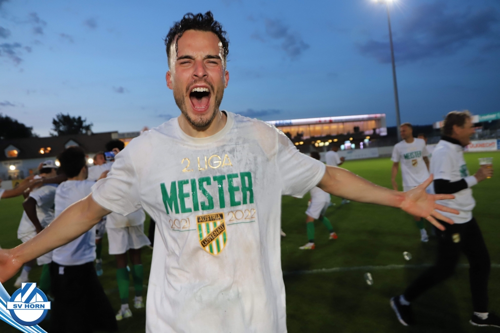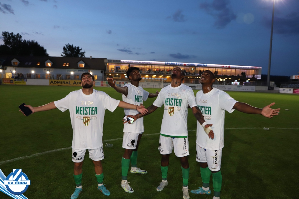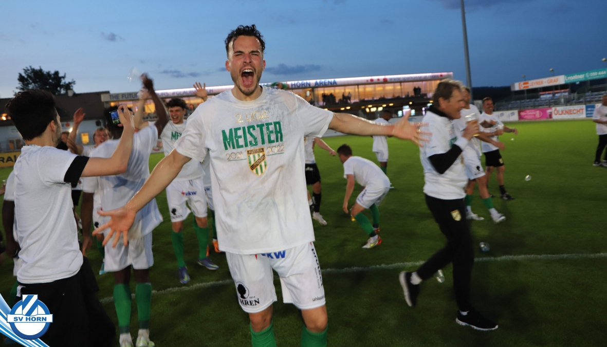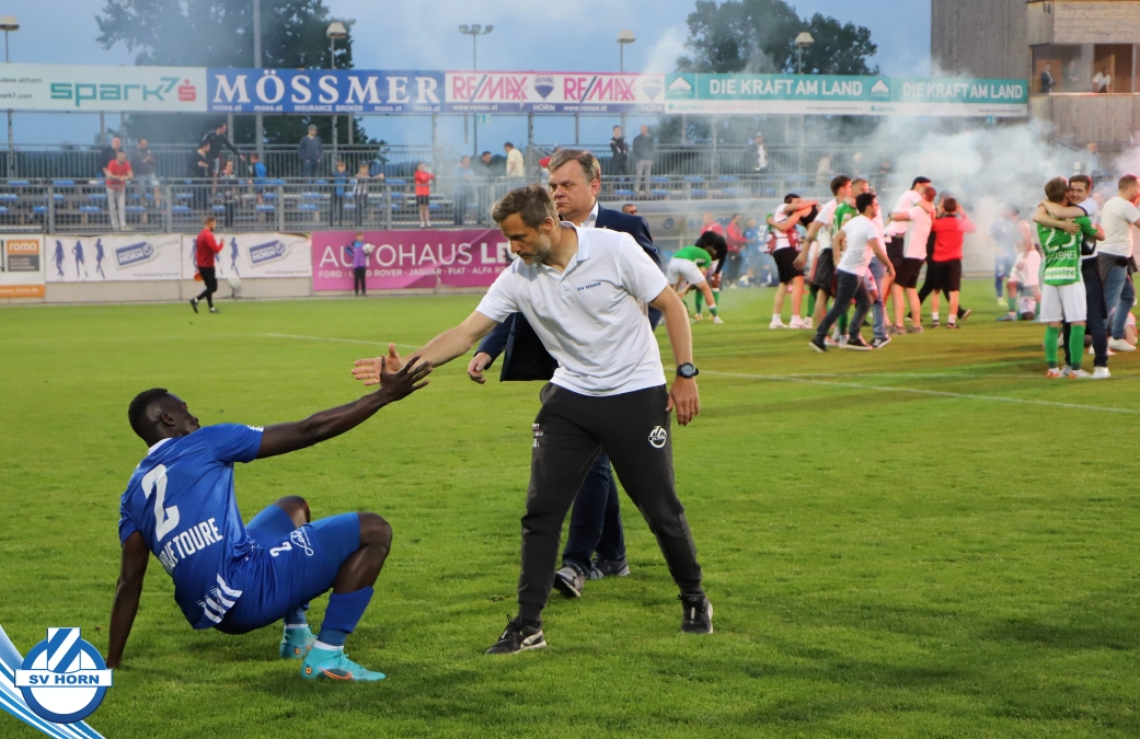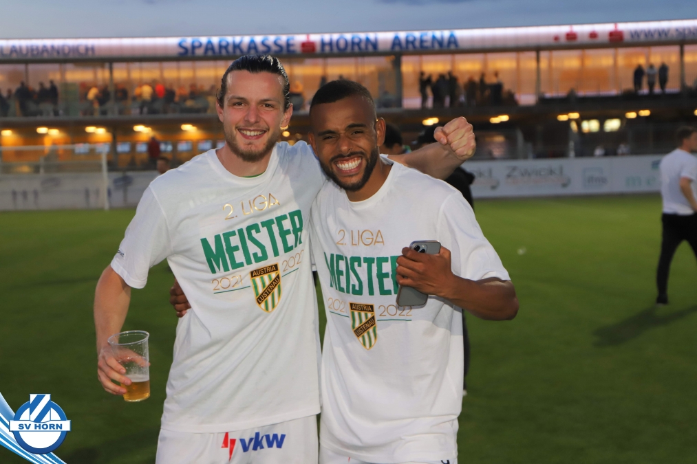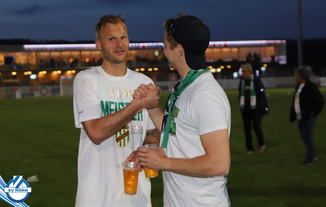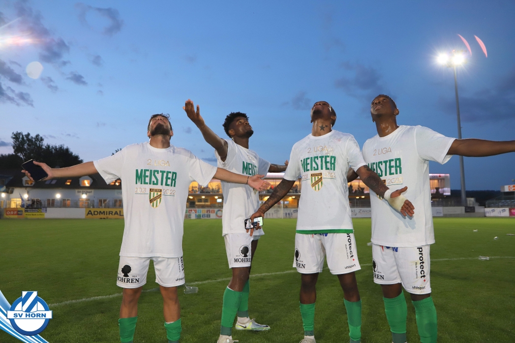 Nach Wiederanpfiff waren jedoch die Waldviertler am Drücker und kamen schnell zum Ausgleich. Burak Yilmaz versenkte einen Freistoß traumhaft und ließ die Fans jubeln. Plötzlich schwamm die Defensive des designierten Meisters und die Gastgeber hatten Chancen, um das Spiel komplett zu drehen. Jedoch scheiterten sowohl Okan Yilmaz als auch Albin Gashi am Austria-Keeper Schierl. Just in dieser starke Phase der Horner gingen die Lustenauer erneut in Führung. Der eingewechselte Teixeira setzte sich links gut durch und sein Stanglpass prallte vom Knie Gobaras ins Tor – zum zweiten Mal durften die Gäste nach einem Eigentor jubeln. In der Folge schwanden bei den Gastgebern zusehends die Kräfte und so gab es in der Schlussviertelstunde noch die eine oder andere Großchance für Austria Lustenau, die jedoch allesamt vergeben wurden. Weil auch die einzige nennenswerte Möglichkeit des SV Horn durch Albin Gashi vereitelt wurde, blieb es am Ende beim knappen Sieg der Vorarlberger. Durch die Niederlage des FAC in Lafnitz stand Austria Lustenau nach Schlusspfiff somit als Meister und Aufsteiger in die Bundesliga fest.