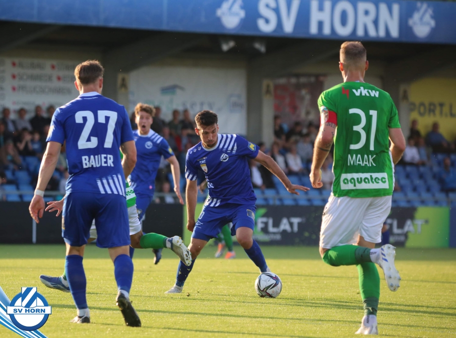 Aufstellung SV Horn: Ehmann, Bauer ,Klar, Neumayer, Majnovics, Sturing, B. Yilmaz (87. Toure), Gobara, O. Yilmaz (87. Petuely), Macher (79. Toro), Gashi (87. Ayyildiz)