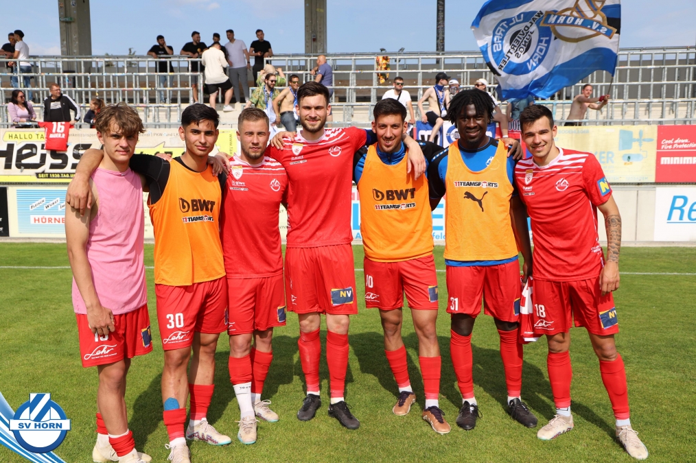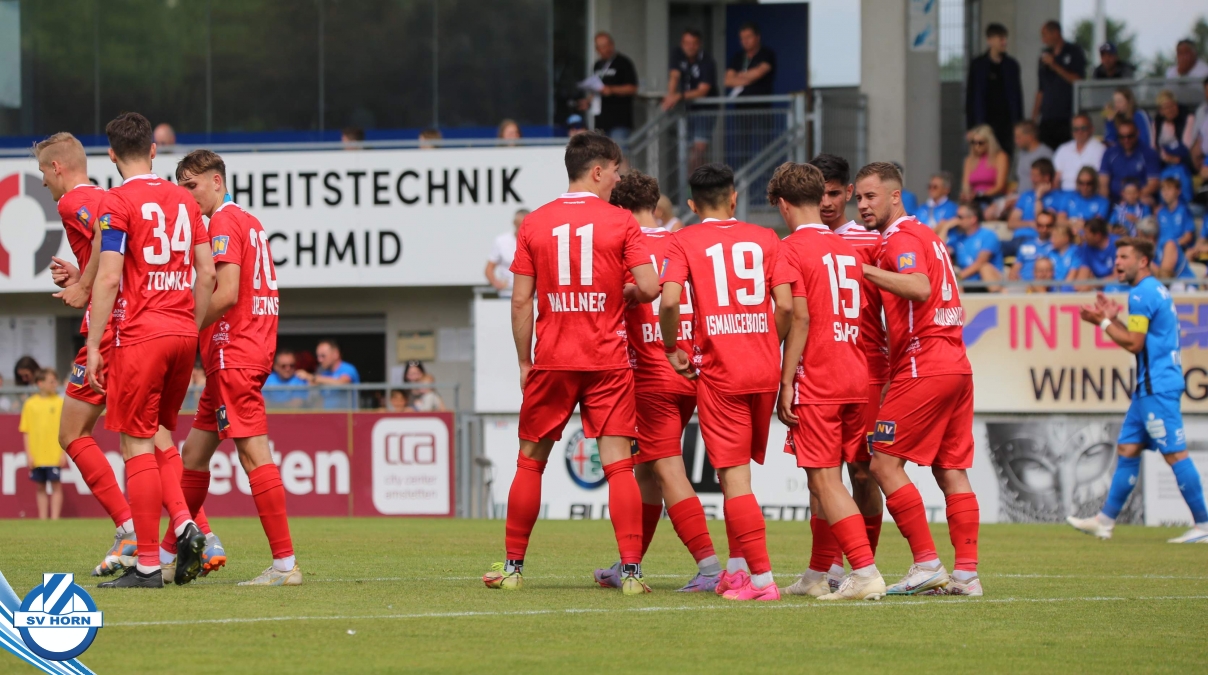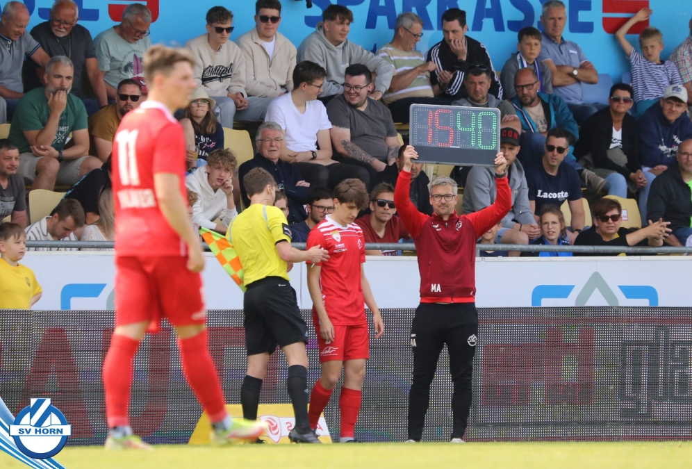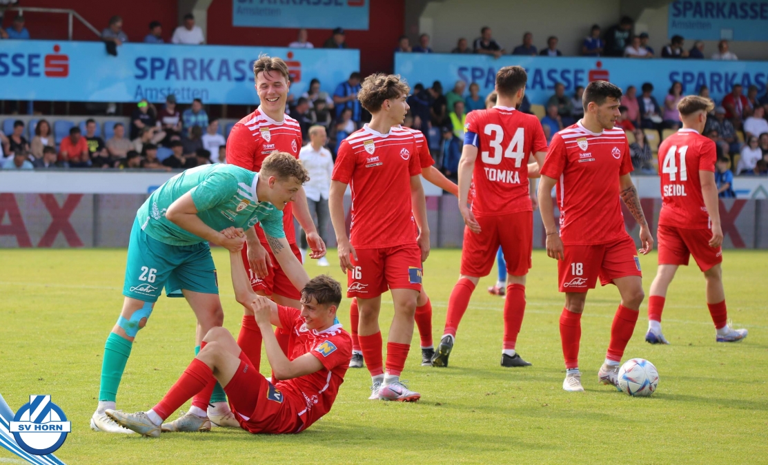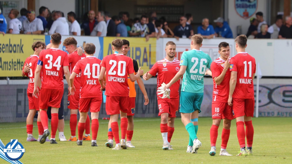 Aufstellung SV Horn: Hotop, Tomka, Sturing, Hoffmann, Wallner, Mulahalilovic (52. Seidl), Ismailcebioglu, Lipczinski, R. Bauer, Safer (83. Volk), Stojak (52. Hausjell)