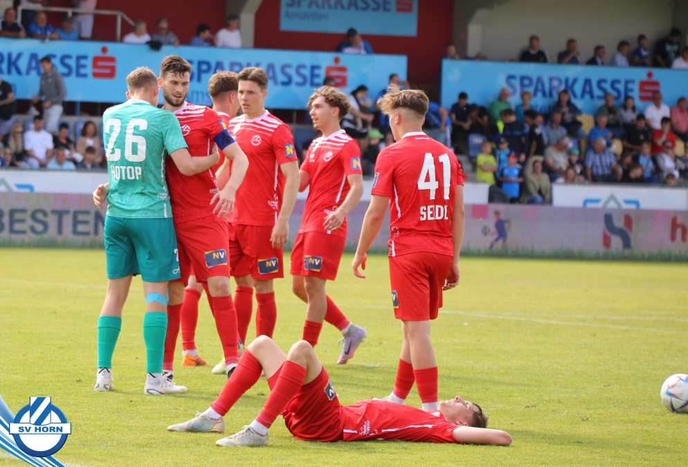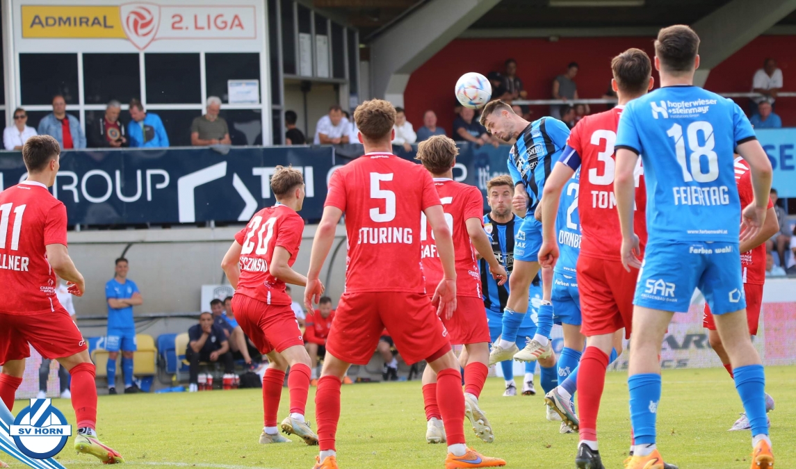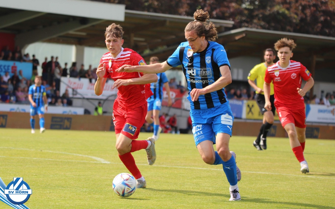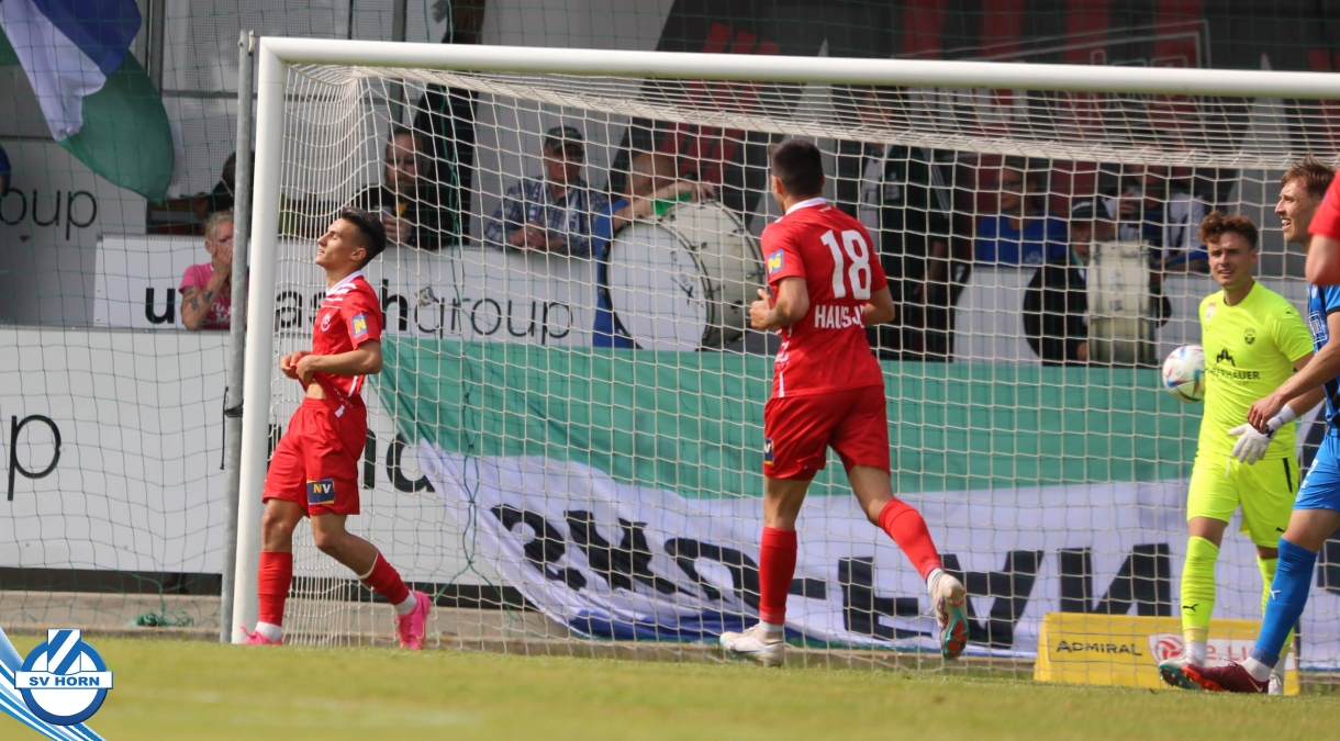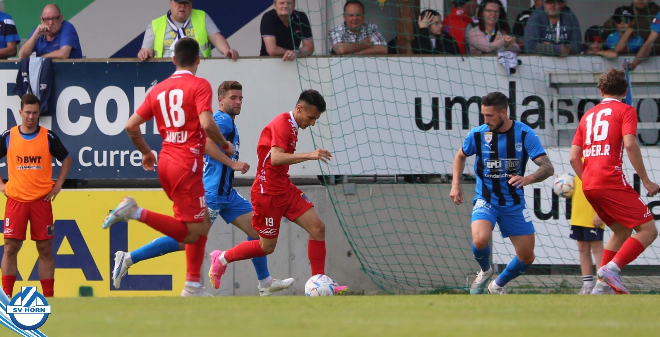 Aufstellung SV Horn: Hotop, Tomka, Sturing, Hoffmann, Wallner, Mulahalilovic (52. Seidl), Ismailcebioglu, Lipczinski, R. Bauer, Safer (83. Volk), Stojak (52. Hausjell)