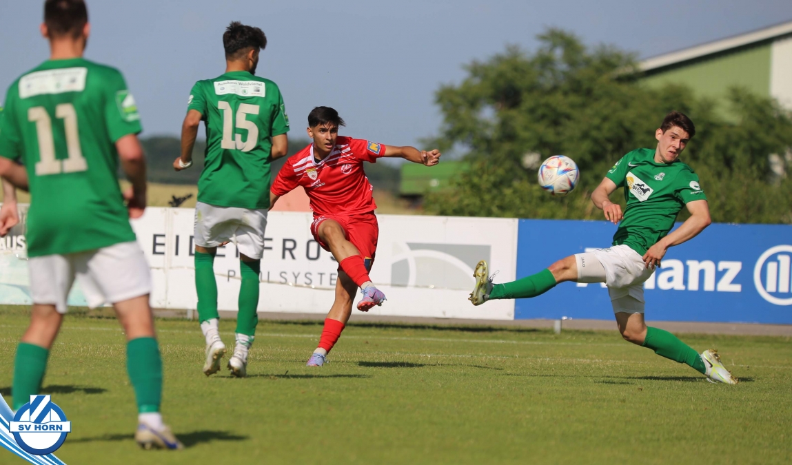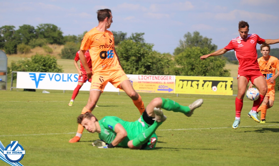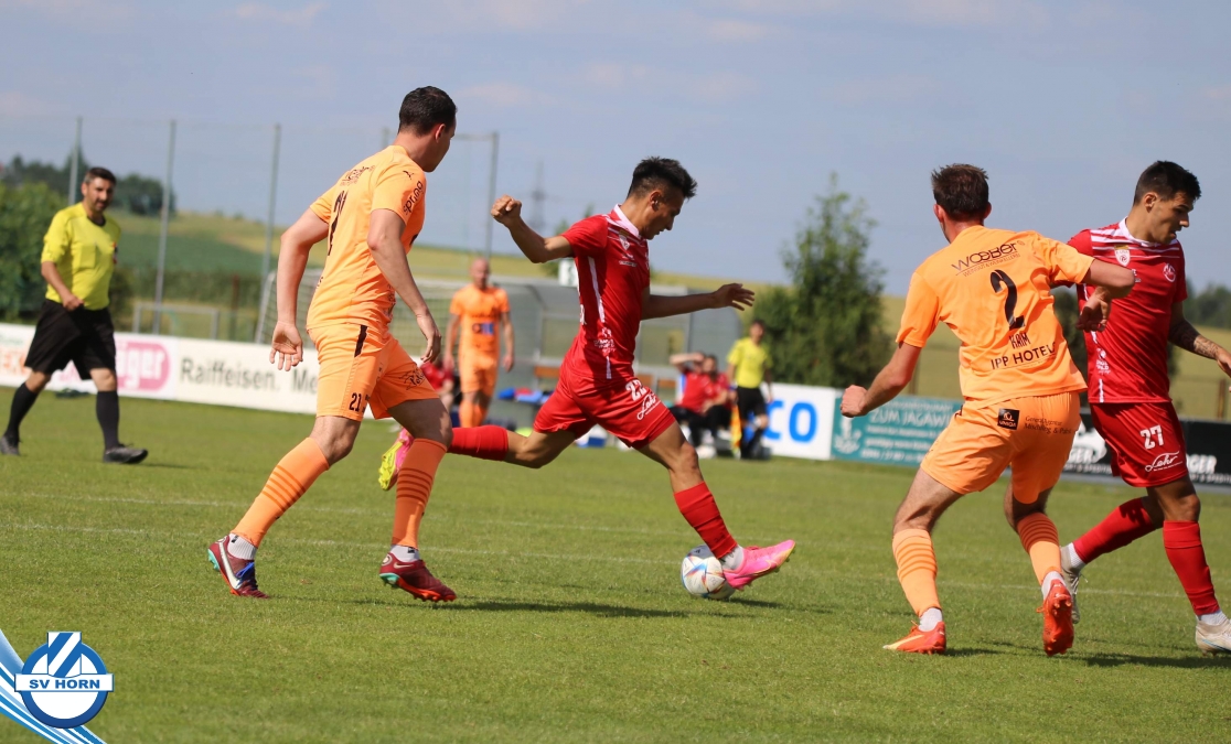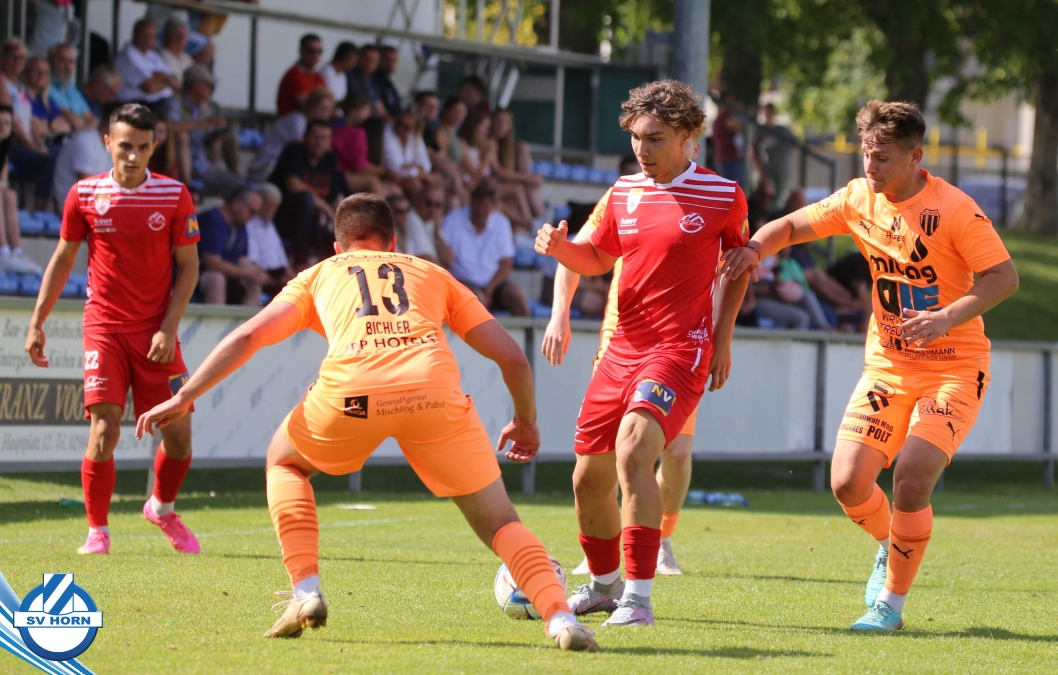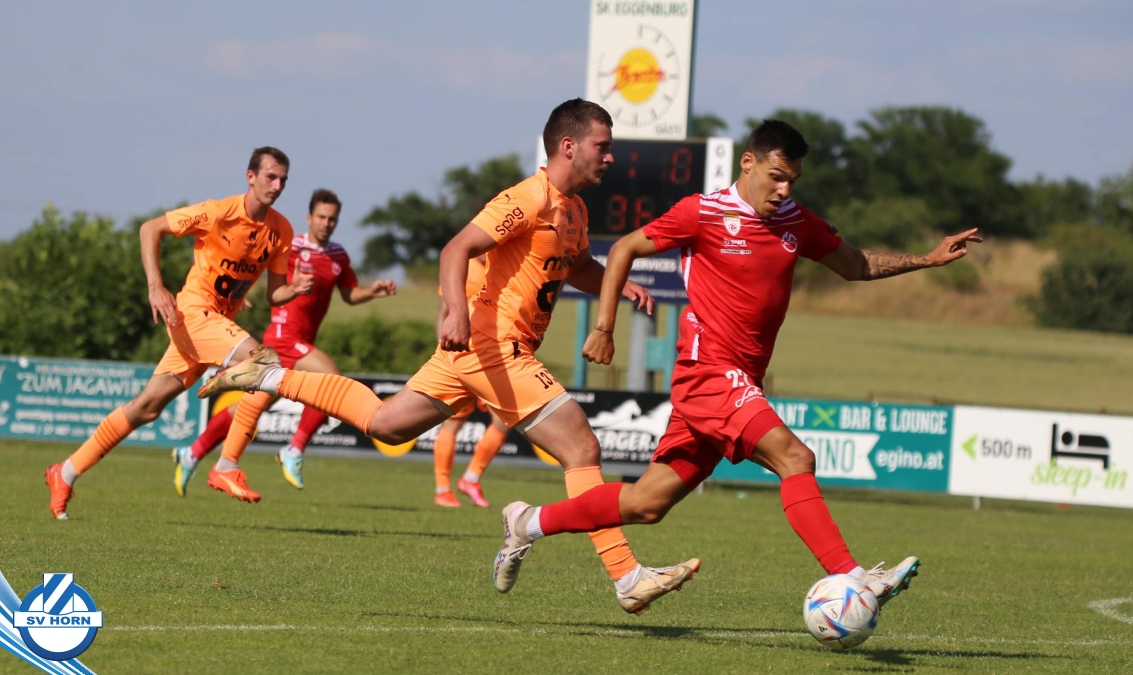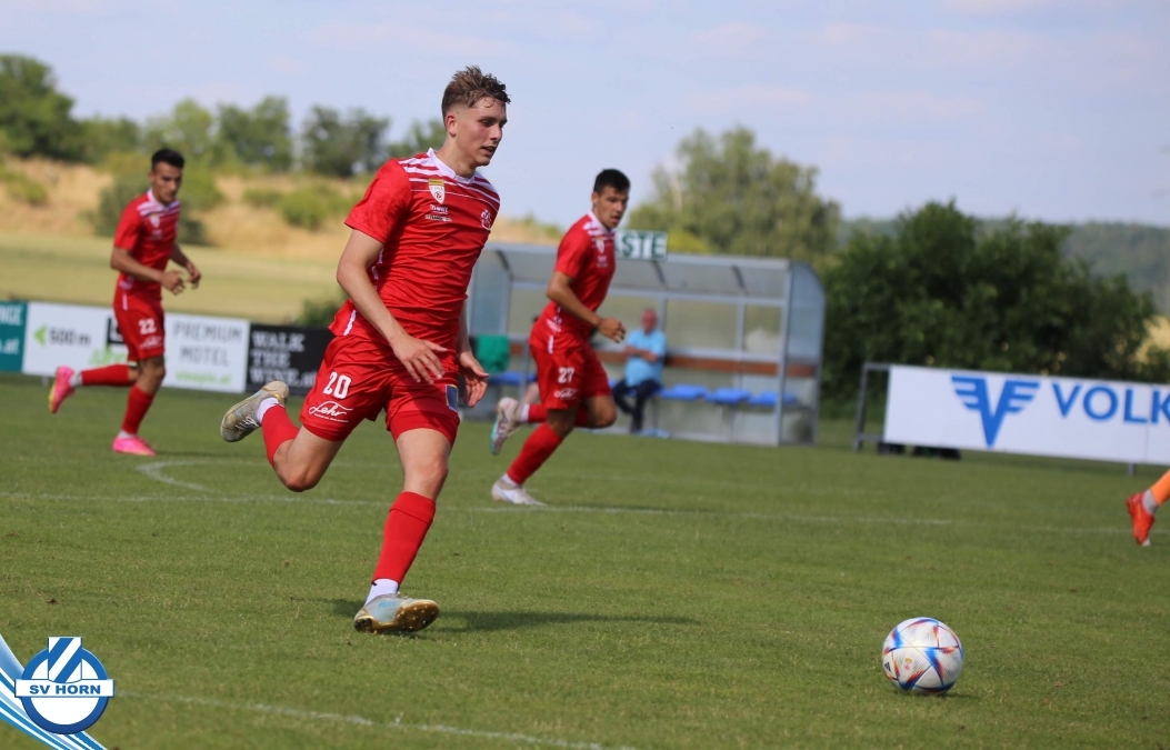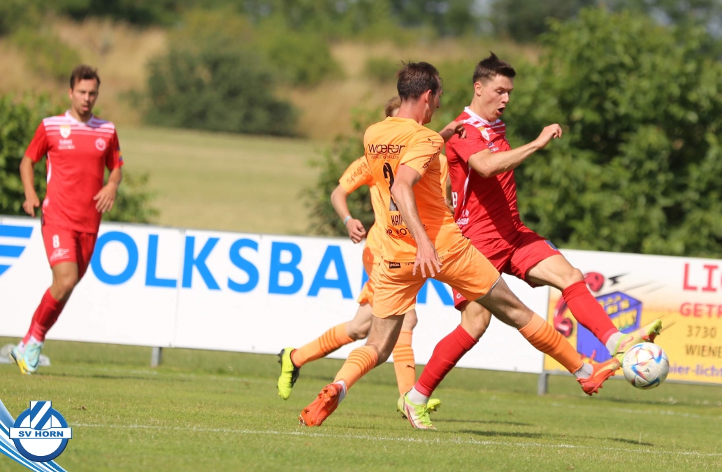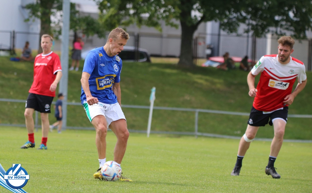 Im anschließendem Kampfmannschaftsturnier jeder gegen jeden, das jeweils in 45 Minuten ausgetragen wurde, ebenfalls zwischen Eggenburg, Retz und dem SV Horn besiegte der SV Horn zunächst den SC Retz mit 4:0 - die Tore erzielten Maximilian Pronichev, 2x Marco Hausjell sowie Haris Ismailcebioglu - dann gab es einen 1:2 Sieg von Horn gegen die Gastgeber - die Tore erzielten 2x Gastspieler. Bis auf die Innenverteidigung mit Niklas Hoffmann und Paul Gobara spielte der SV Horn mit 2 unterschiedlichen Teams in beiden Spielen.