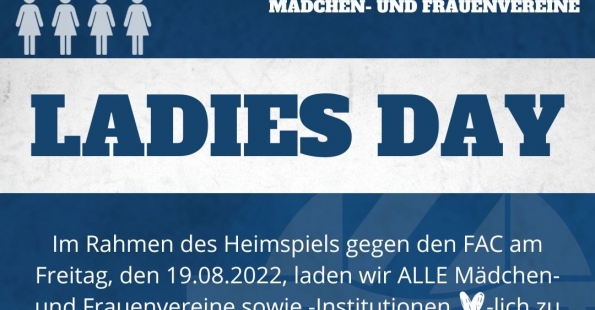 Im Rahmen der Aktionswoche "Frauen-/Mädchenfußball" laden wir ALLE Mädchen- & Frauenvereine herzlich zu unserem kommenden Heimspiel, am 19.08.2022 (Beginn: 18:10) gegen den FAC ein!